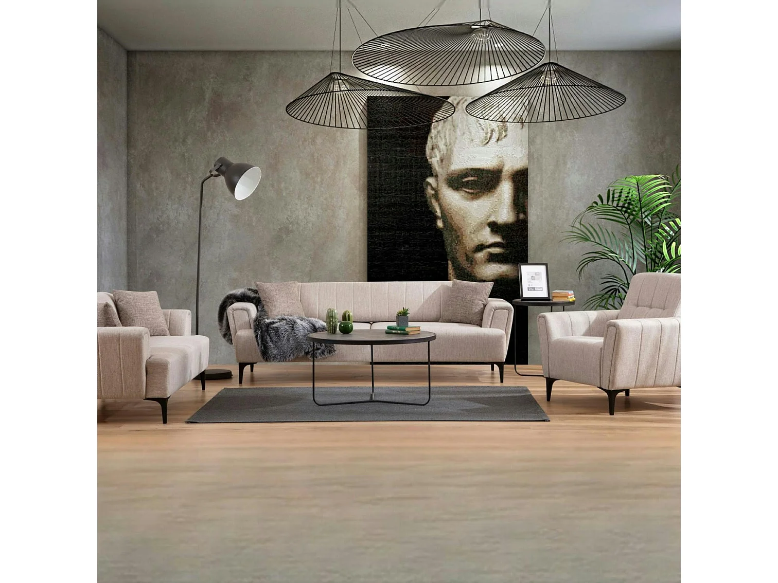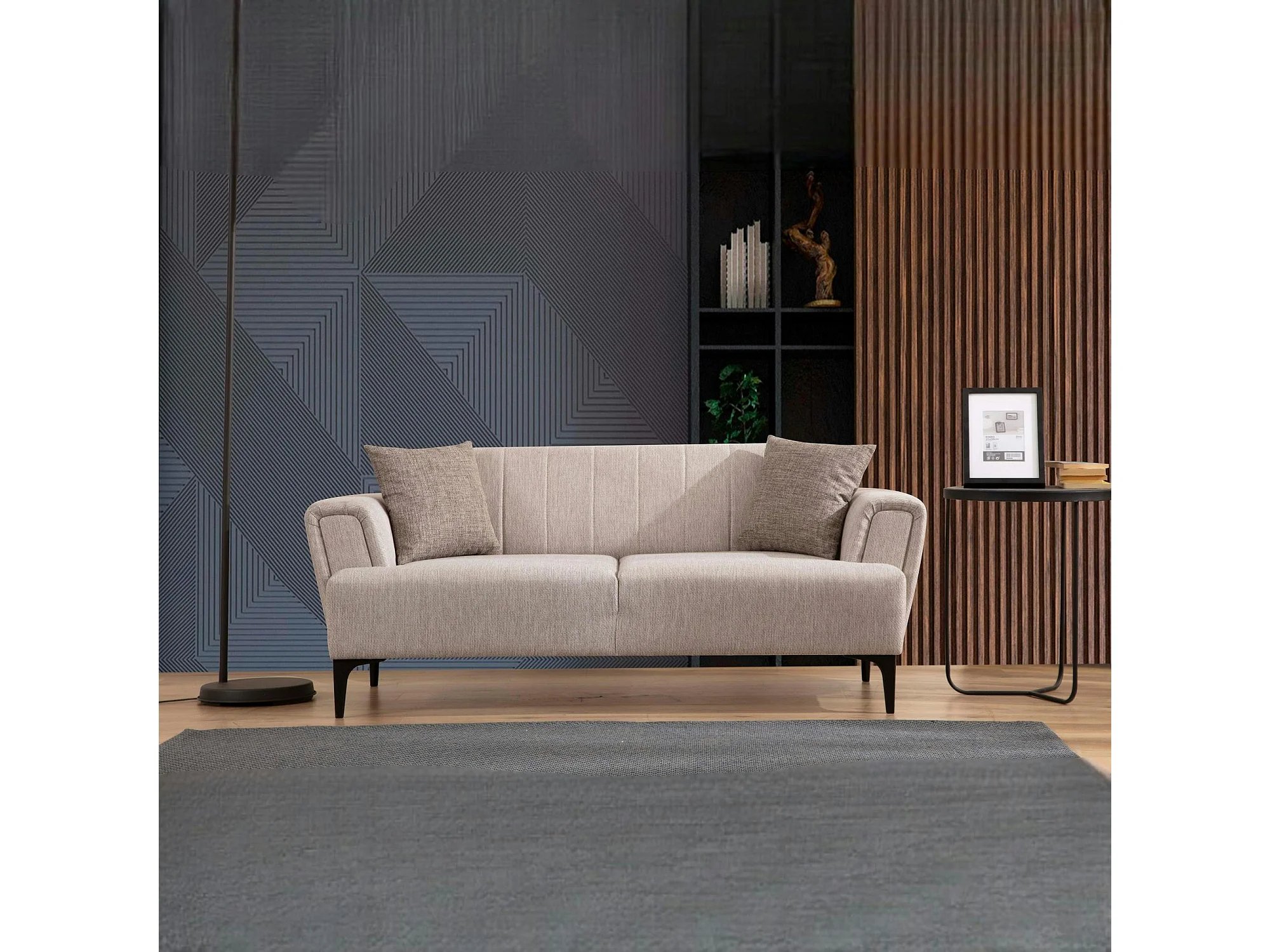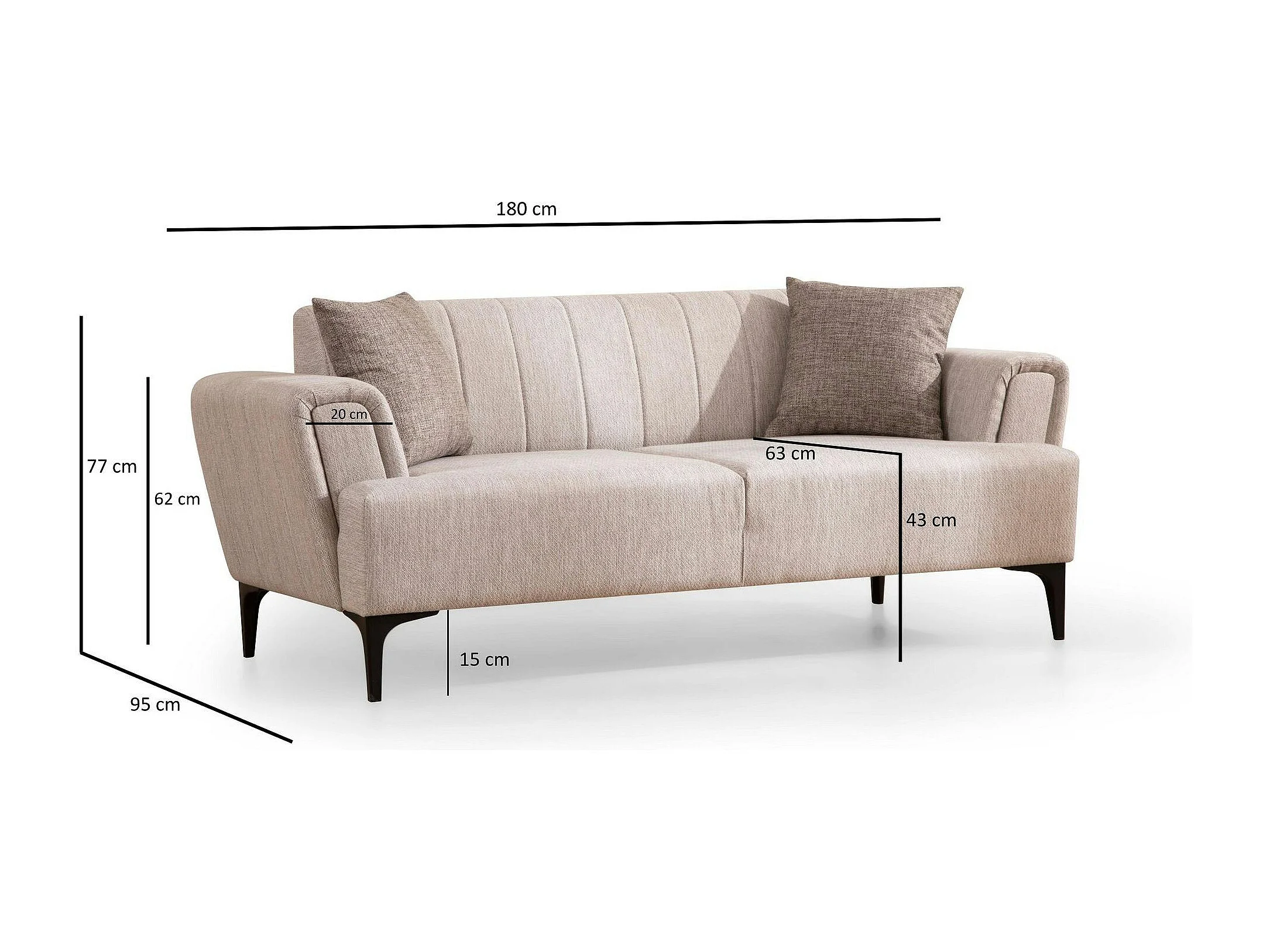 Canapé 2 places beige, dossier à coutures verticales LUCCA