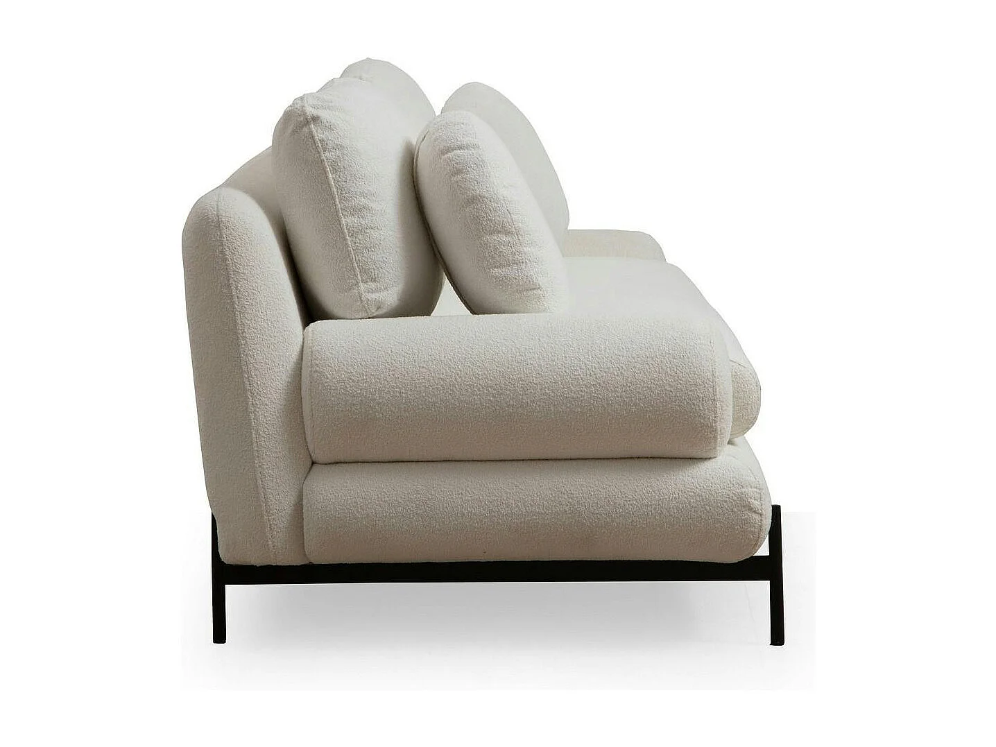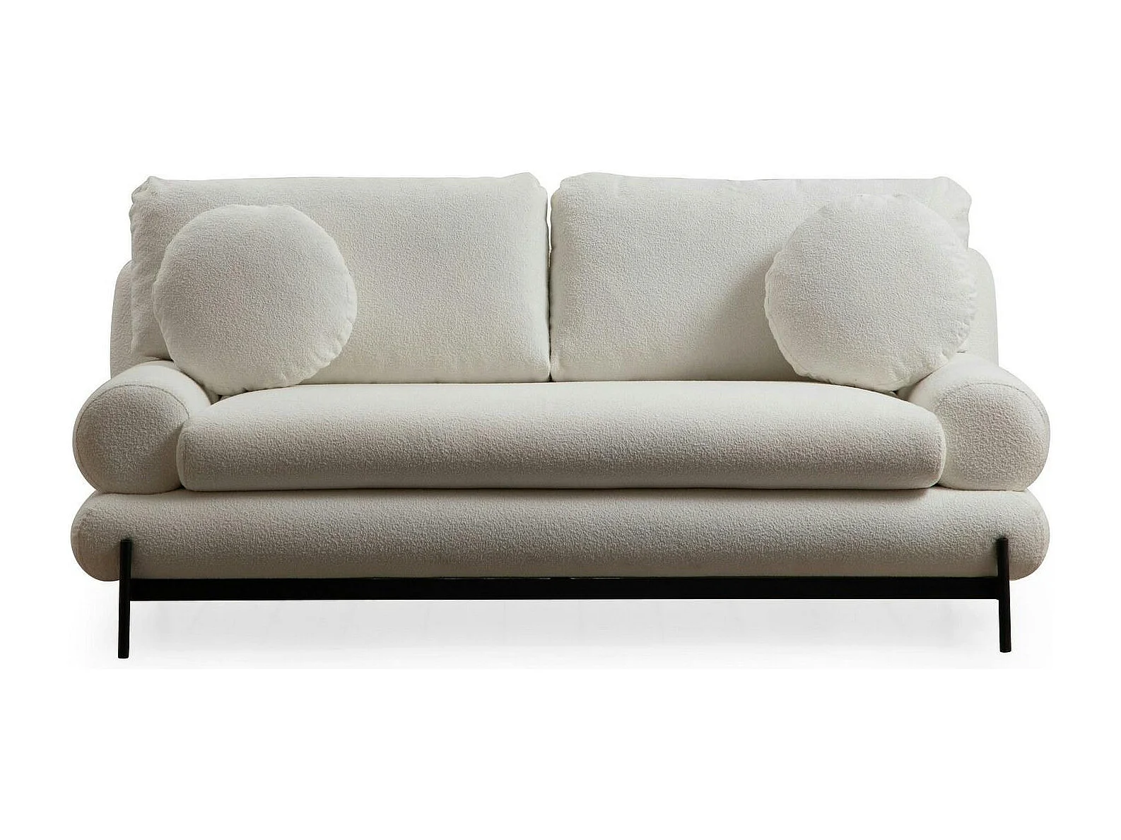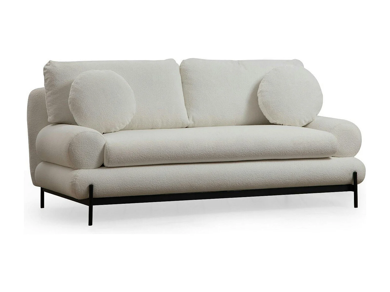 Canapé 2 places blanc bouclette, coussins ronds SION