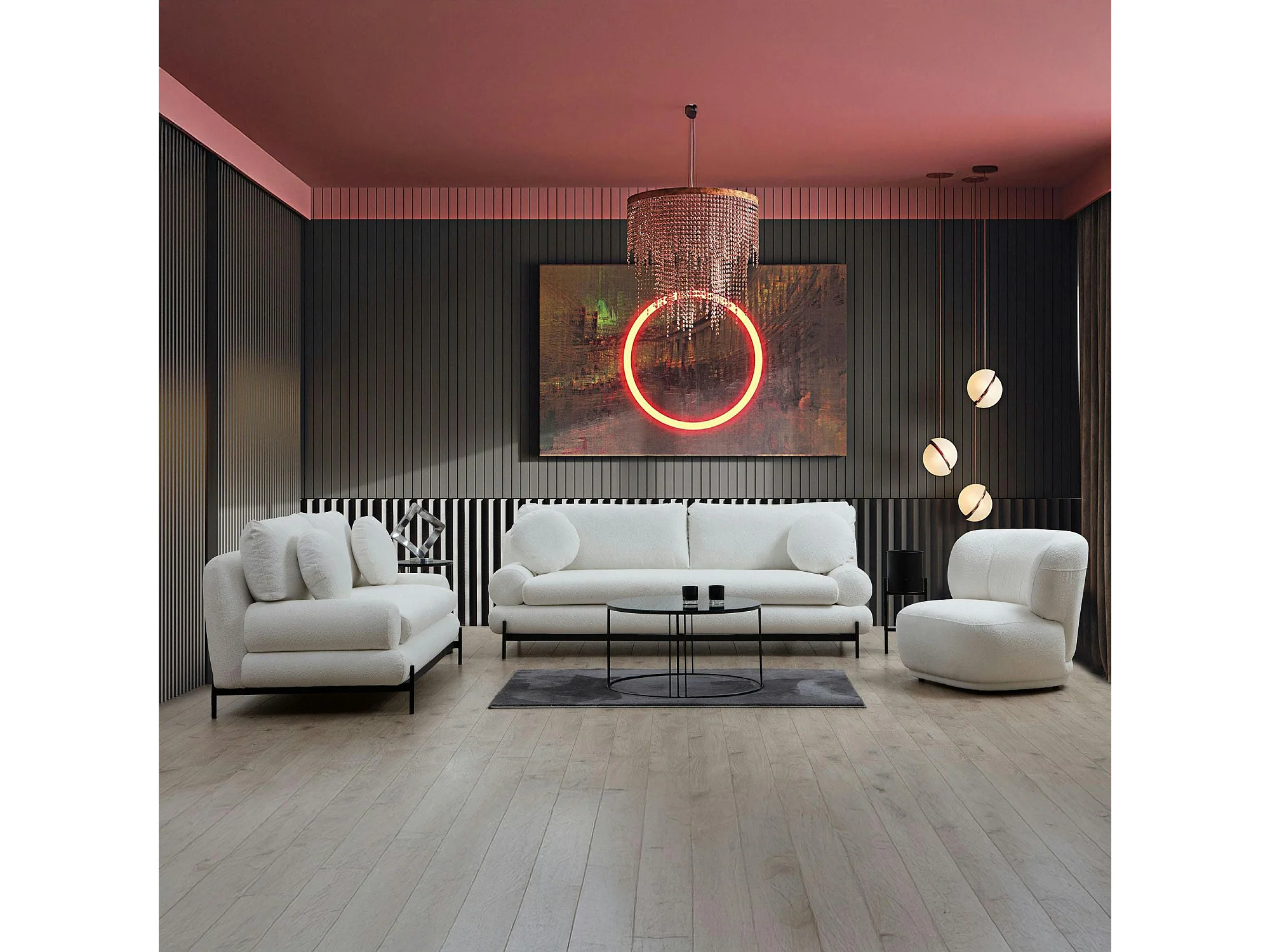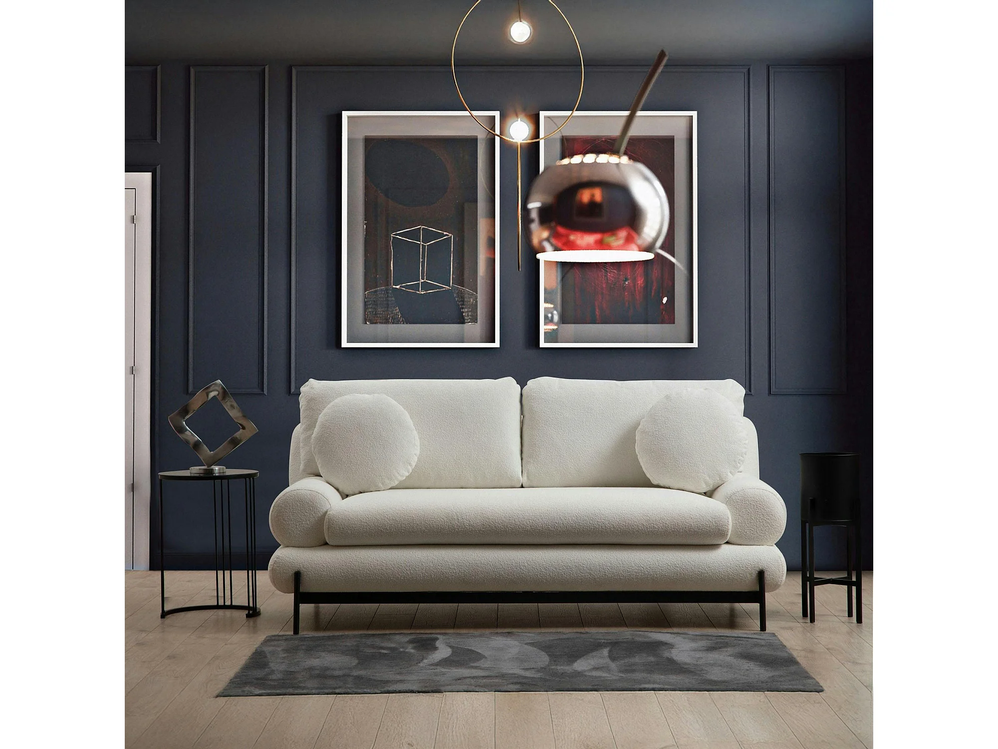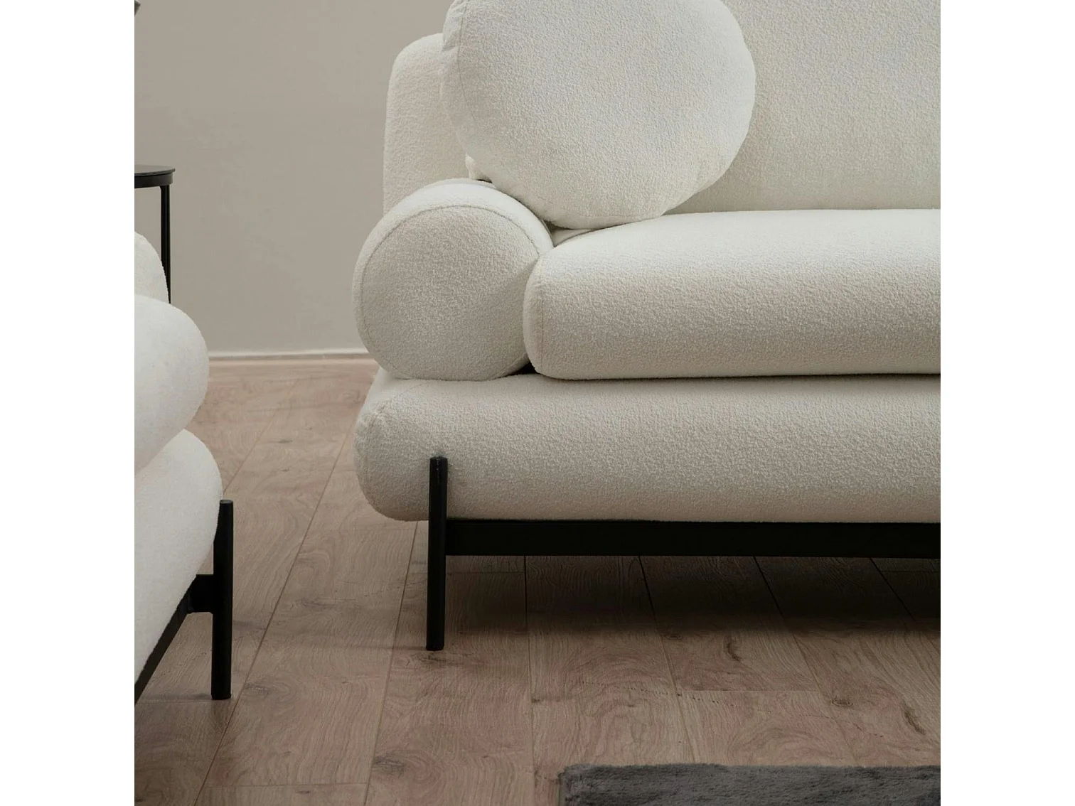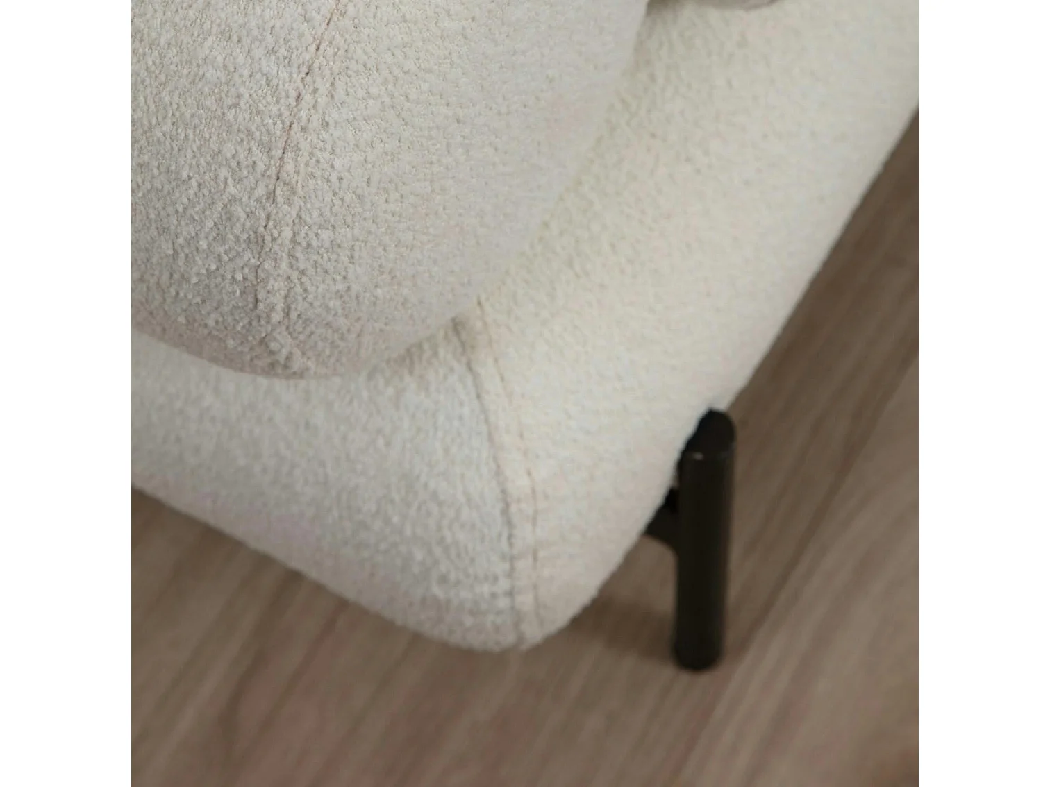 Canapé 2 places blanc bouclette, coussins ronds SION