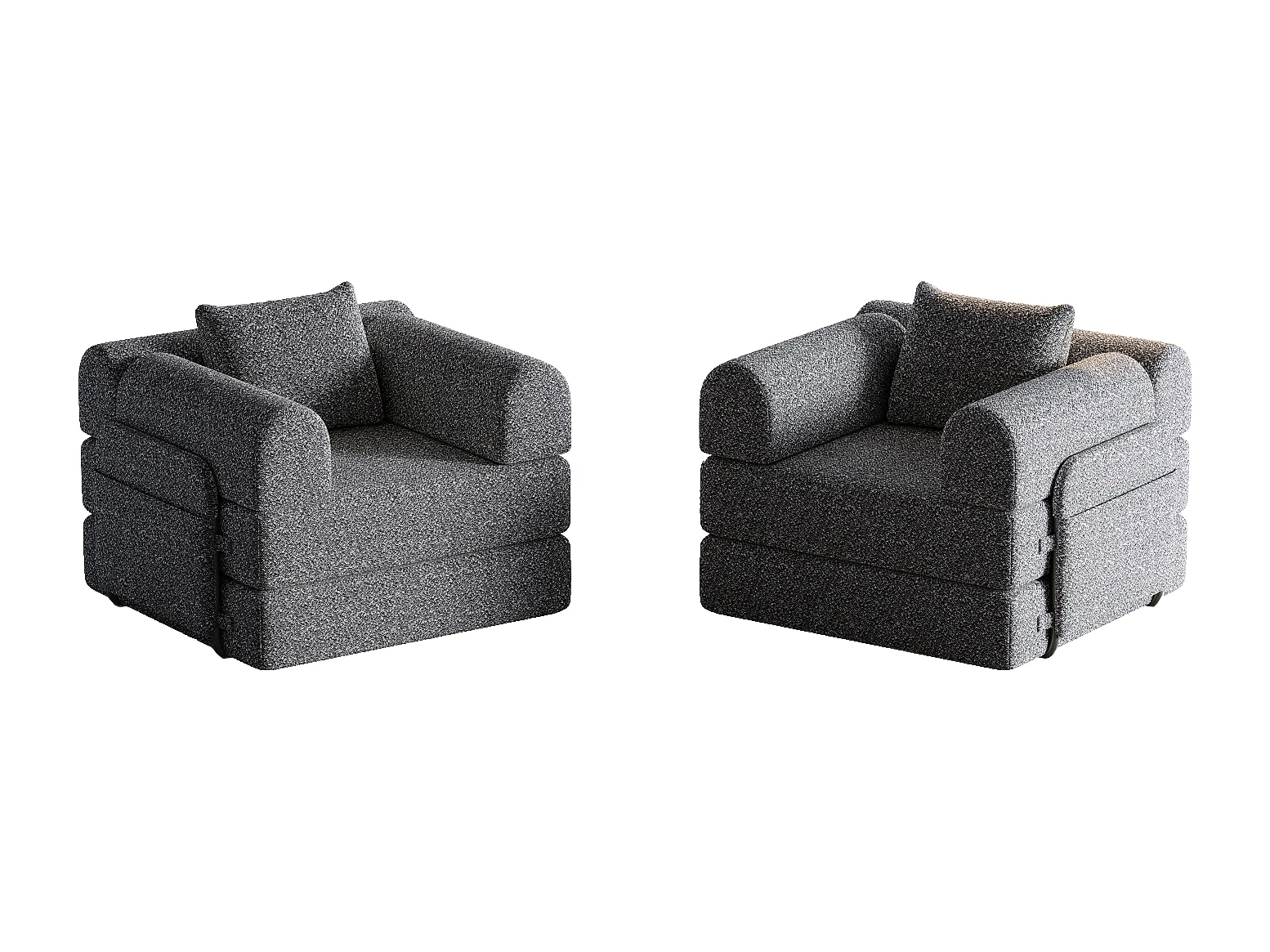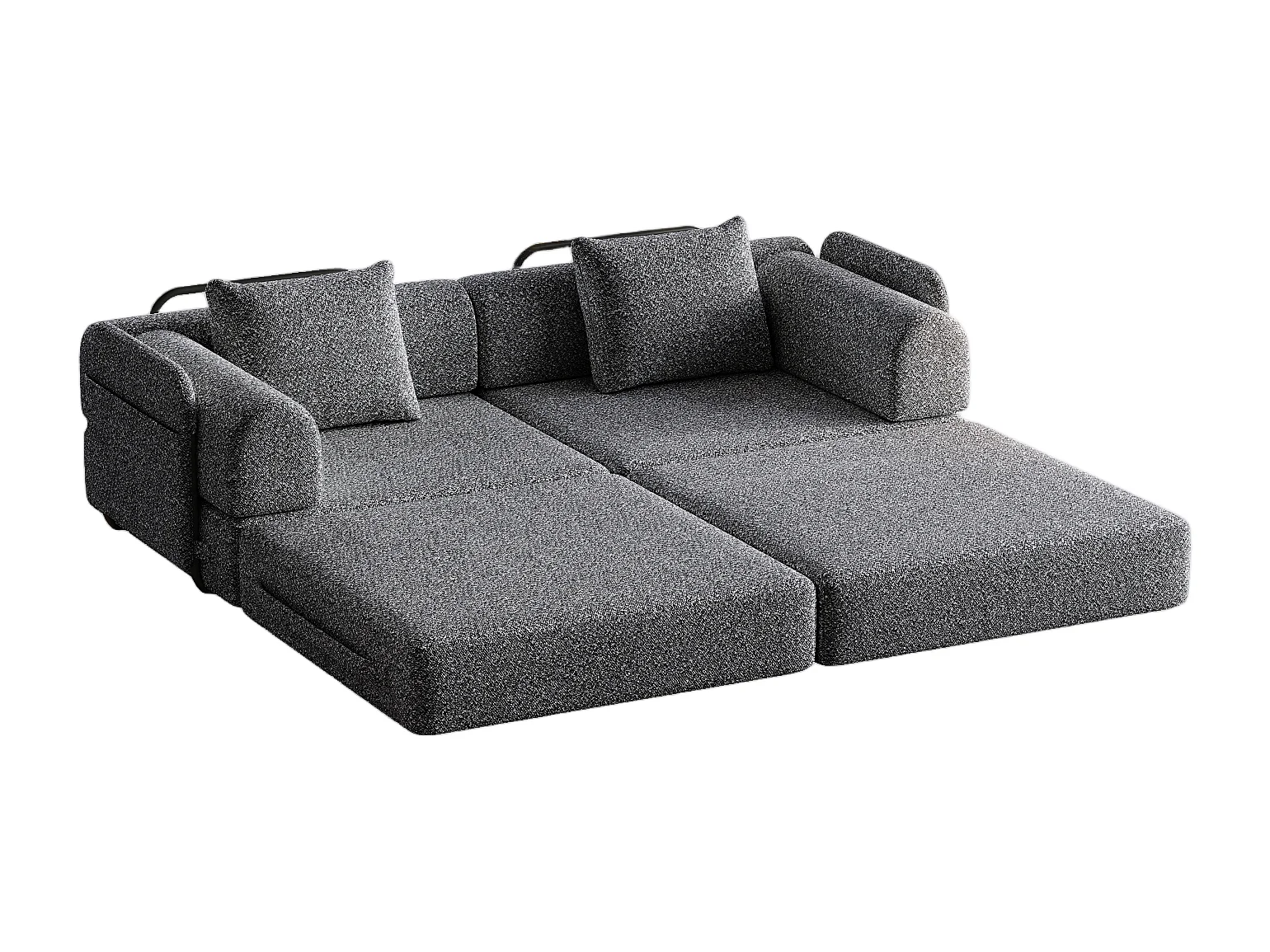 Canapé 2 places, Canapé convertible avec accoudoirs et poches latérales, structure en métal - Chenille grise
