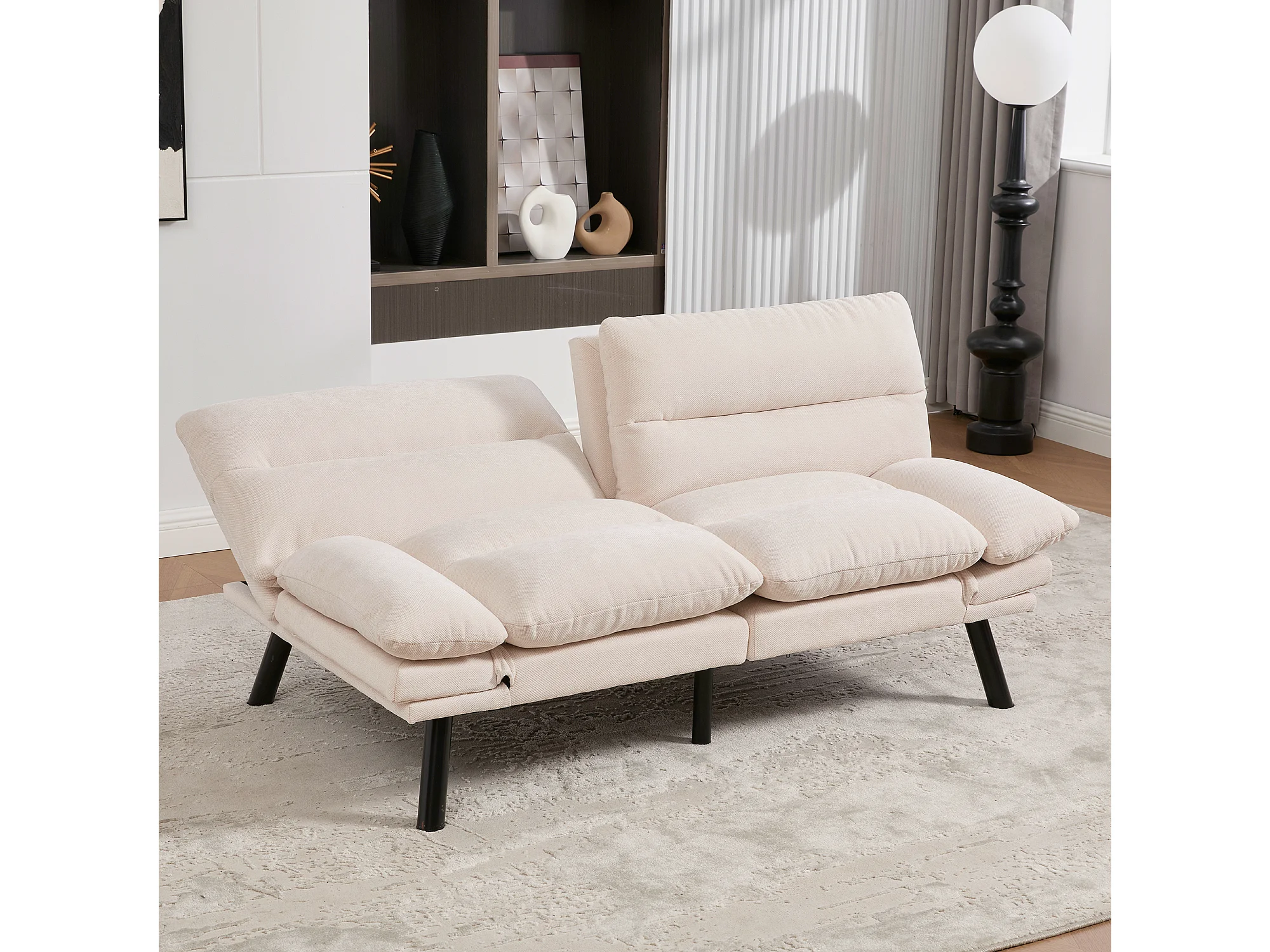 Canapé 2 places, canapé rembourré avec dossier et accoudoirs réglables, pieds en métal - Chenille beige