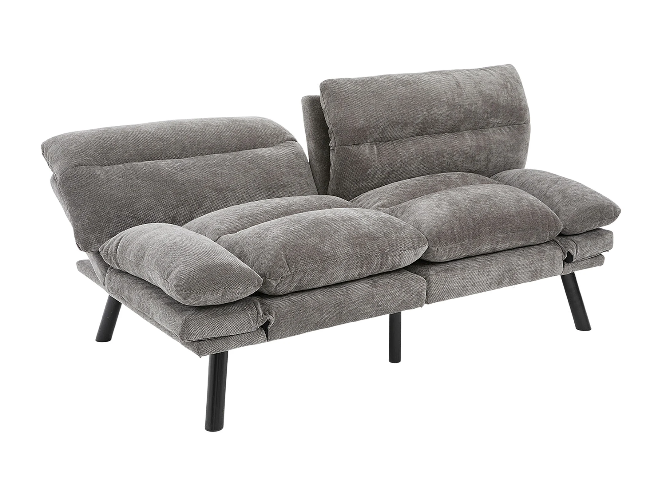 Canapé 2 places, canapé rembourré avec dossier et accoudoirs réglables, pieds en métal - Chenille grise