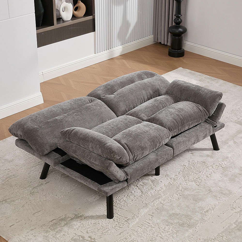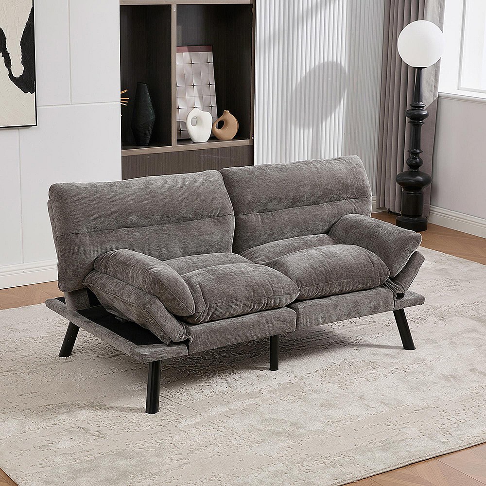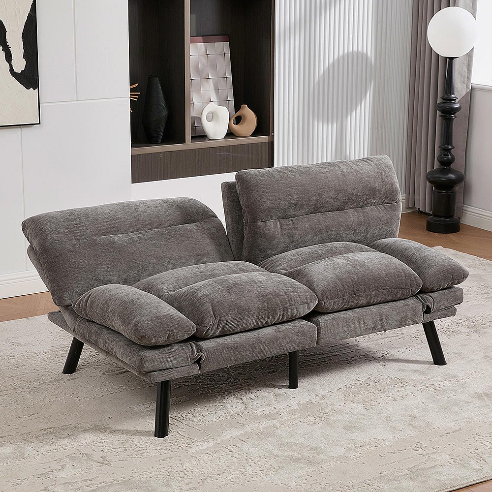 Canapé 2 places chenille ergonomique assise dossier accoudoirs réglables pieds métal confort stable Gris foncé