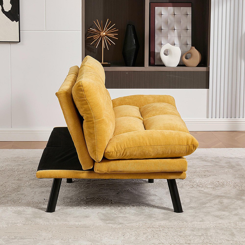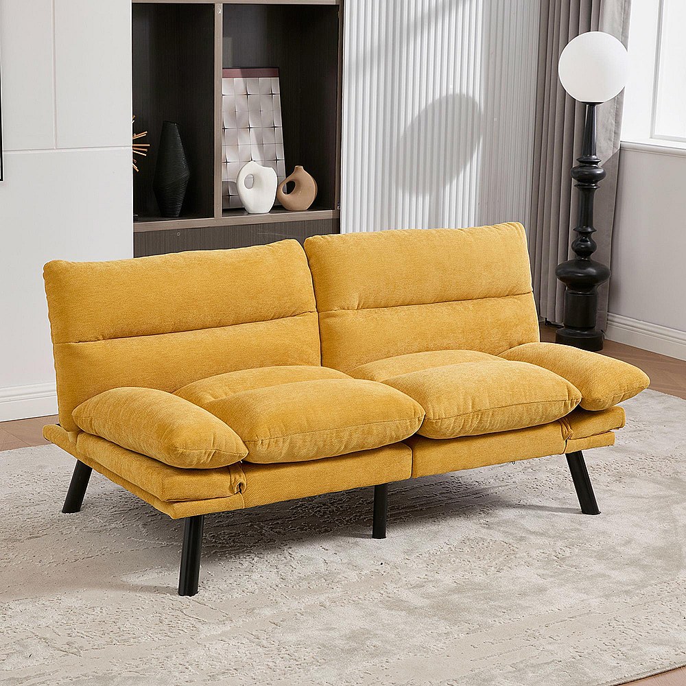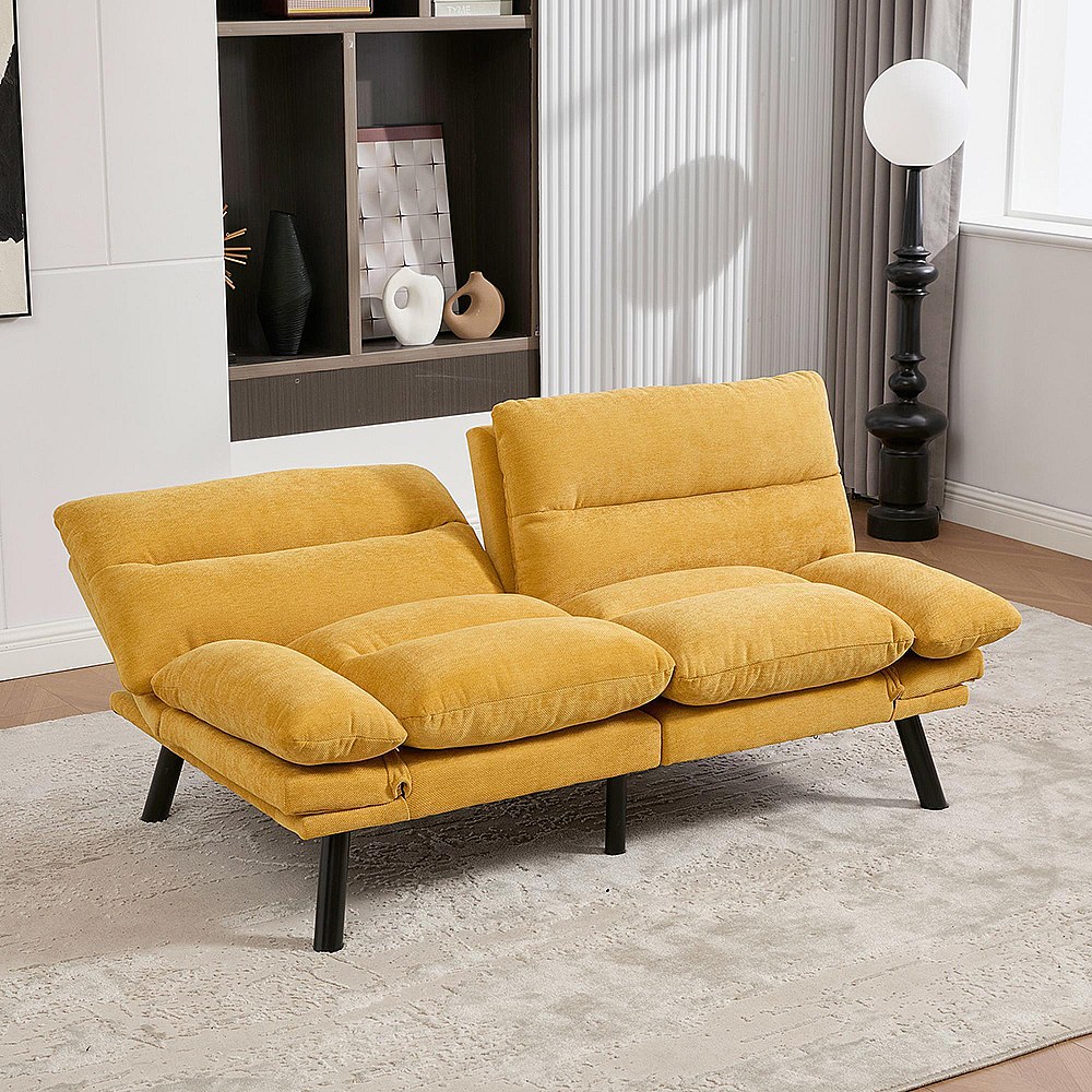 Canapé 2 places chenille ergonomique assise dossier accoudoirs réglables pieds métal confort stable Jaune moutarde