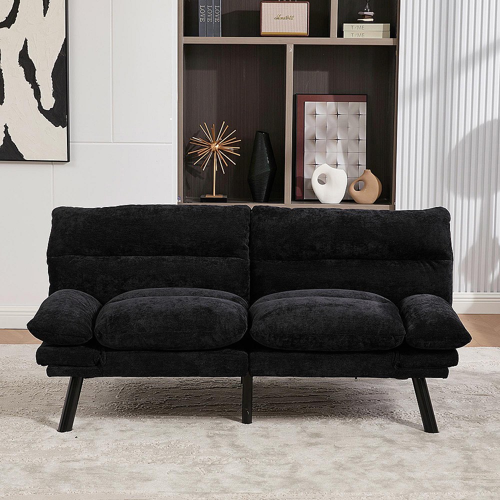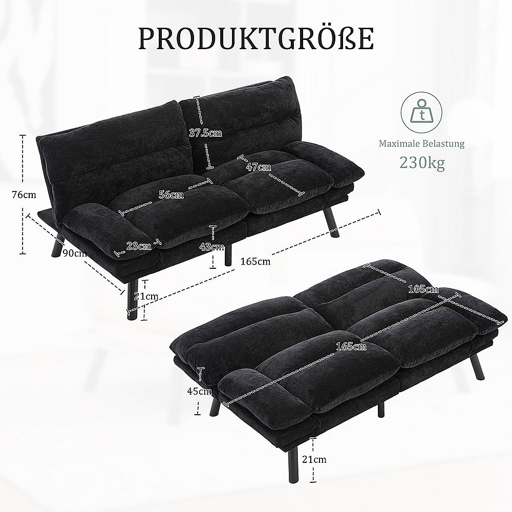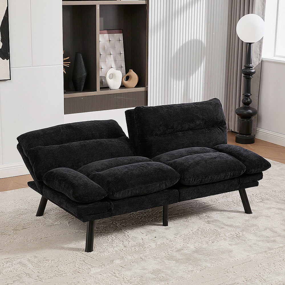 Canapé 2 places chenille ergonomique assise dossier accoudoirs réglables pieds métal confort stable noir