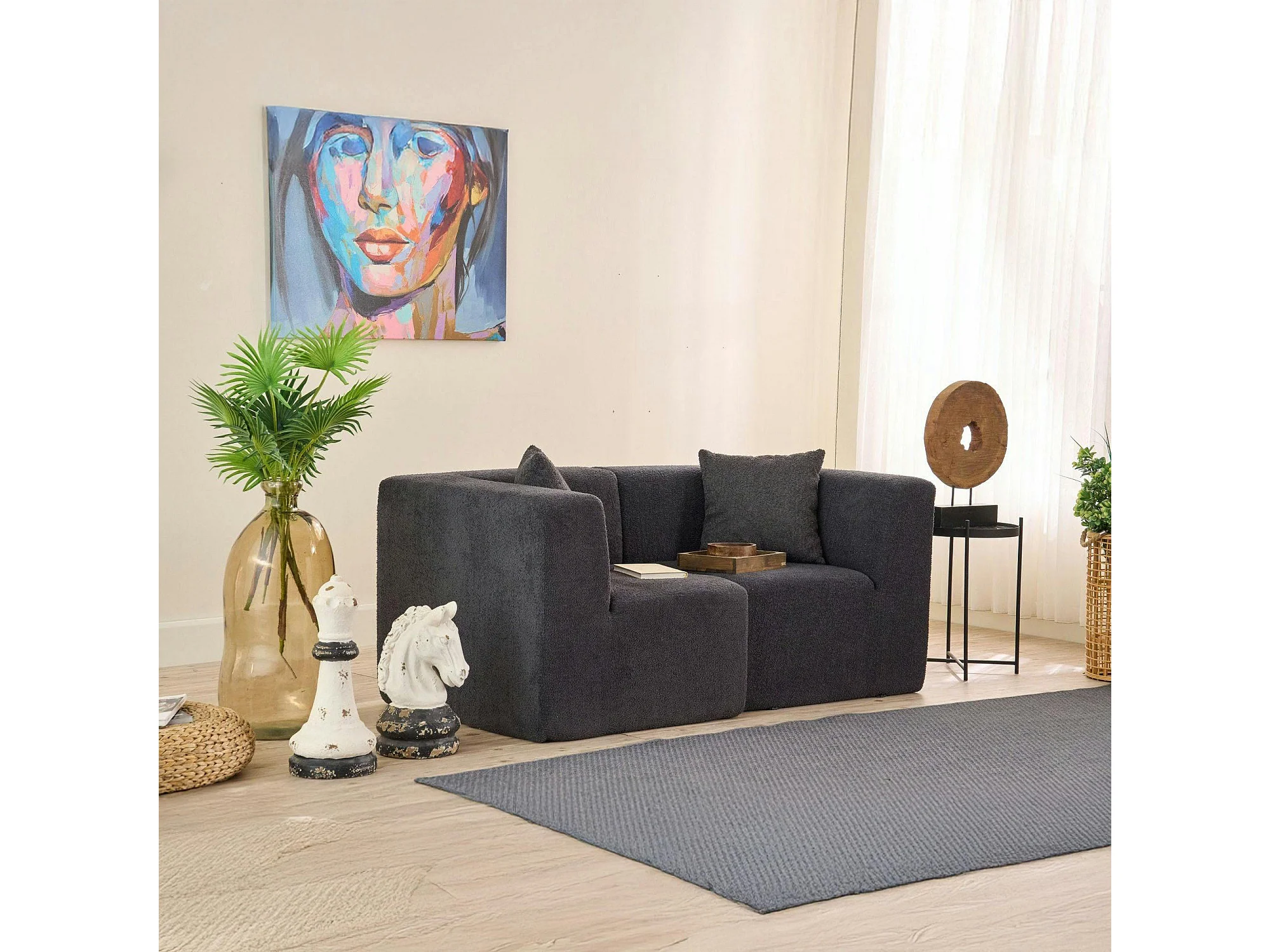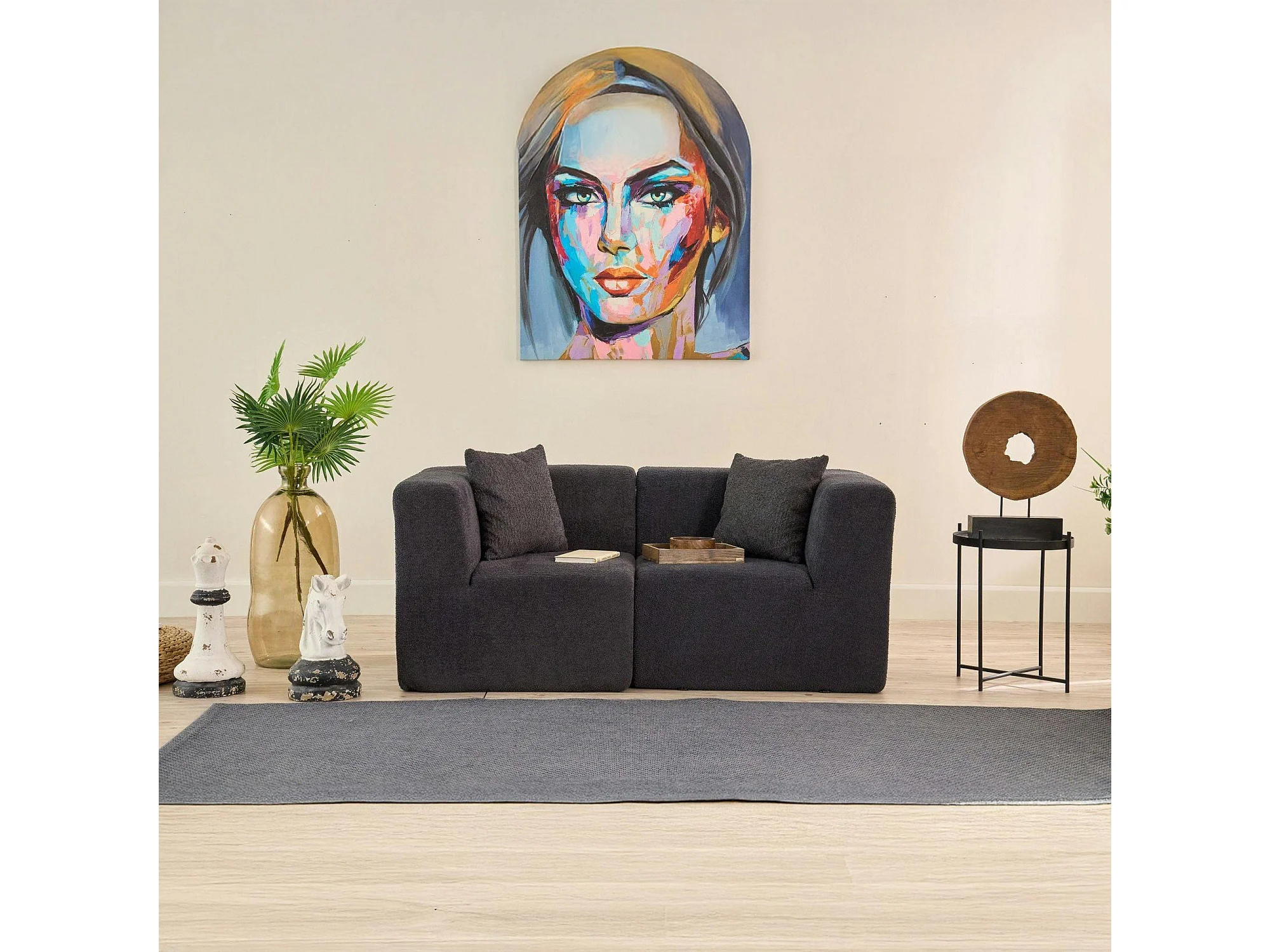 Canapé 2 places compact anthracite tissu chenille PLOVIA