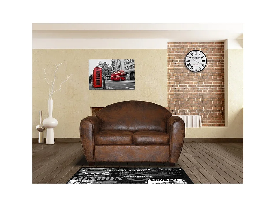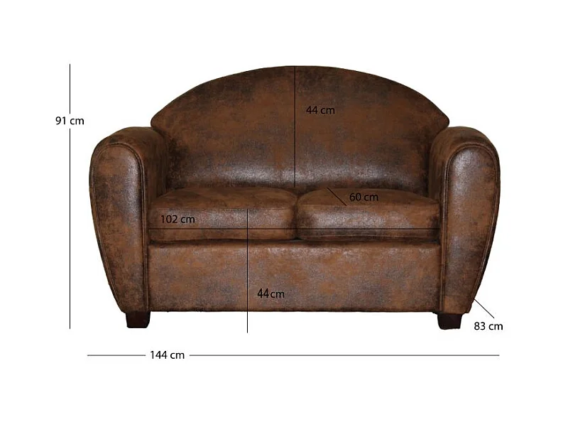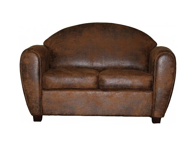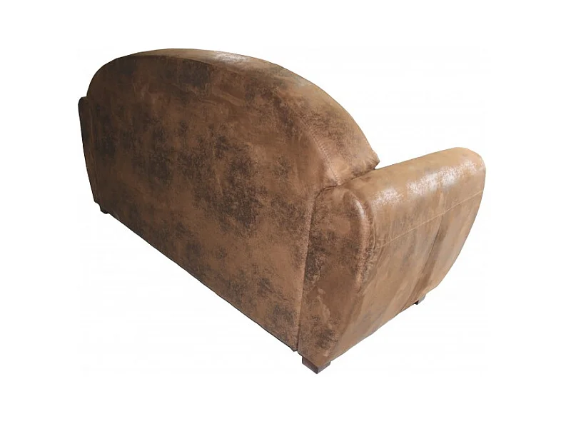 Canapé 2 places 144 cm simili marron effet vieilli style club - CUBA