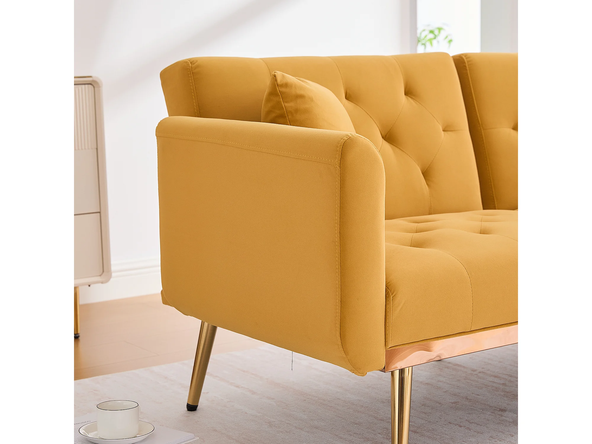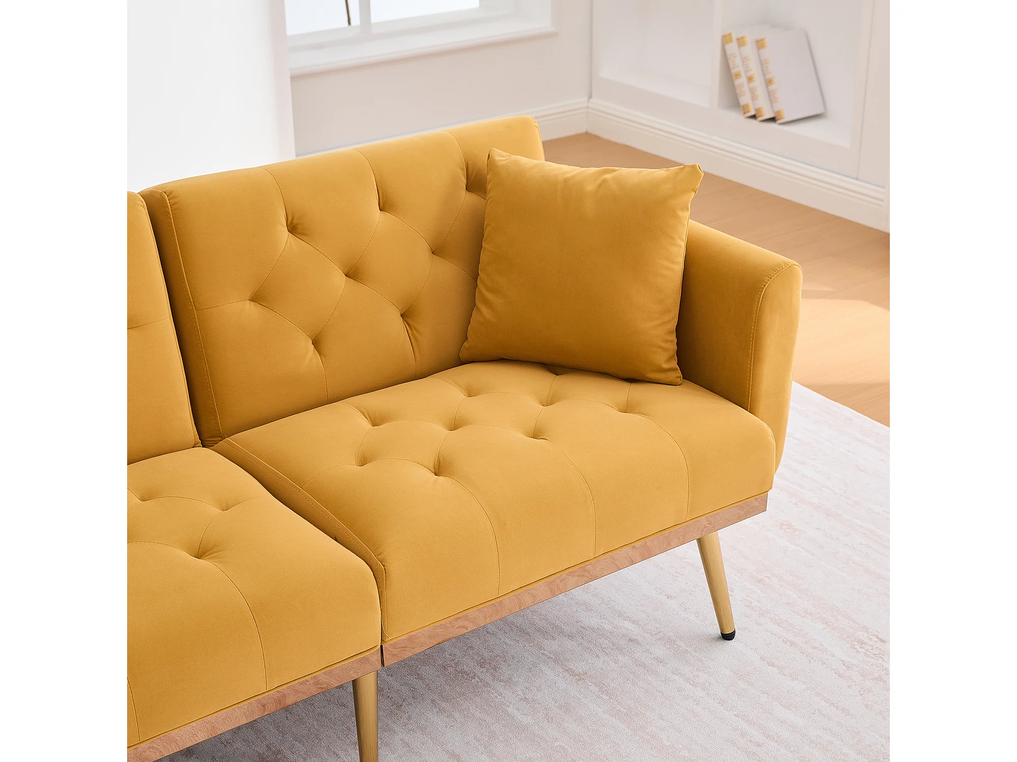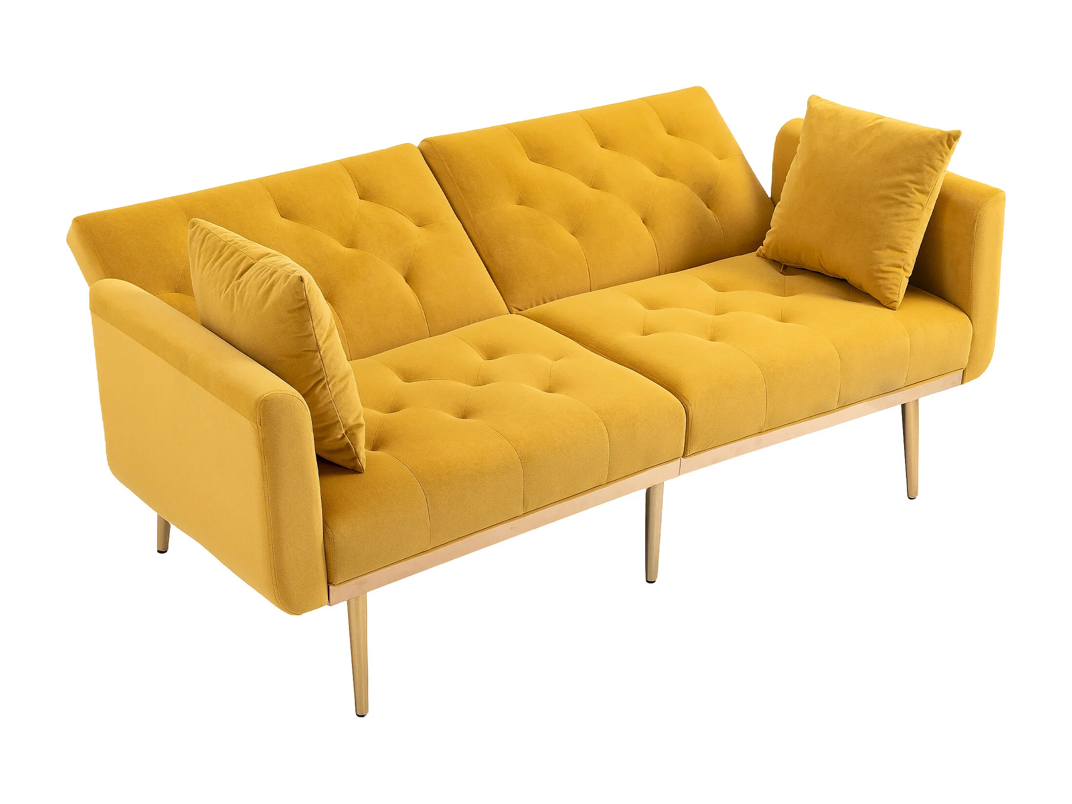 Canapé 2 places convertible avec 2 coussins - Dossier réglable en 3 positions - Jaune moutarde