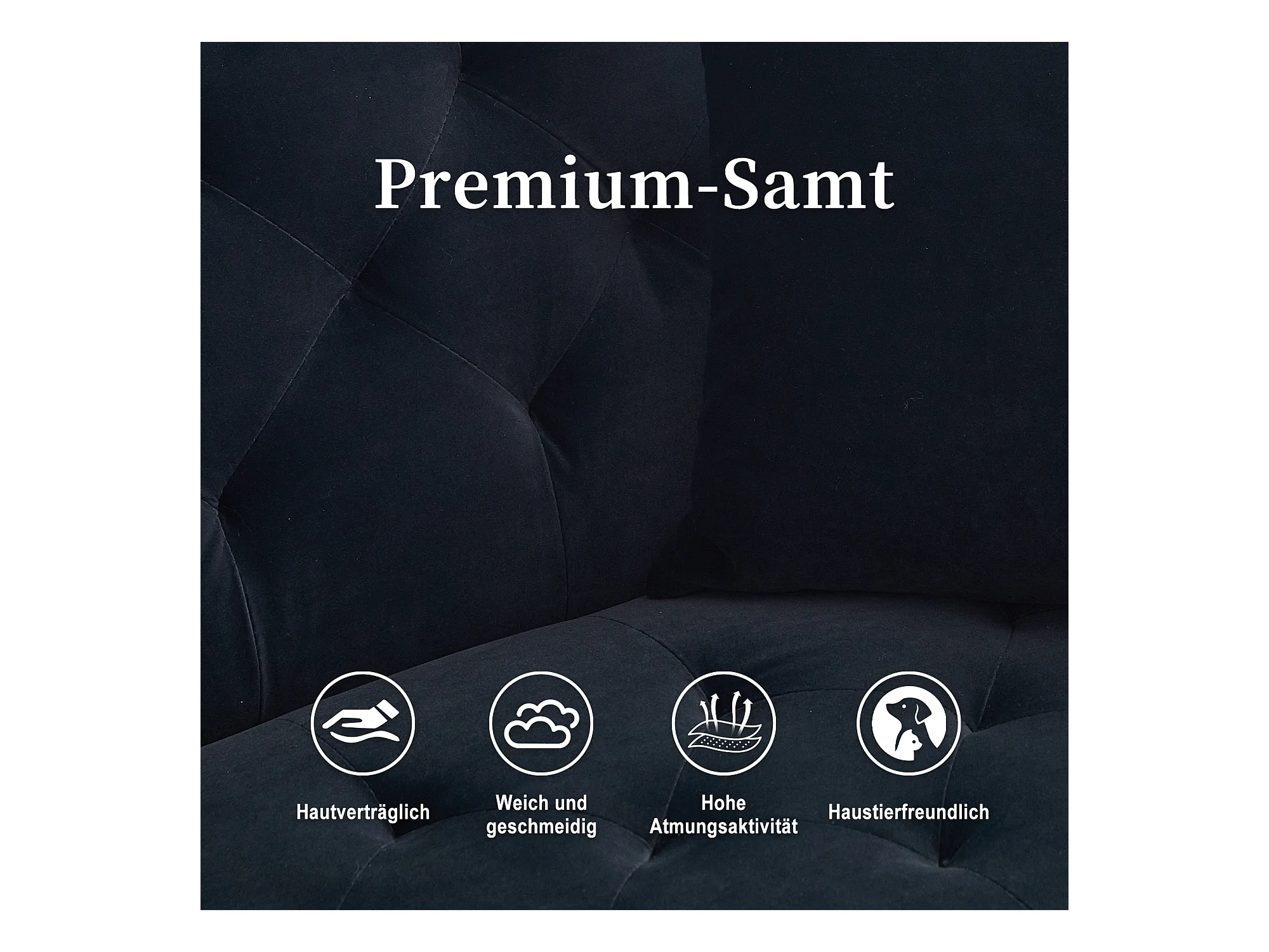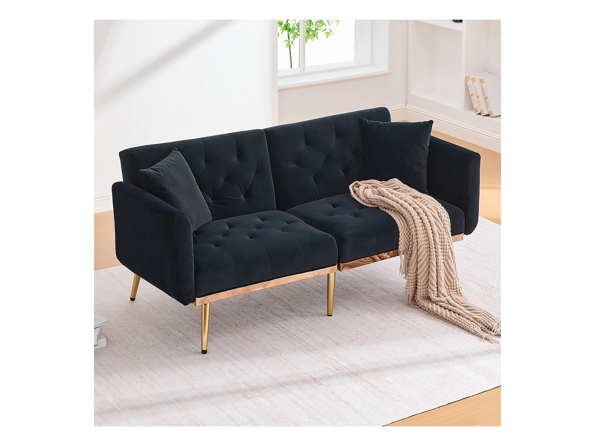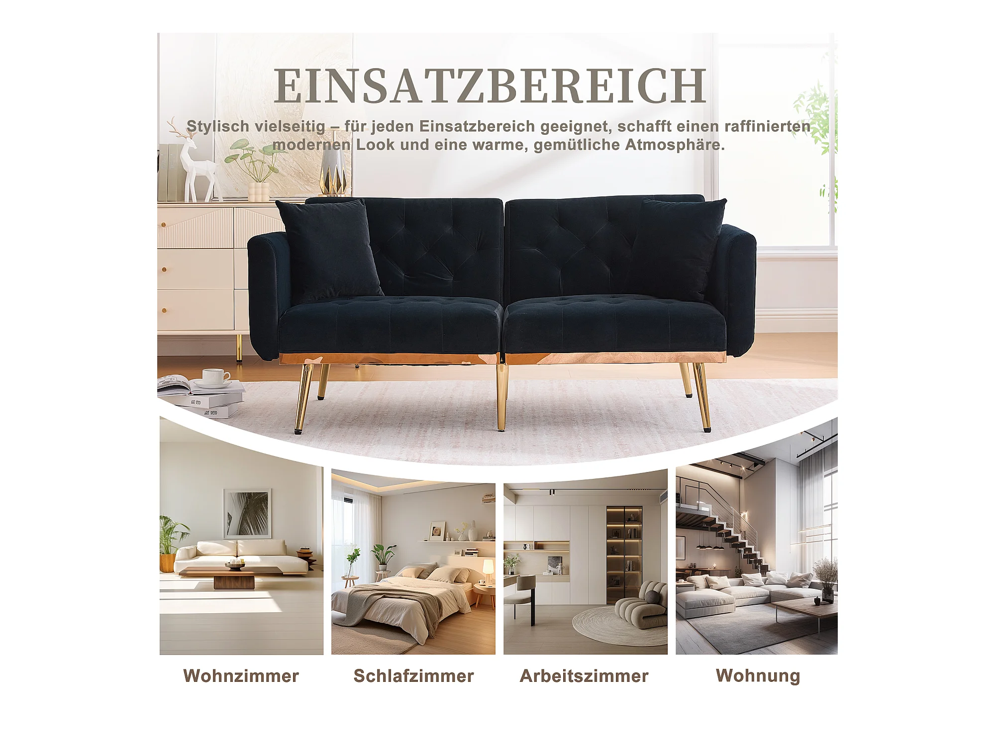 Canapé 2 places convertible avec coussins + dossier réglable - 165 x 72.5 x 75 cm - velours - noir