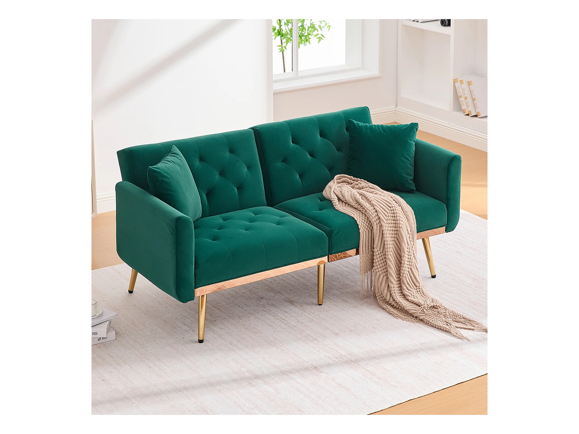 Canapé 2 places convertible avec coussins + dossier réglable - 165 x 72.5 x 75 cm - velours - vert