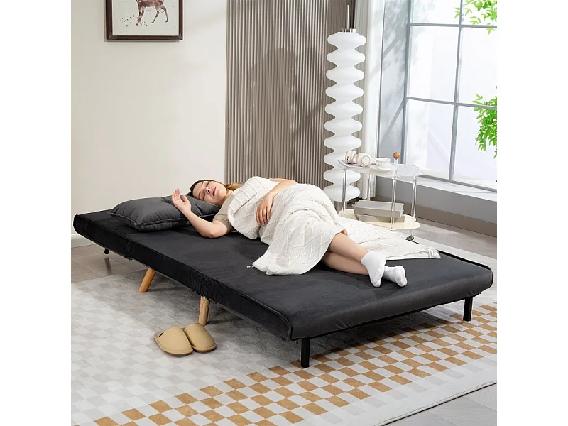 Canapé 2 places convertible en lit, en tissu gris, avec dossier inclinable et cadre métallique solide