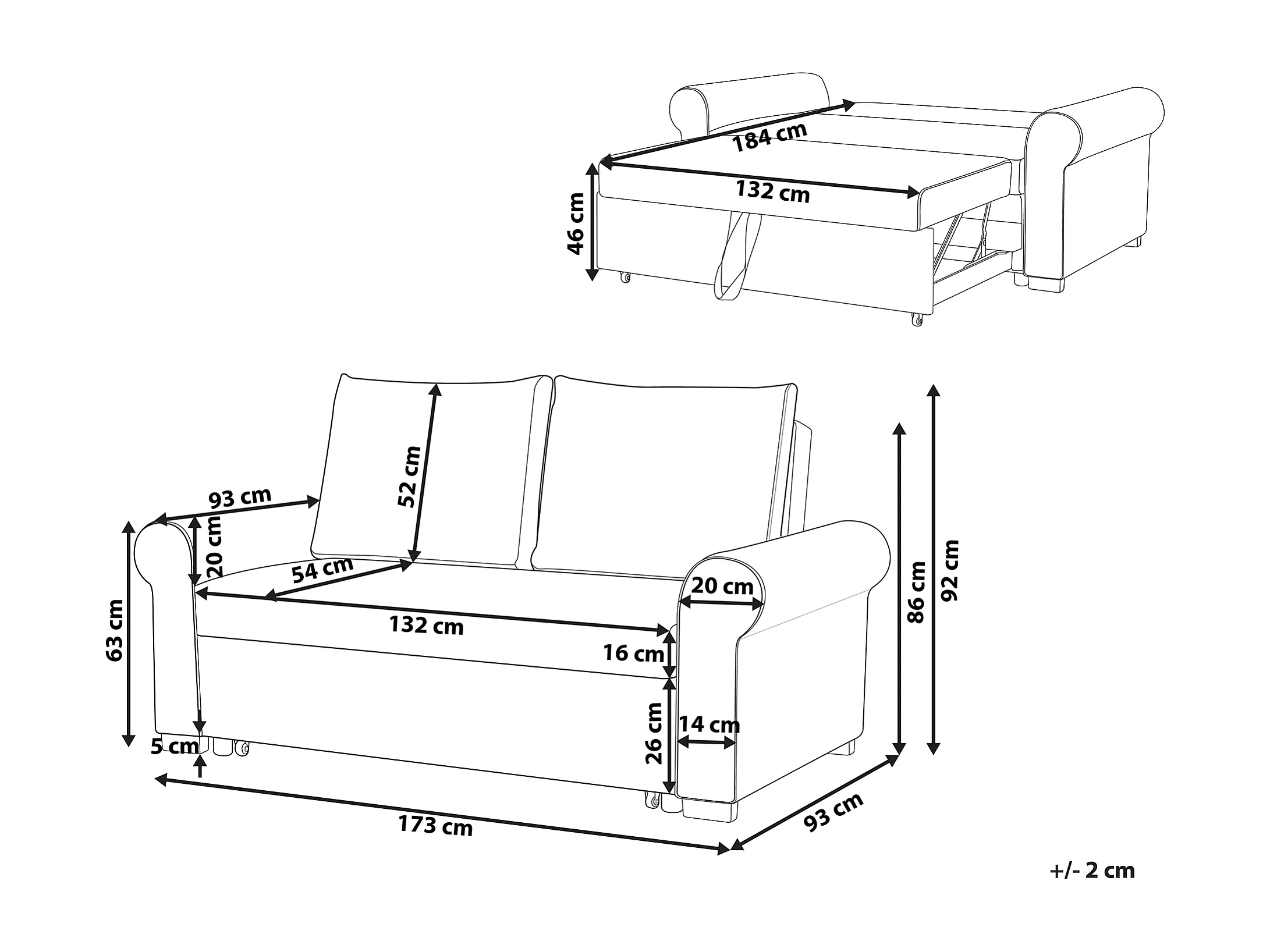 Canapé-lit 2 places SILDA Tissu Marron clair
