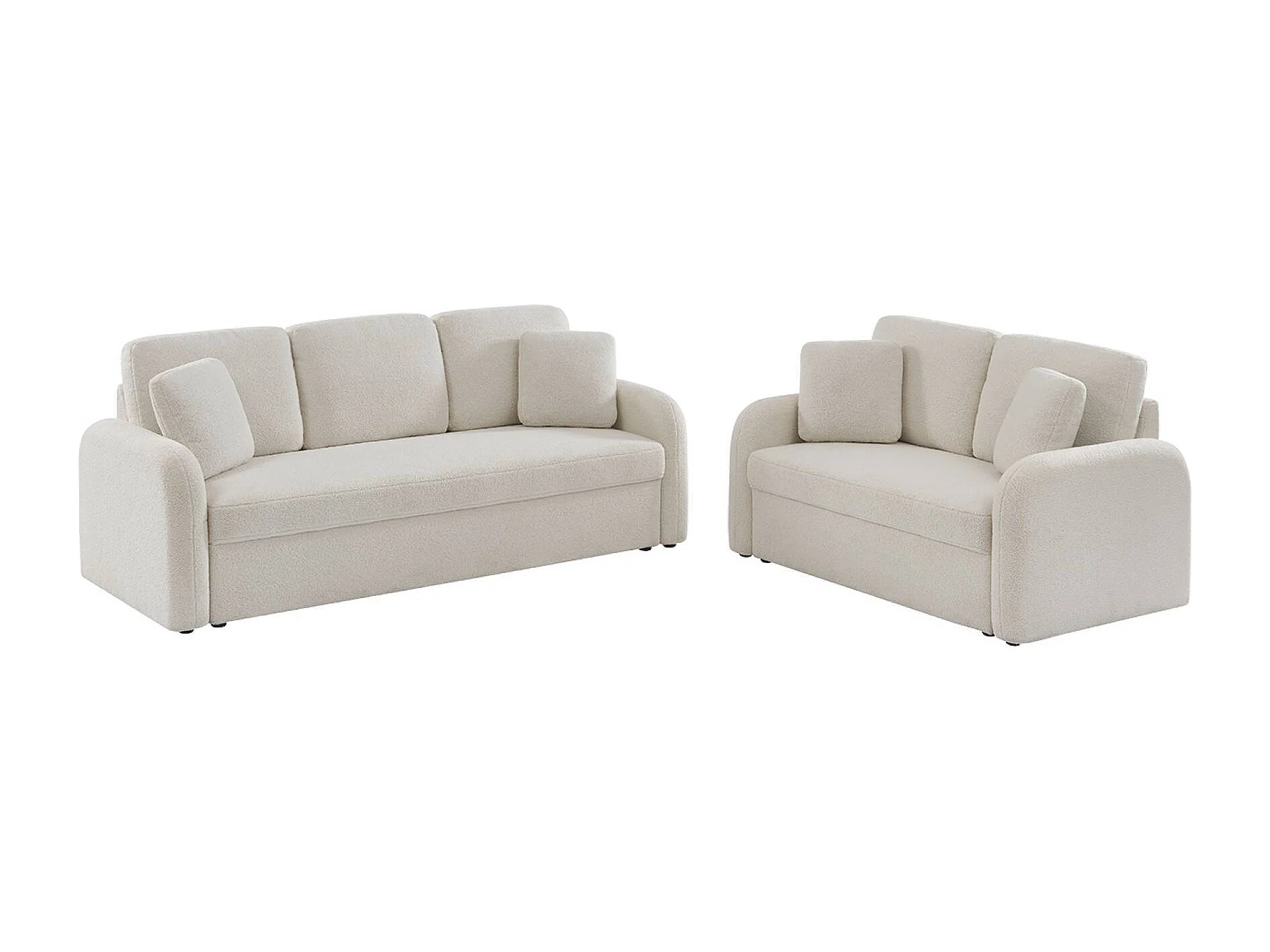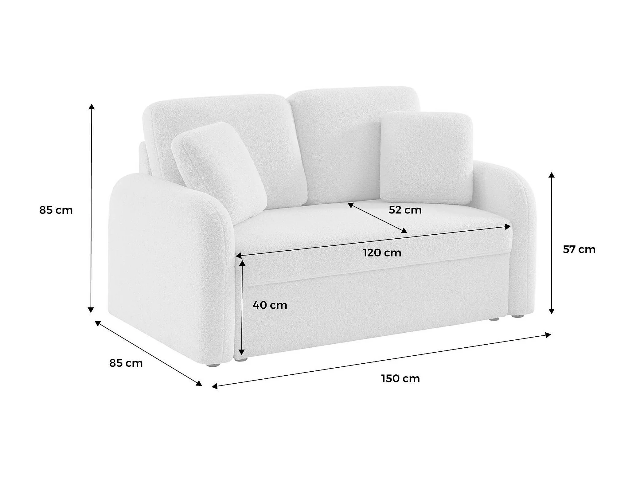 Canapé 2 places cosy rond. tissu bouclettes crème. Milano. L 150 x P 85 x H 85cm