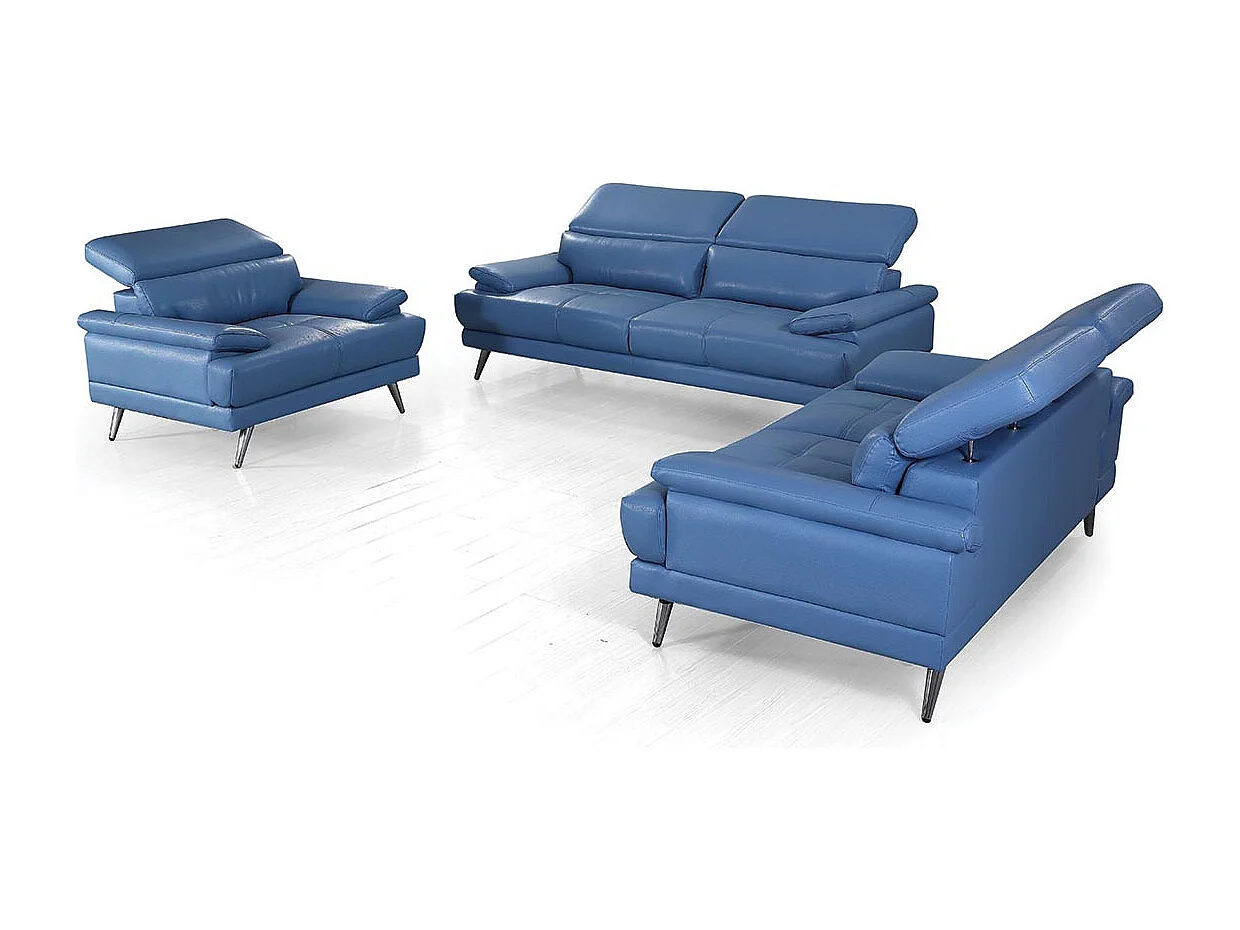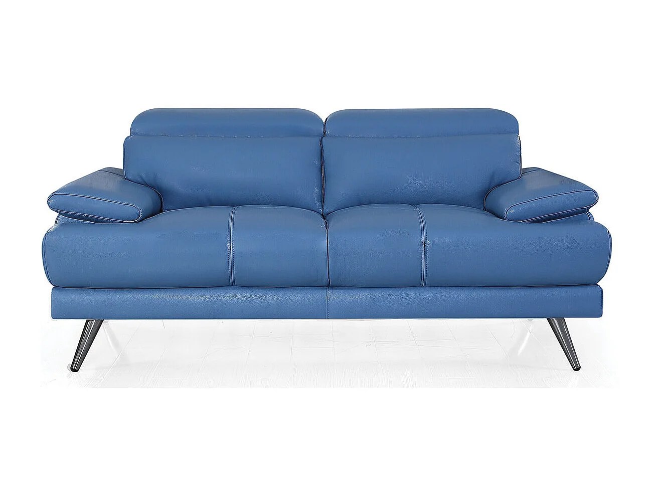 Canapé 2 places Cuir LENA Bleu - Angle Droit