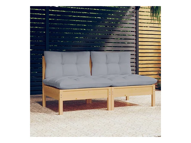 Canapé 2 places de jardin et coussins gris Bois de pin solide