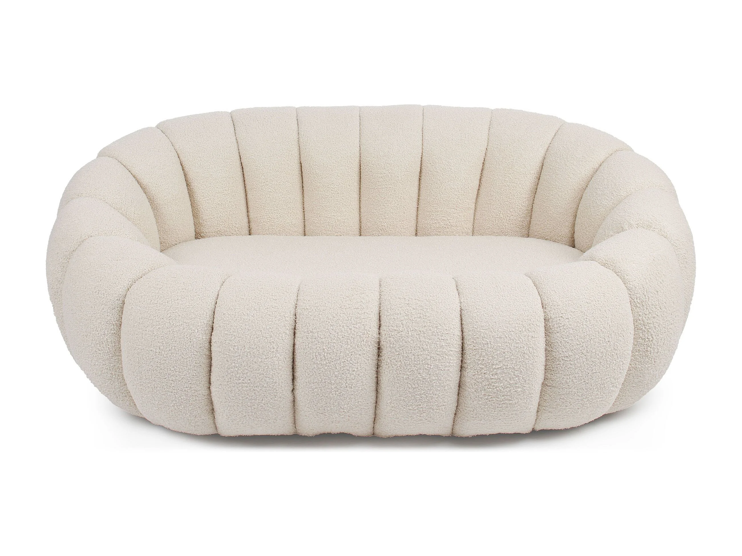 Canapé 2 Places design coquillage Horizan Tissu bouclette Crème