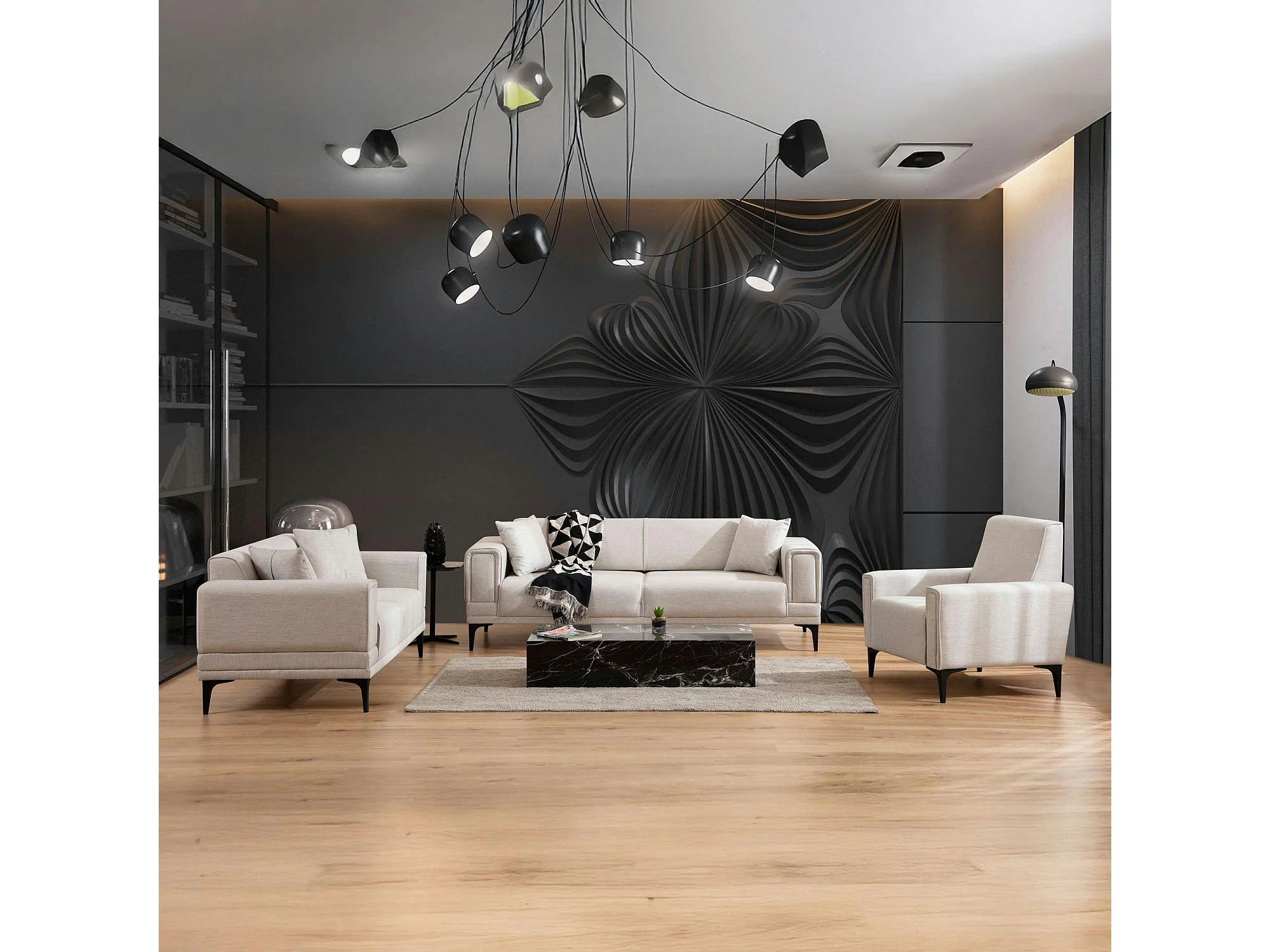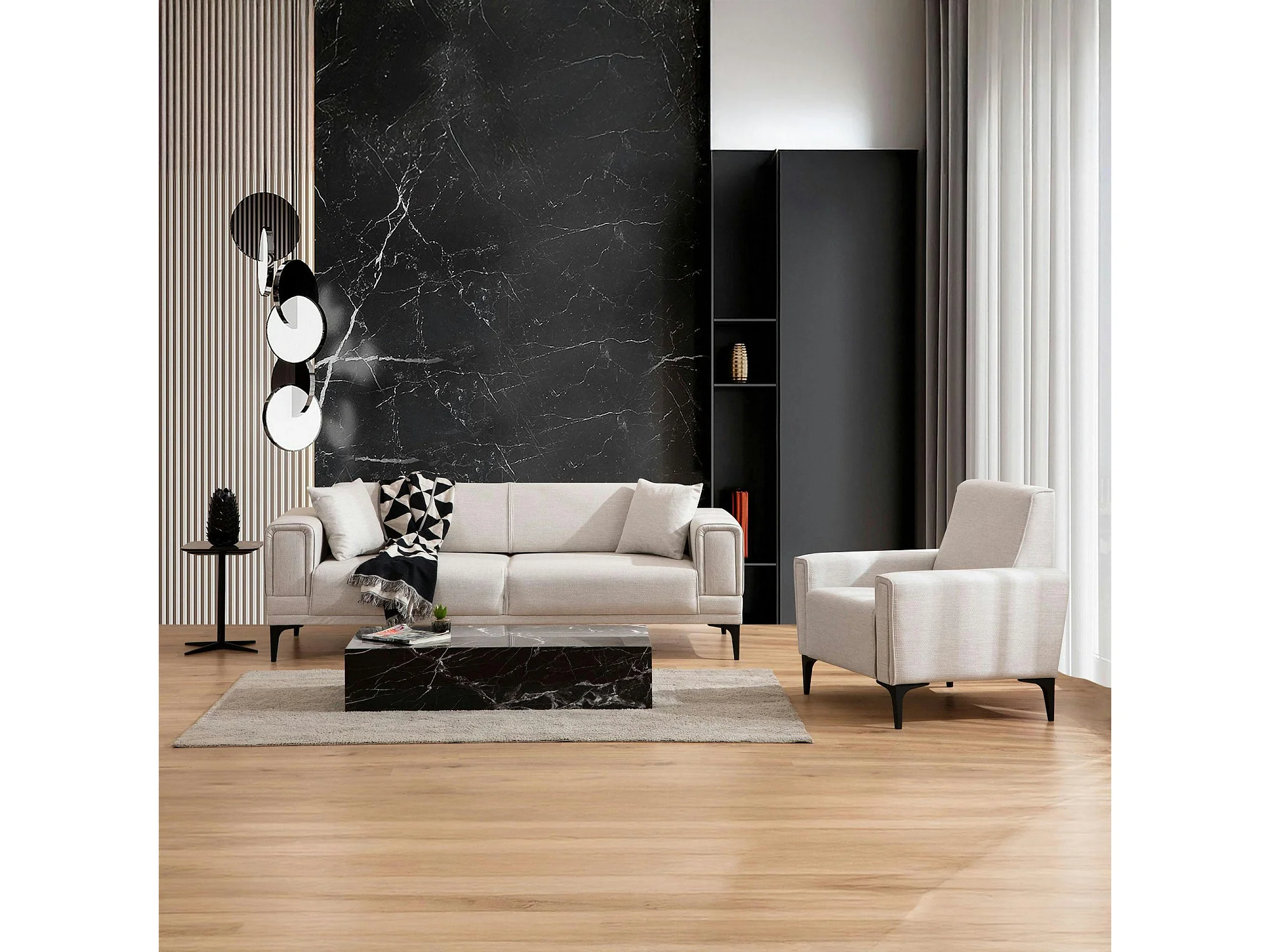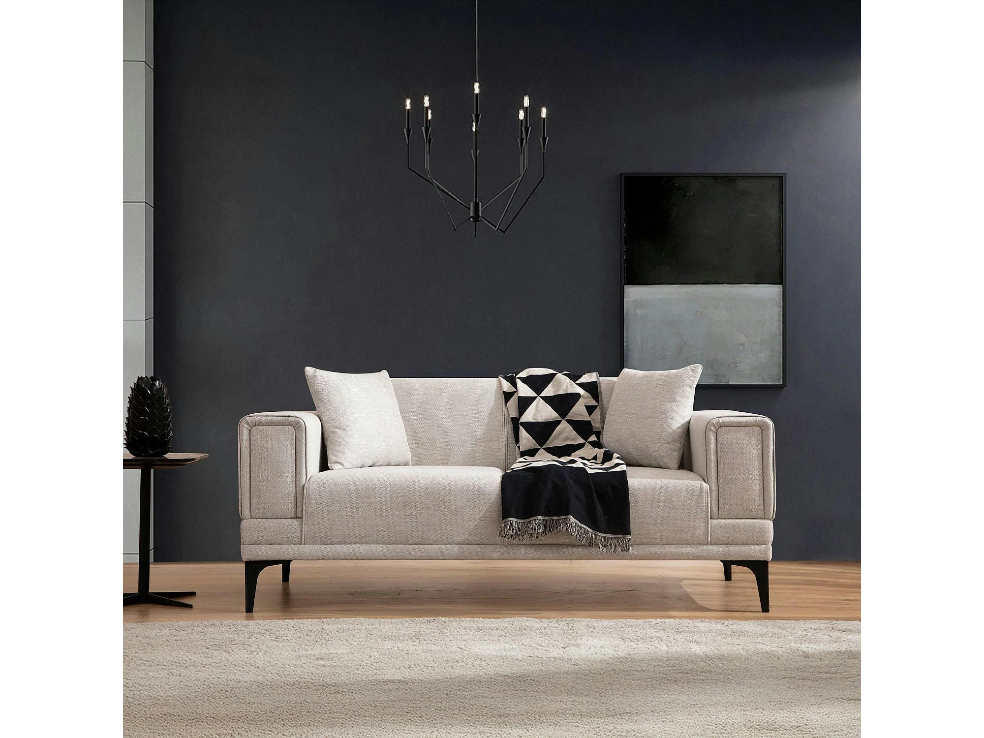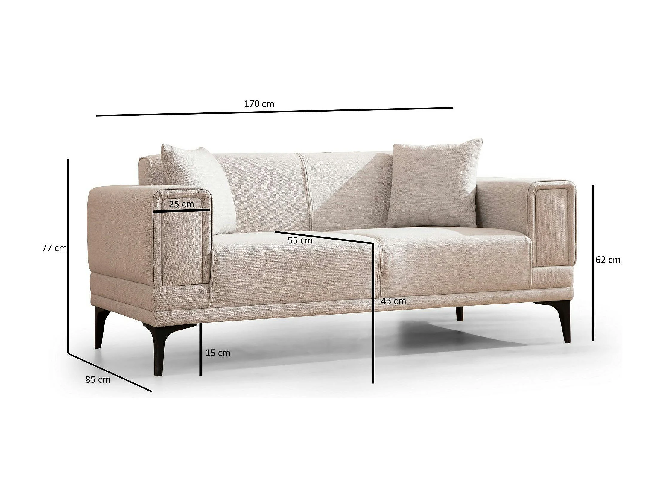 Canapé 2 places écru, accoudoirs matelassés 170 cm LUCCA