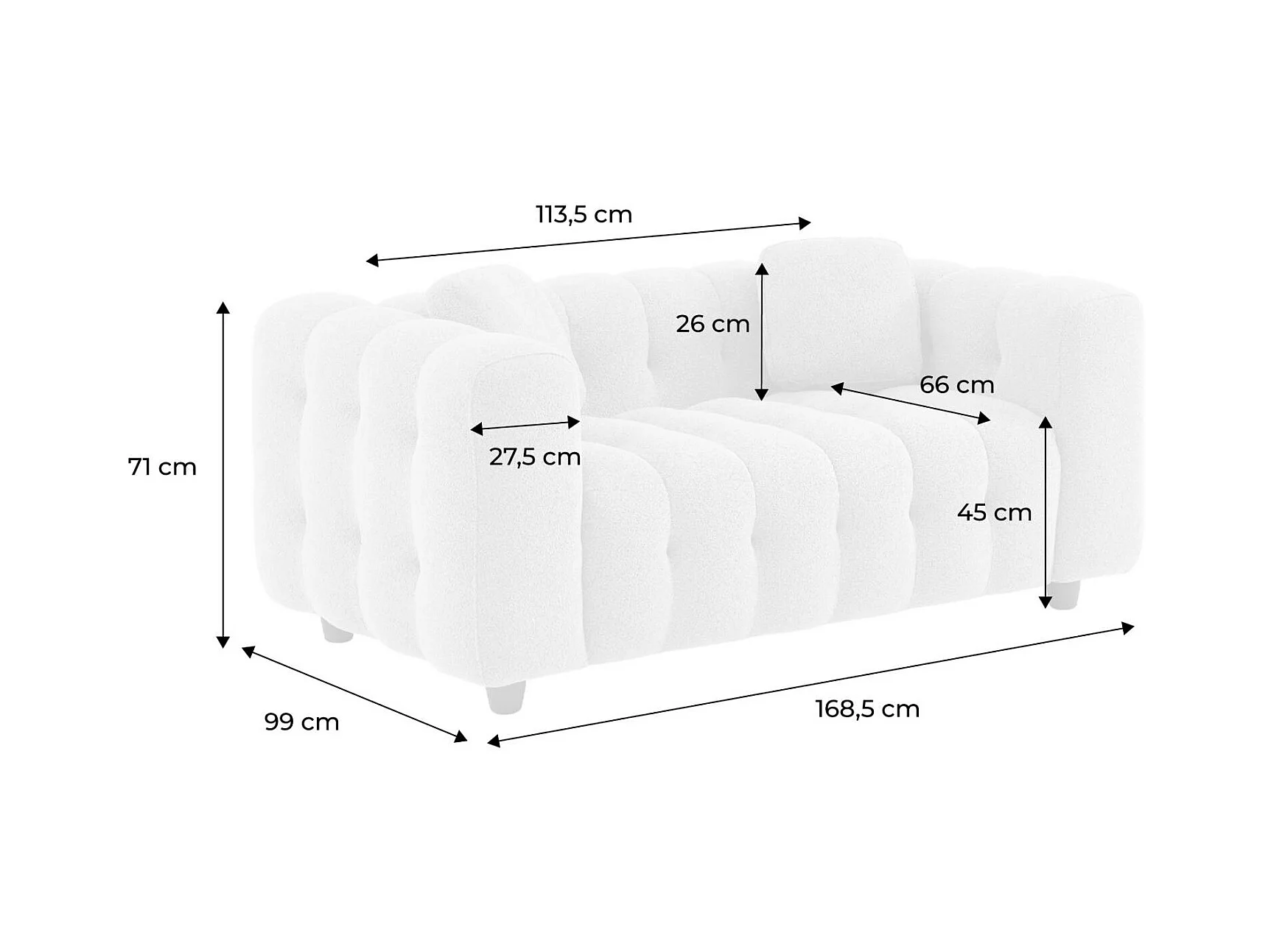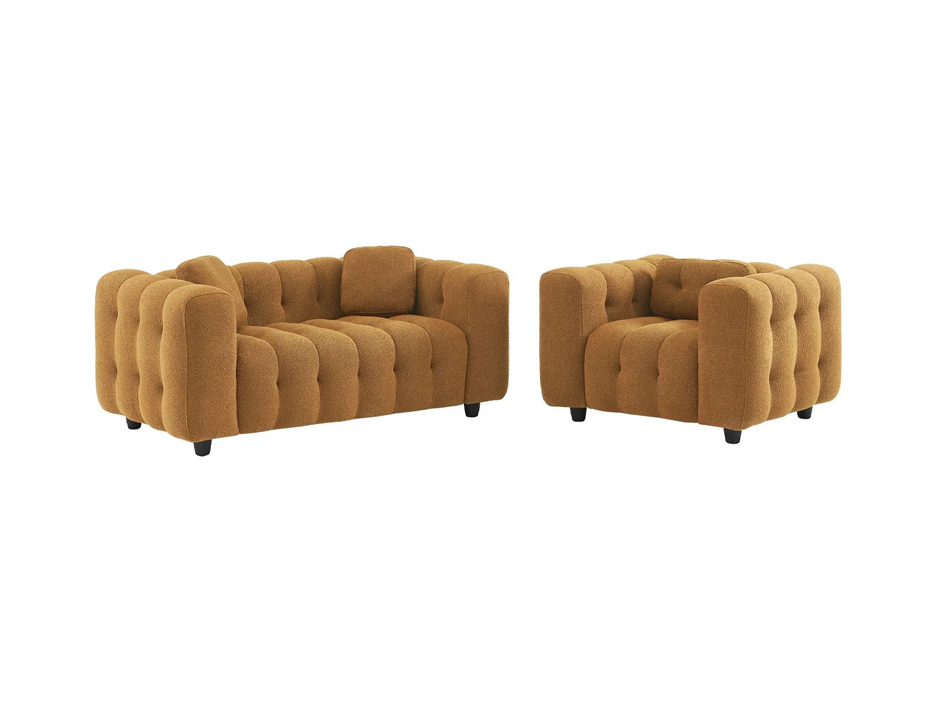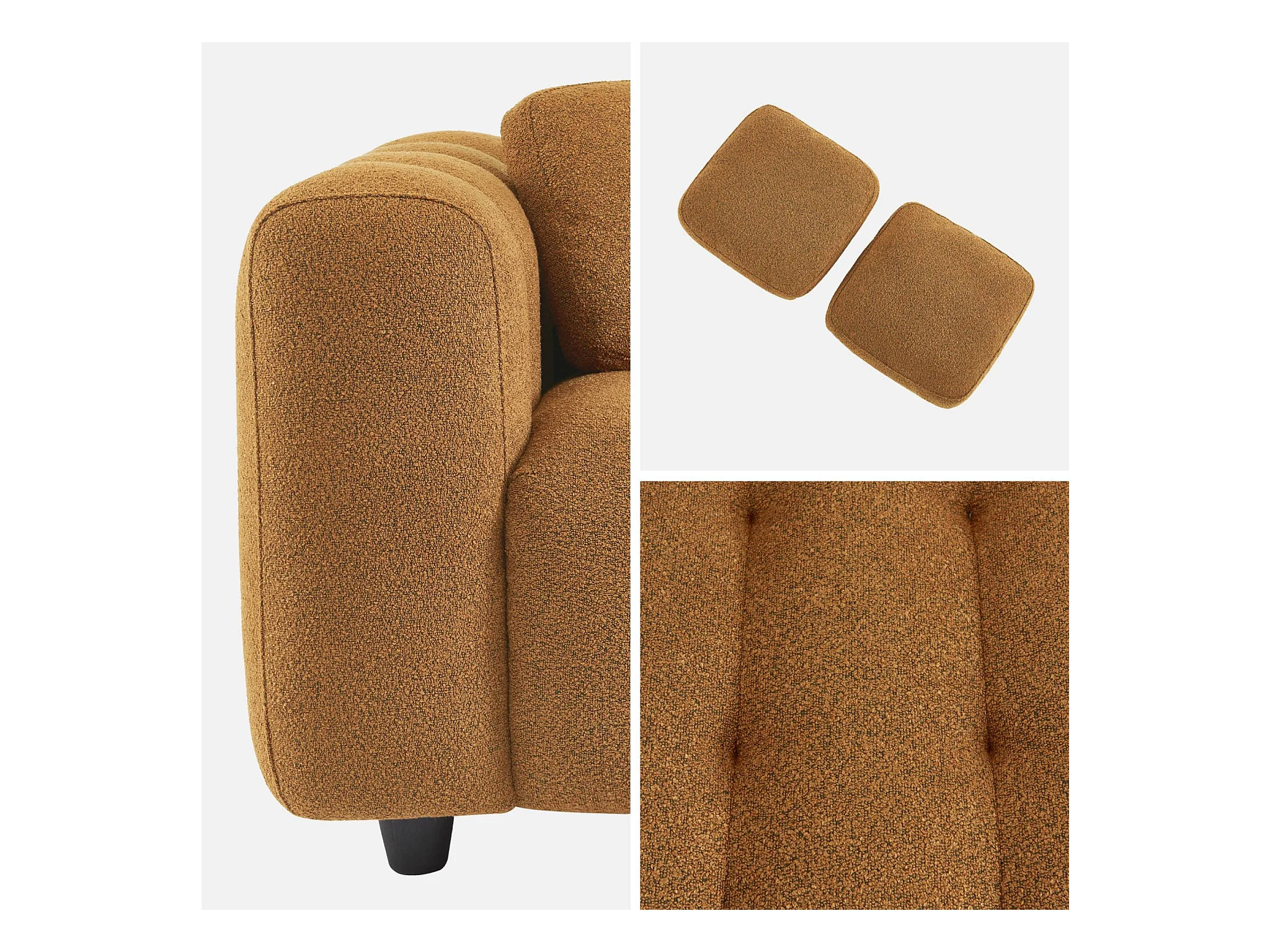 Canapé 2 places en bouclette texturée capitonné. moutarde. structure bois d'eucalyptus et contreplaqué