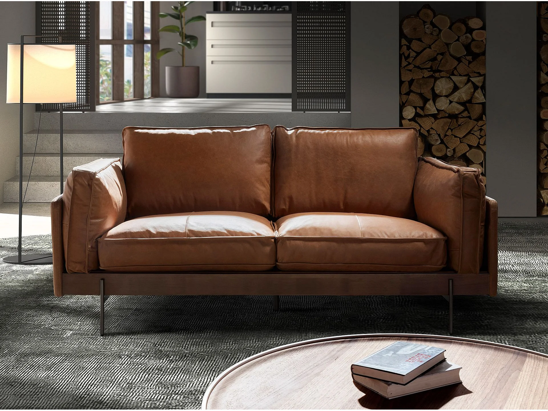 Canapé 2 places en cuir brun tabac 6222 ANGEL CERDA