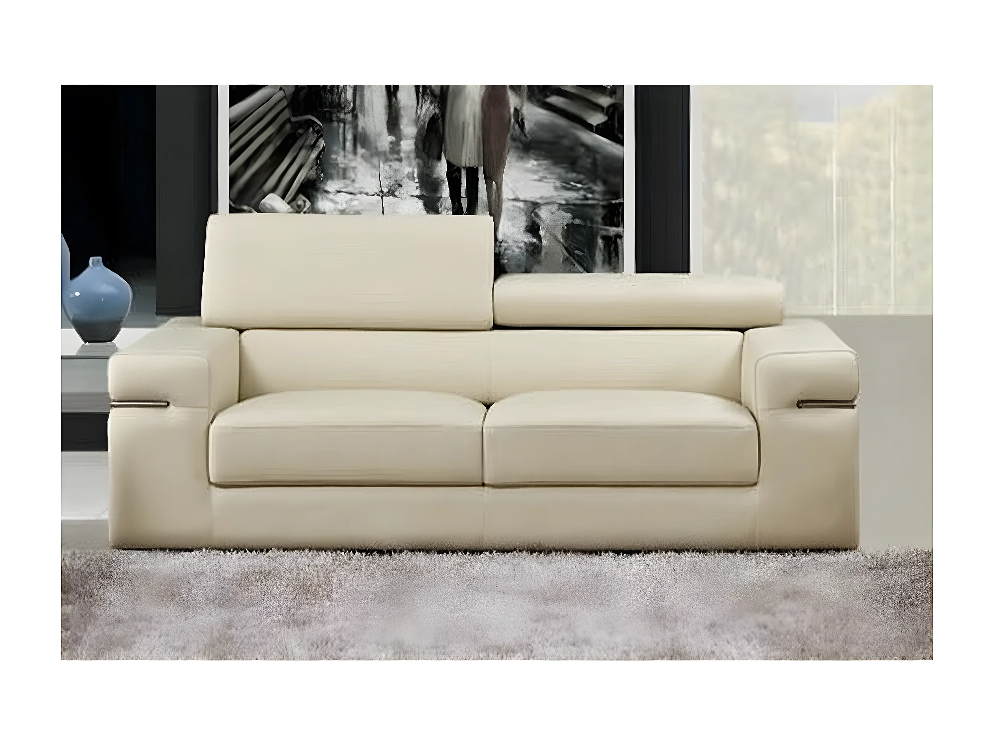 Canapé 2 places en cuir de qualité écru, ALONSO