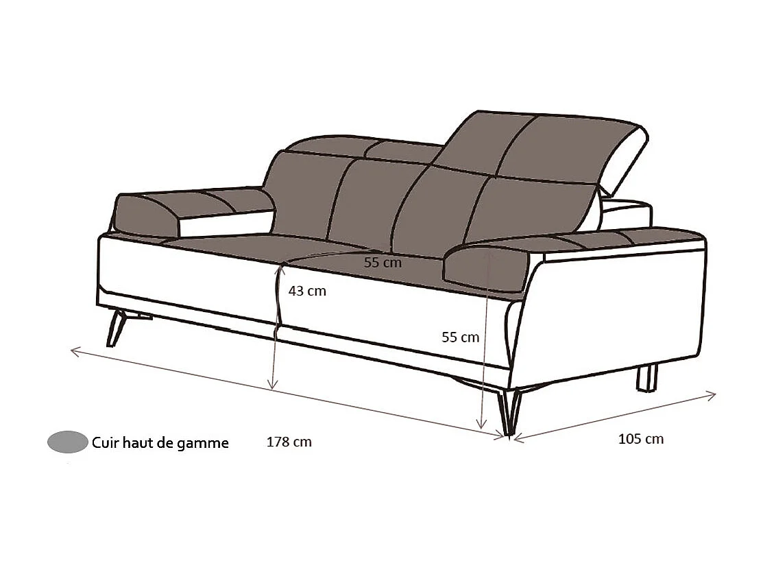 Canapé 2 places en cuir GARLIK Gris perle - Angle Droit
