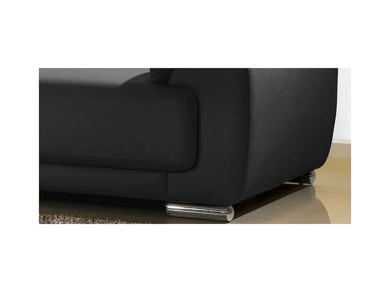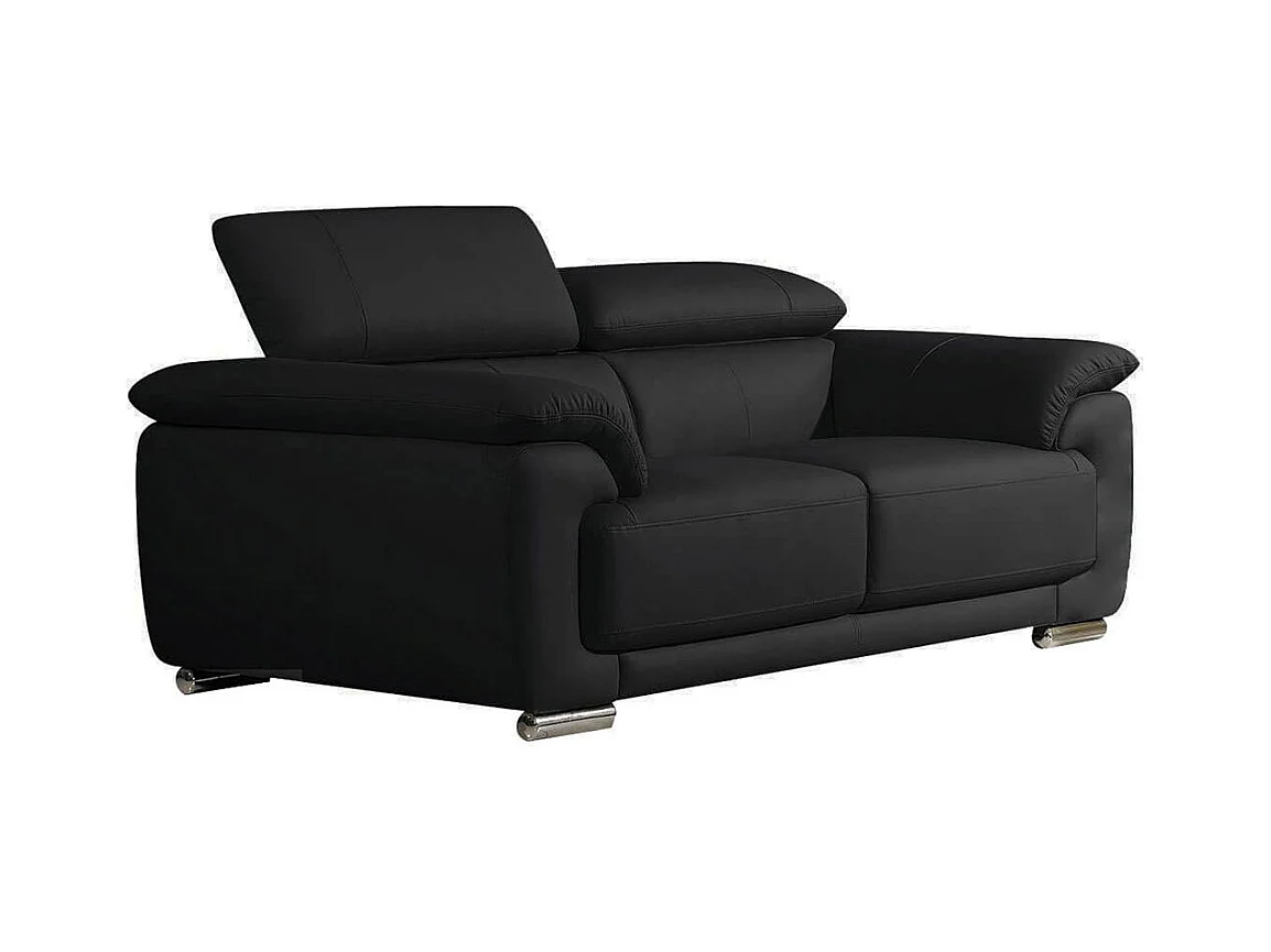 Canapé 2 places en cuir noir MARJORIE - Angle Droit