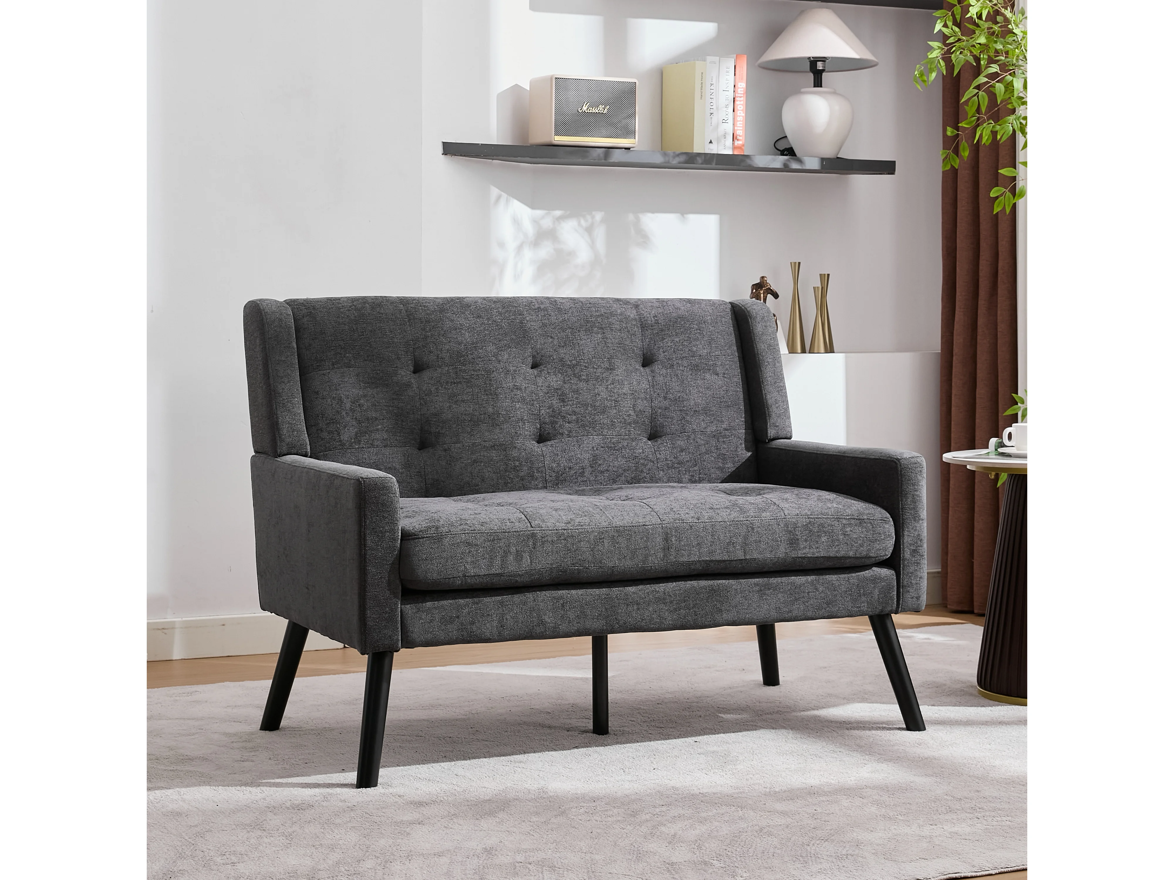 Canapé 2 places en lin gris foncé - Pieds en bois antidérapants - Pour salon, chambre et bureau