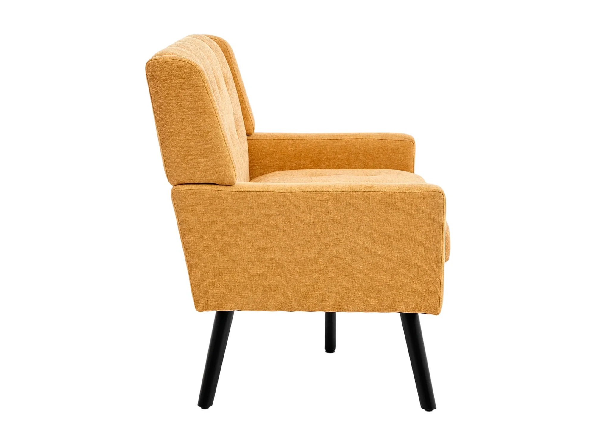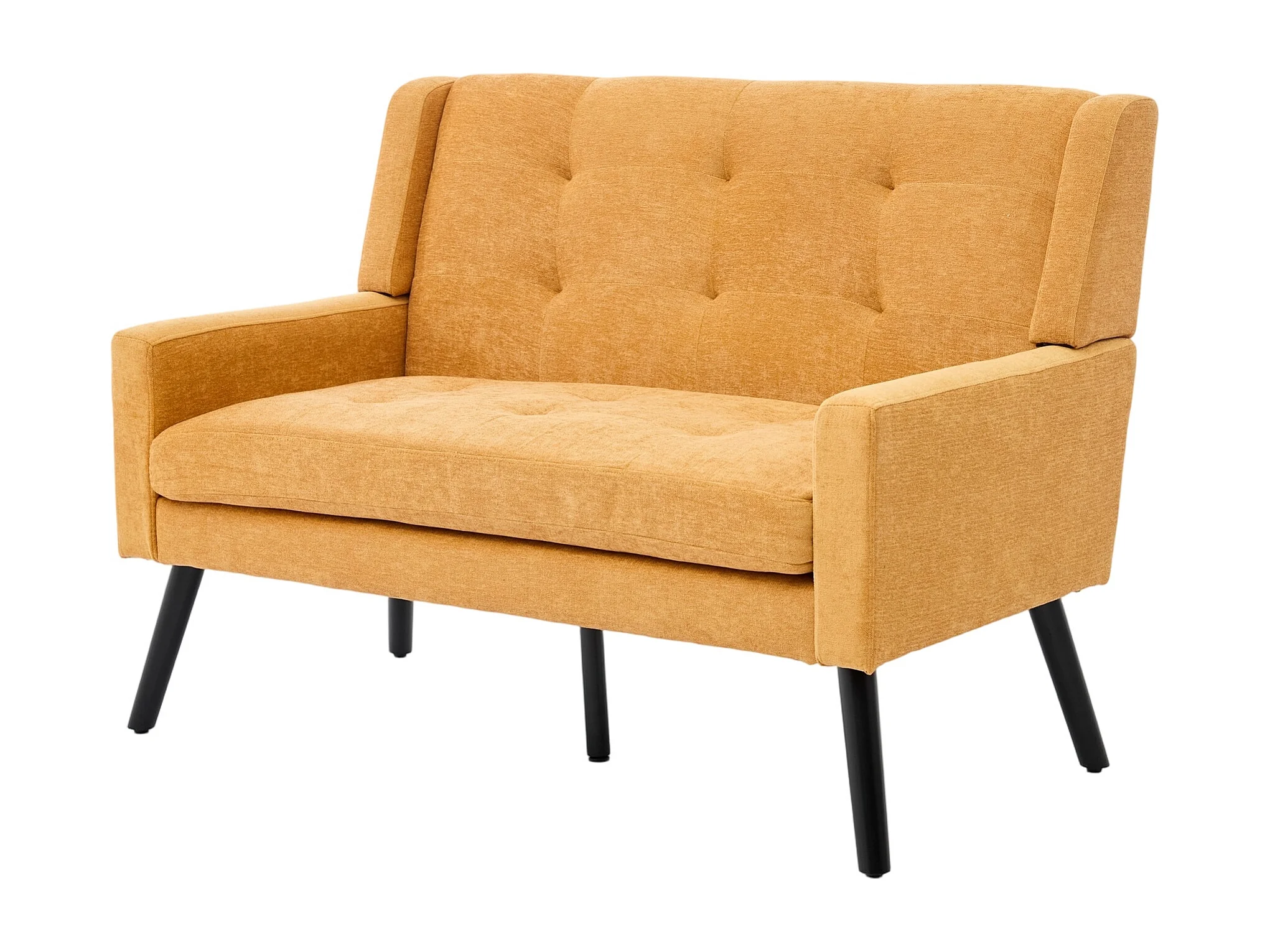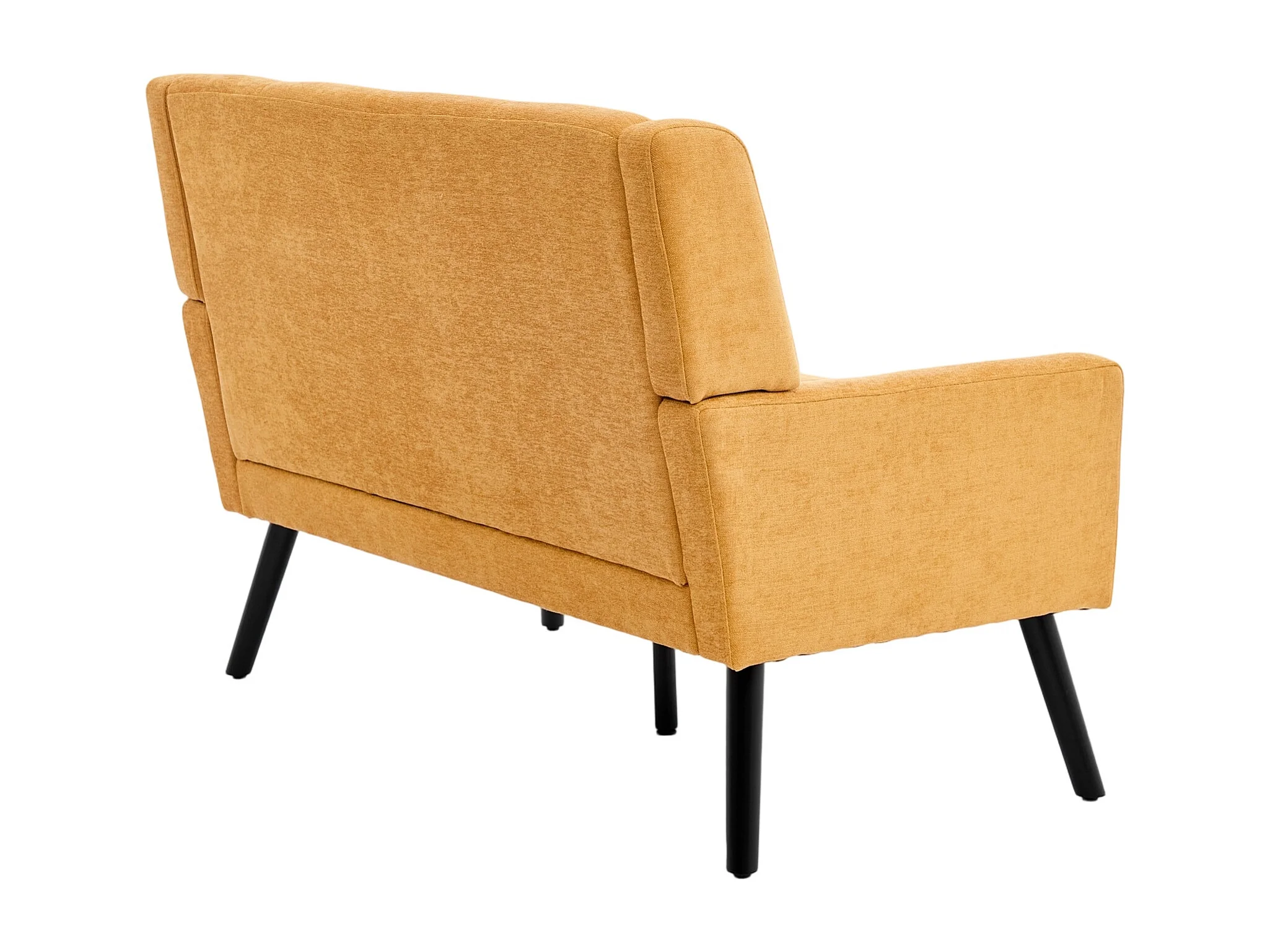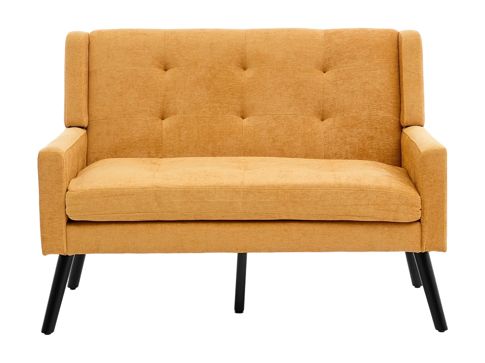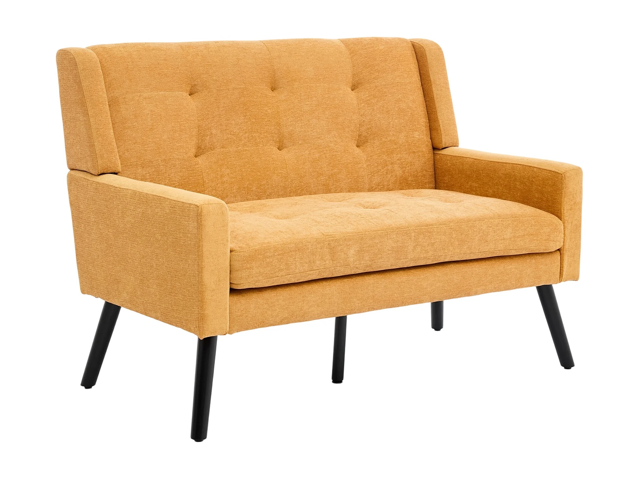 Canapé 2 places en lin jaune - Pieds en bois antidérapants - Pour salon, chambre et bureau