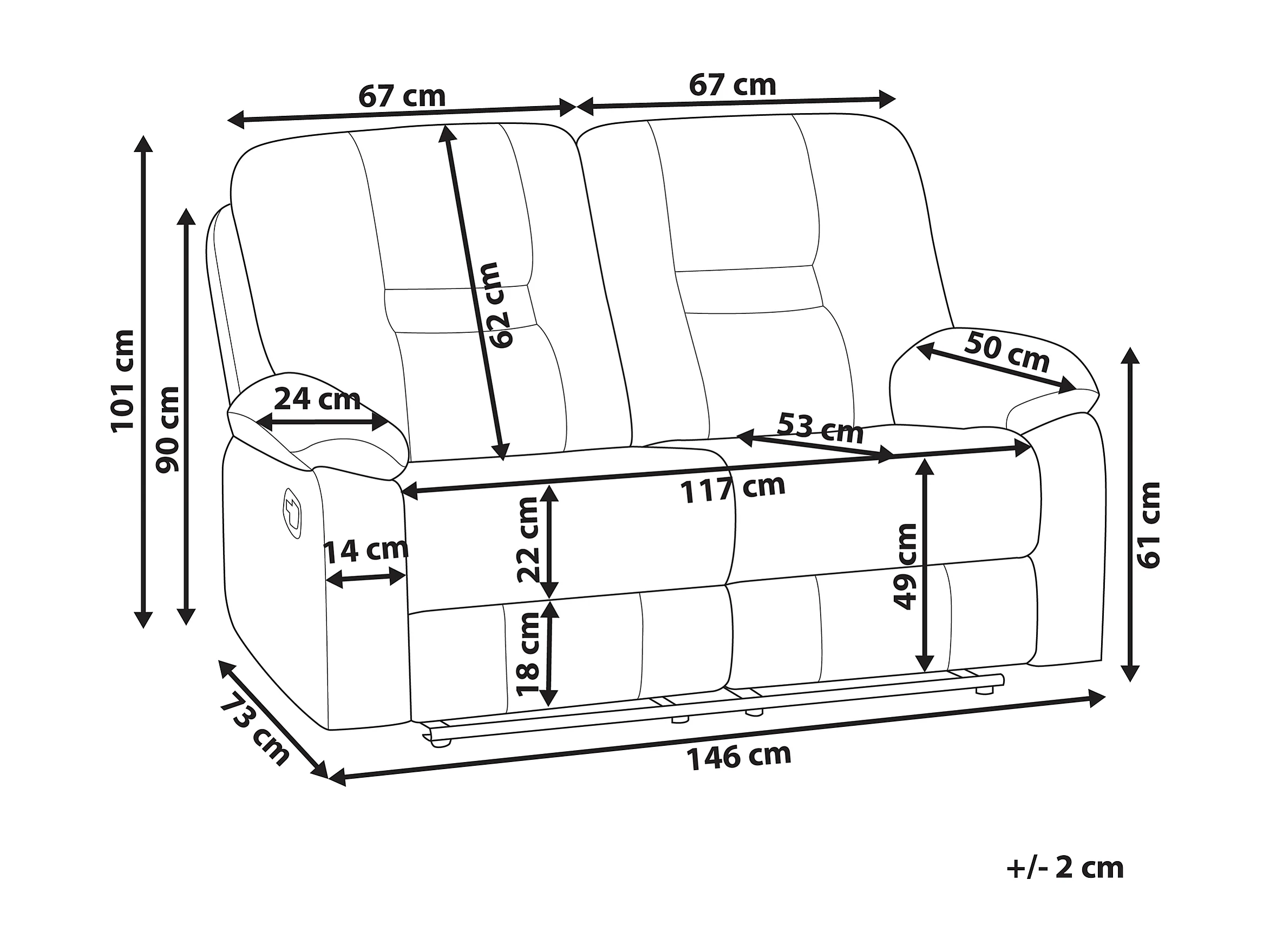 Canapé relax manuel 2 places BERGEN Cuir PU Marron