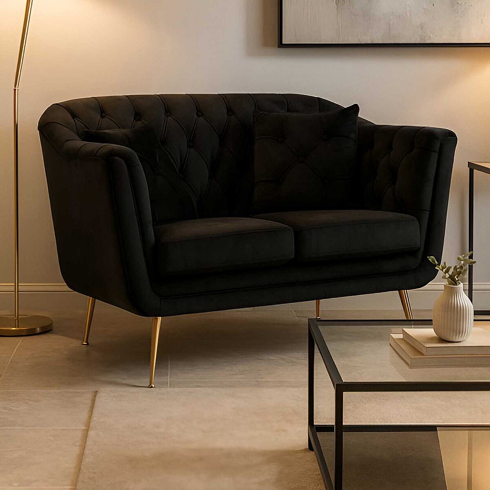 Canapé 2 places en tissu capitonné avec coussins Budapest 130 x 83 x 91 cm