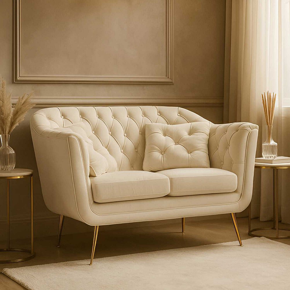 Canapé 2 places en tissu capitonné avec coussins Budapest 130 x 83 x 91 cm