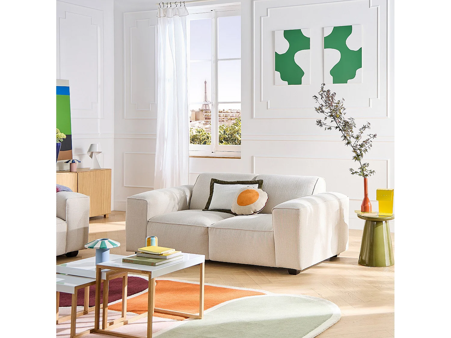 Canapé 2 places en tissu chenille Nino - Crème