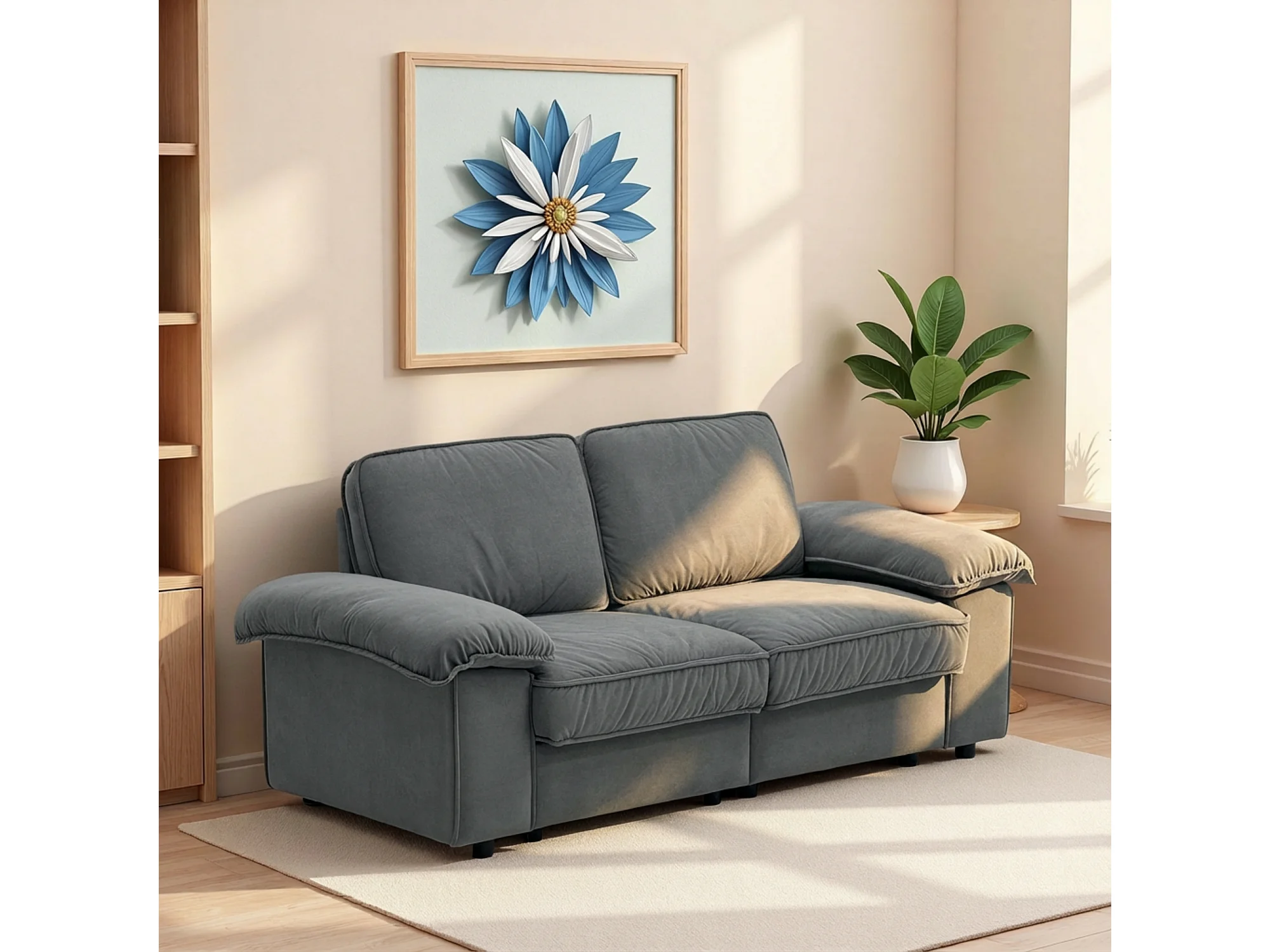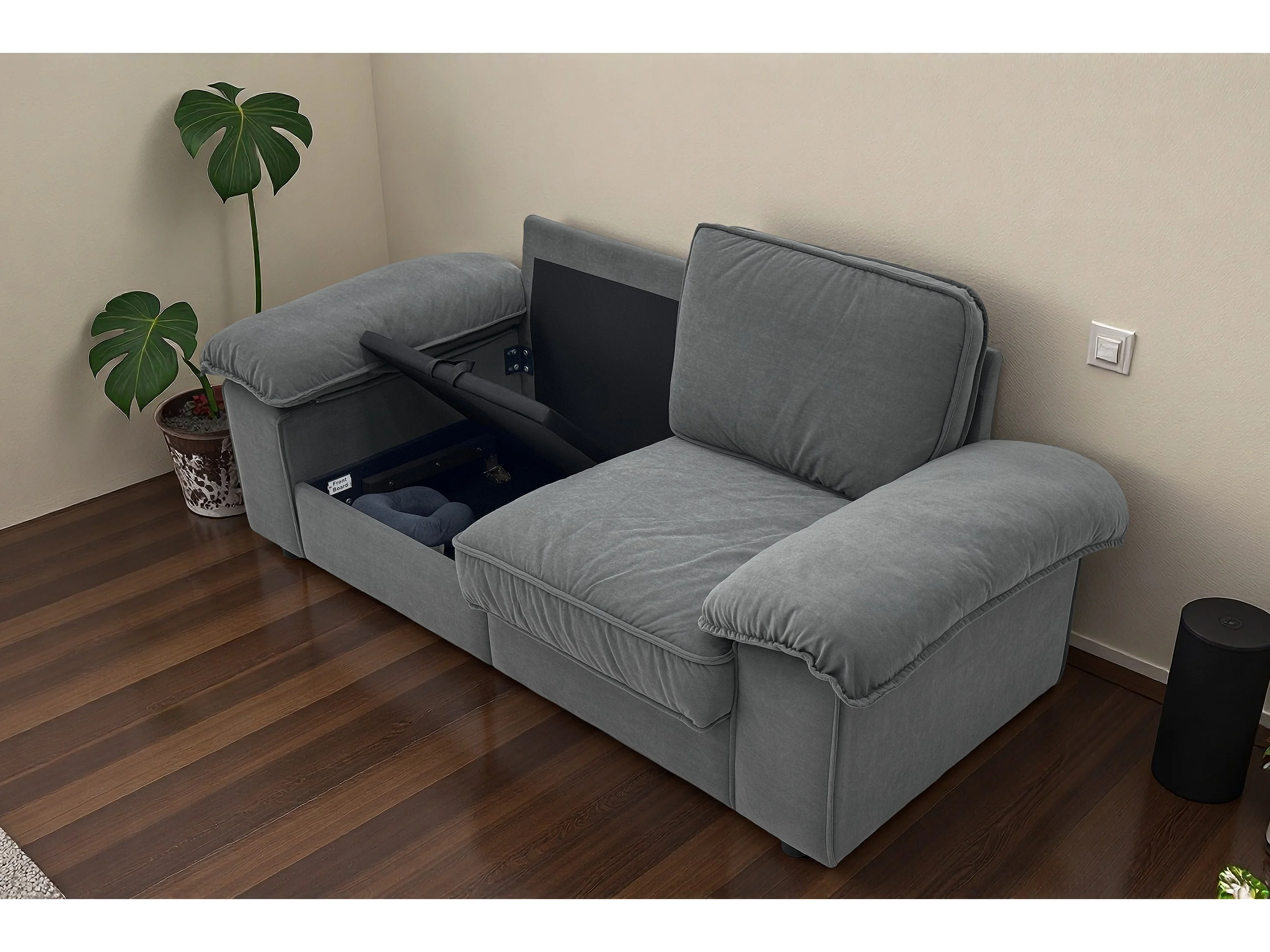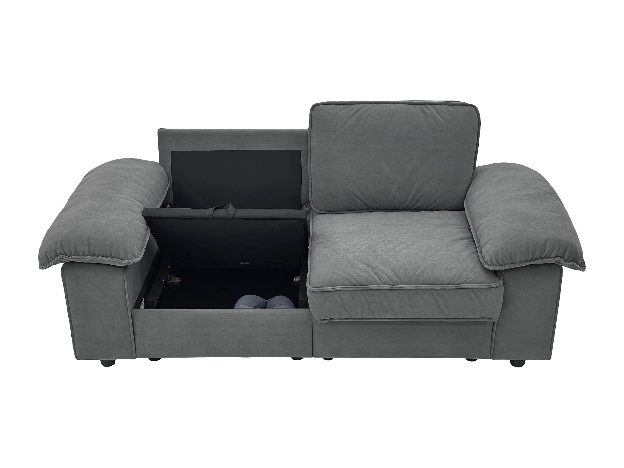 Canapé 2 places en tissu gris avec coffre de rangement - Structure en bois