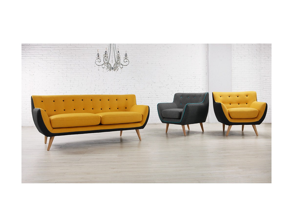 Canapé 2 places en tissu SERTI - Jaune et bord anthracite