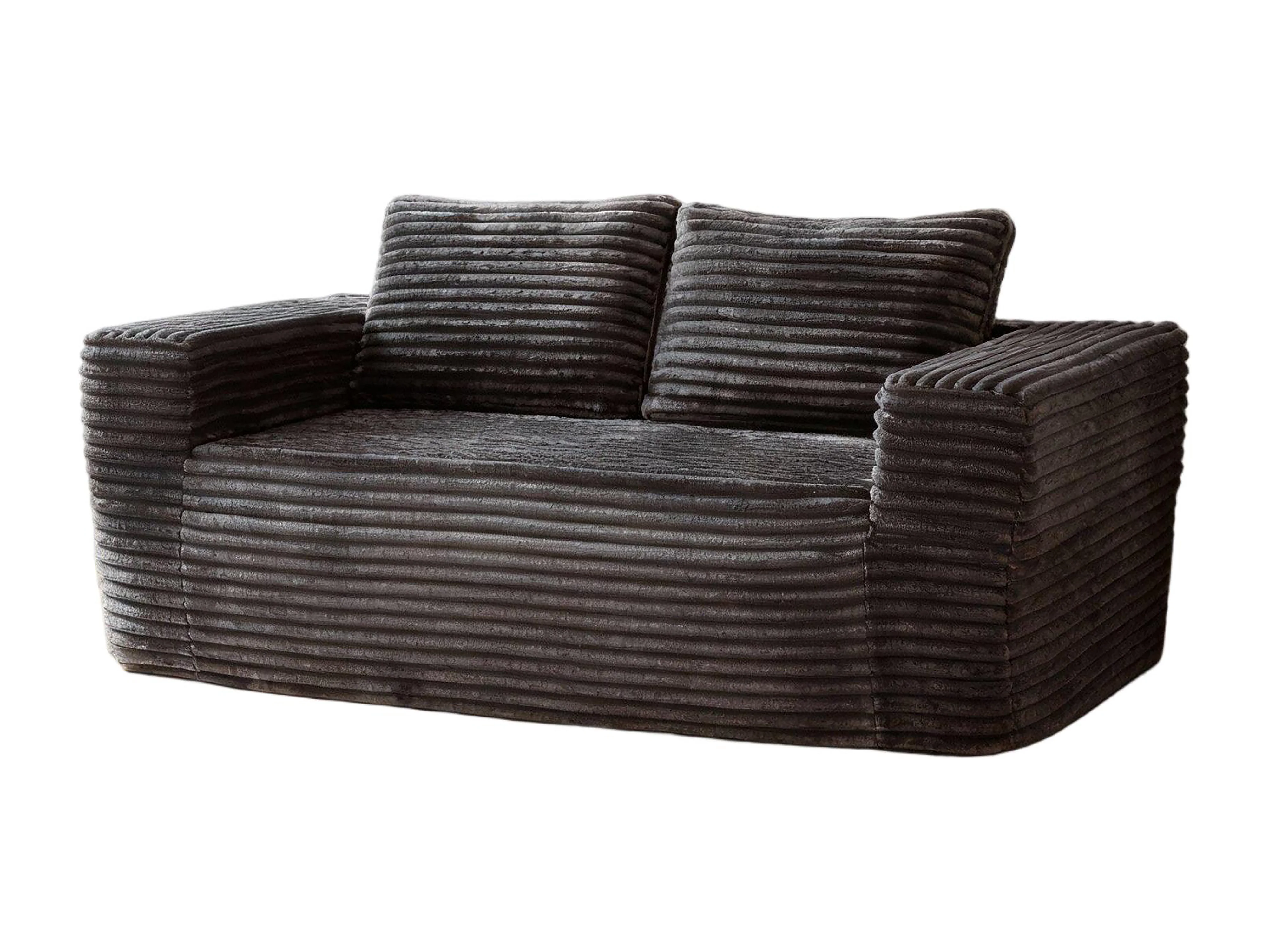 Canapé 2 Places, en Velours côtelé gris, 65cm profondeur d'assise, avec 2 Coussins, 160x88x58cm