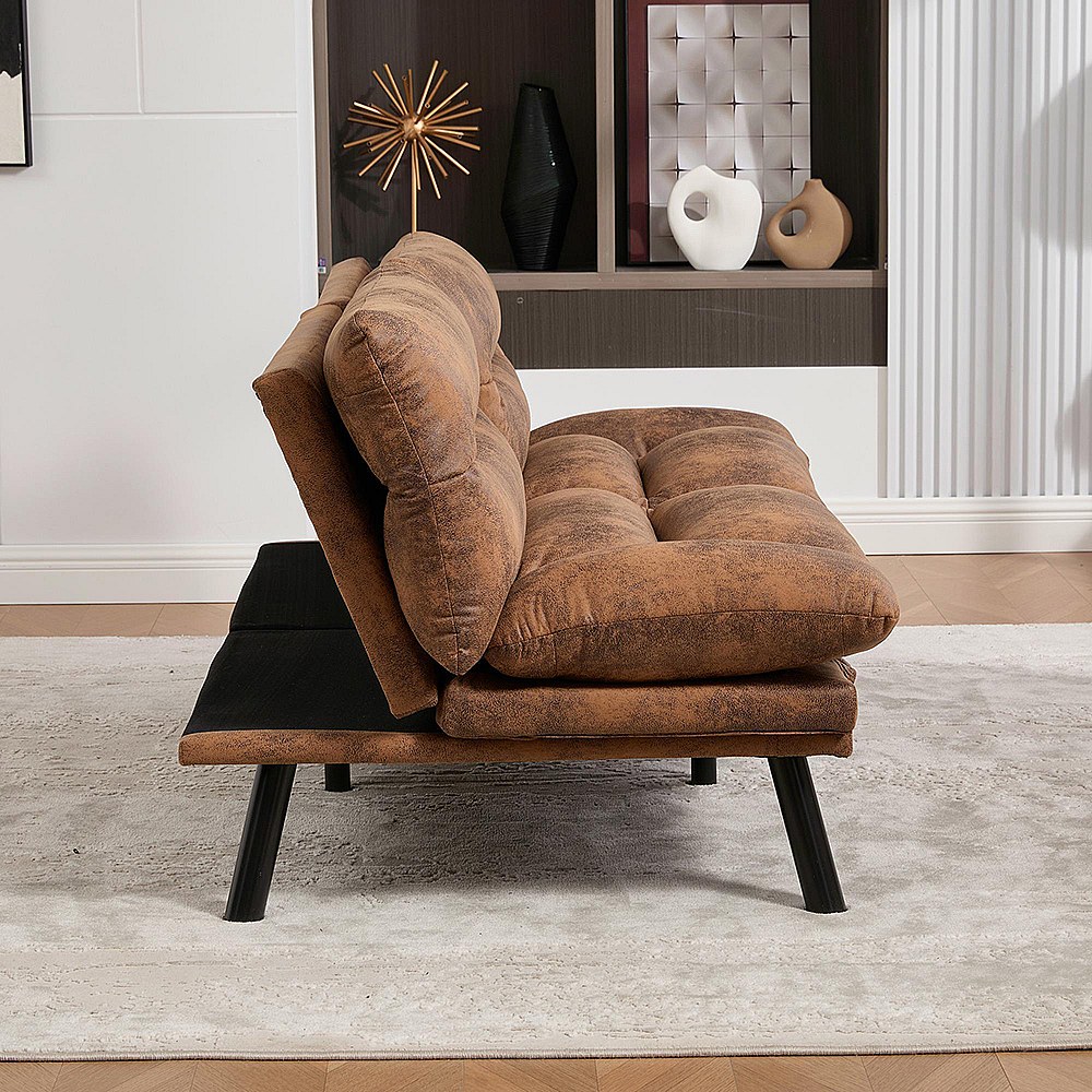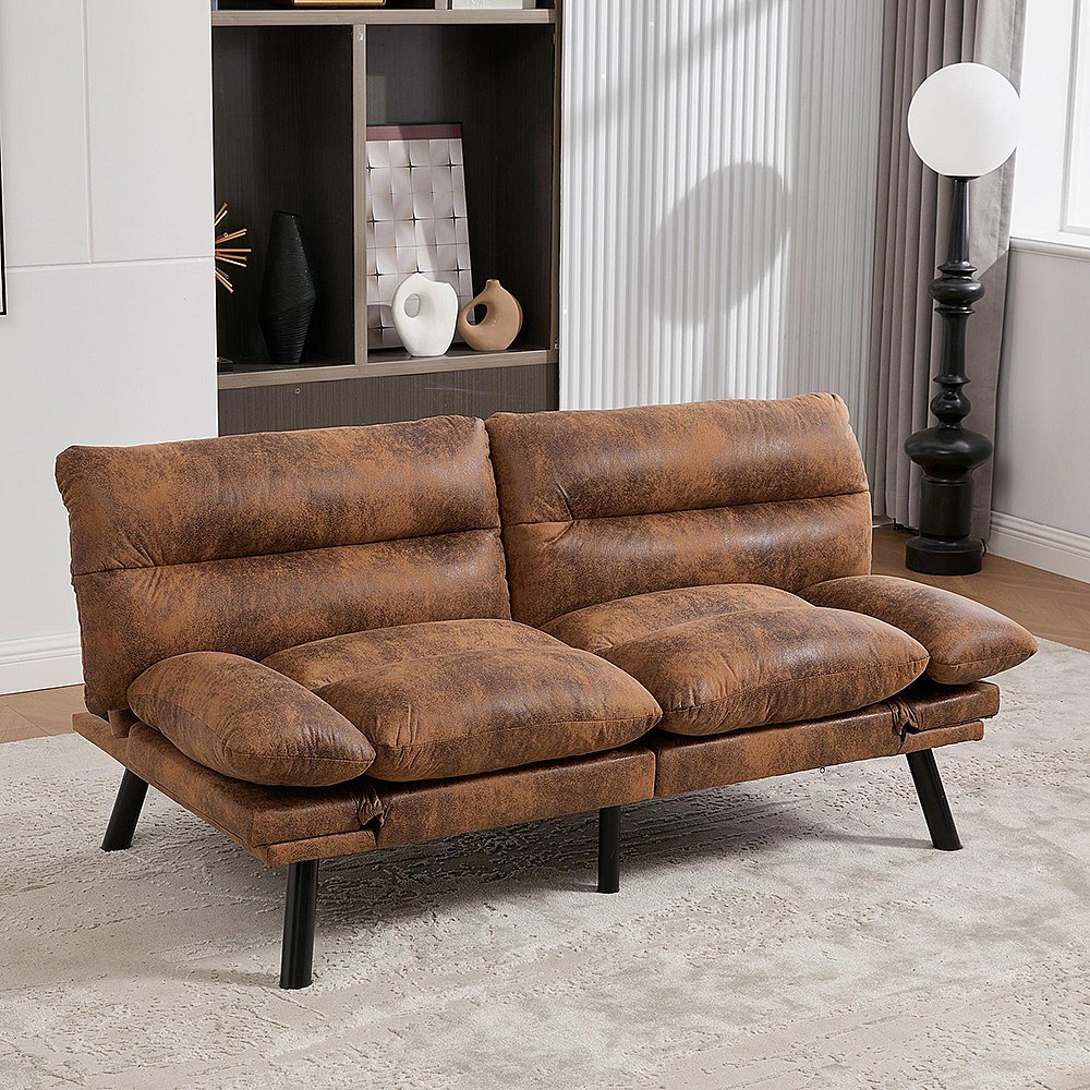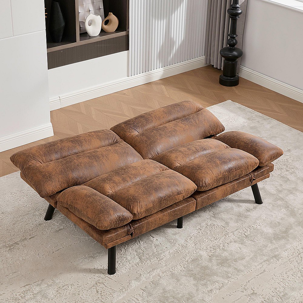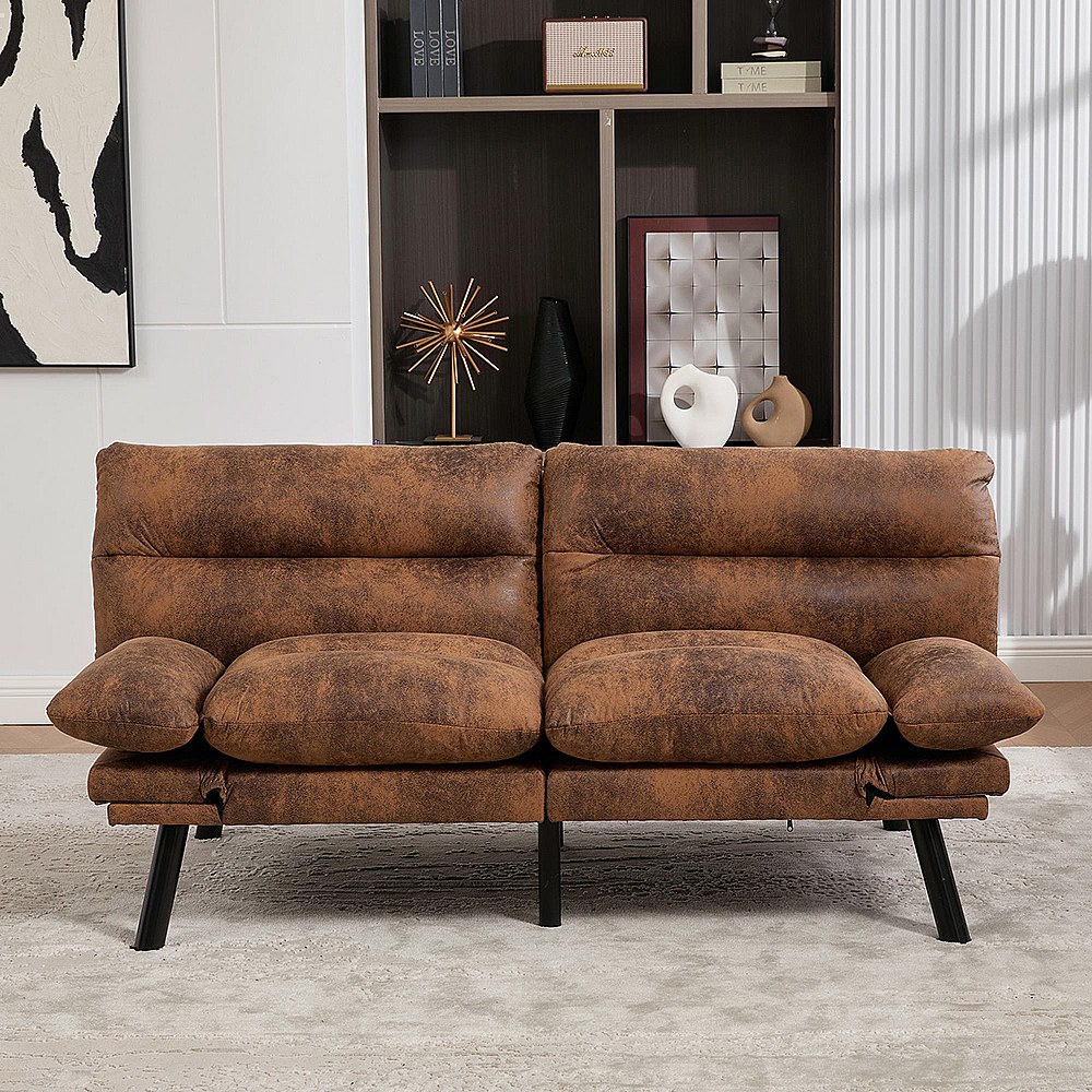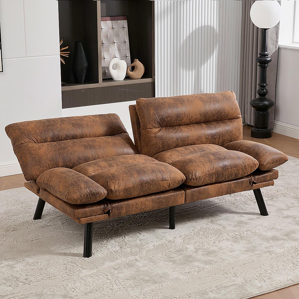 Canapé 2 places ergonomique assise aérée dossier accoudoirs ajustables pieds métal confort stable Café