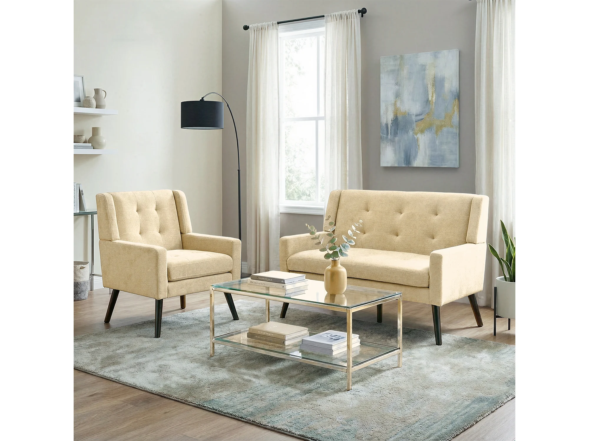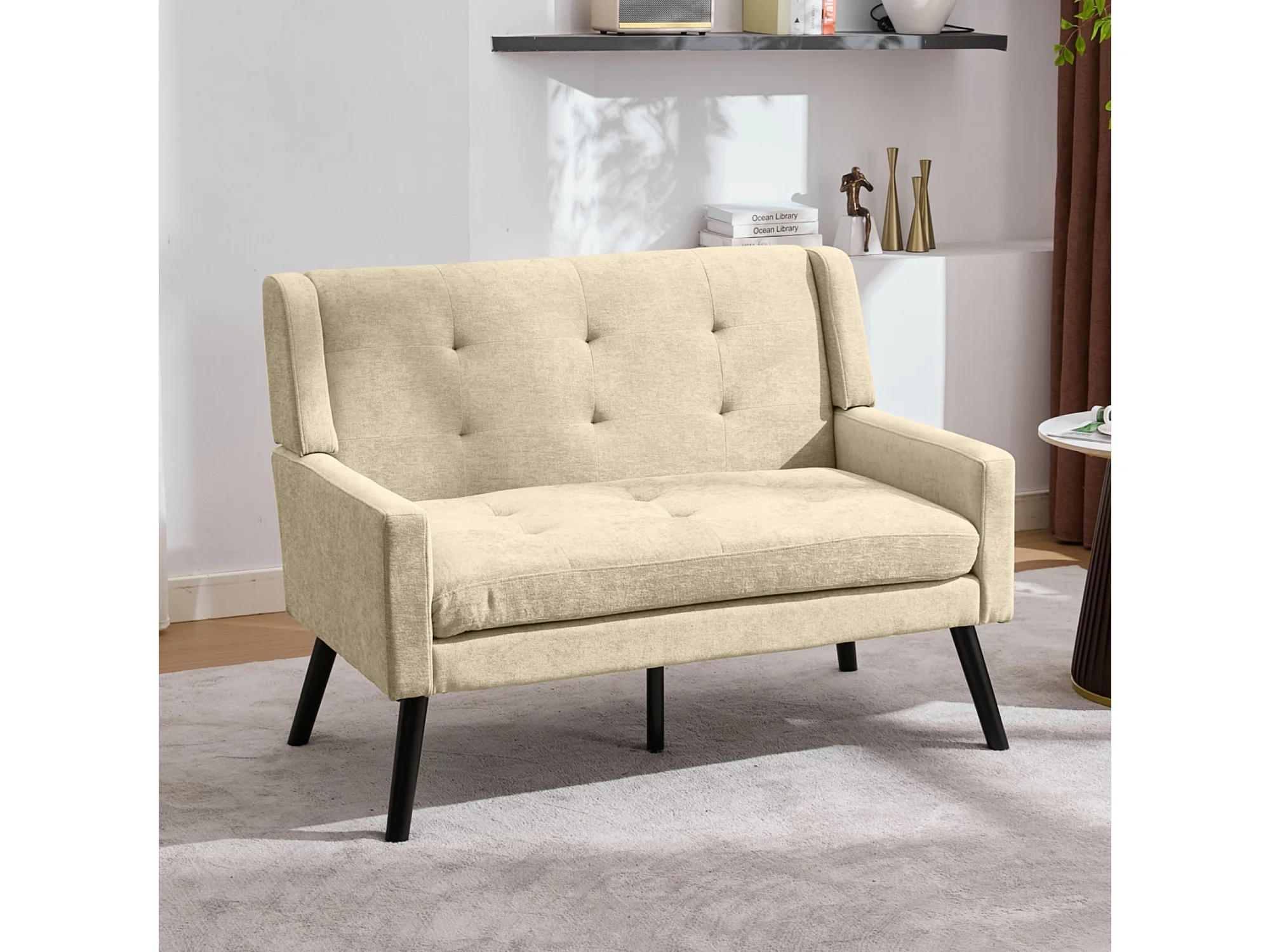 Canapé 2 places et fauteuils en tissu lin beige - Ensemble de 2 avec pieds en bois