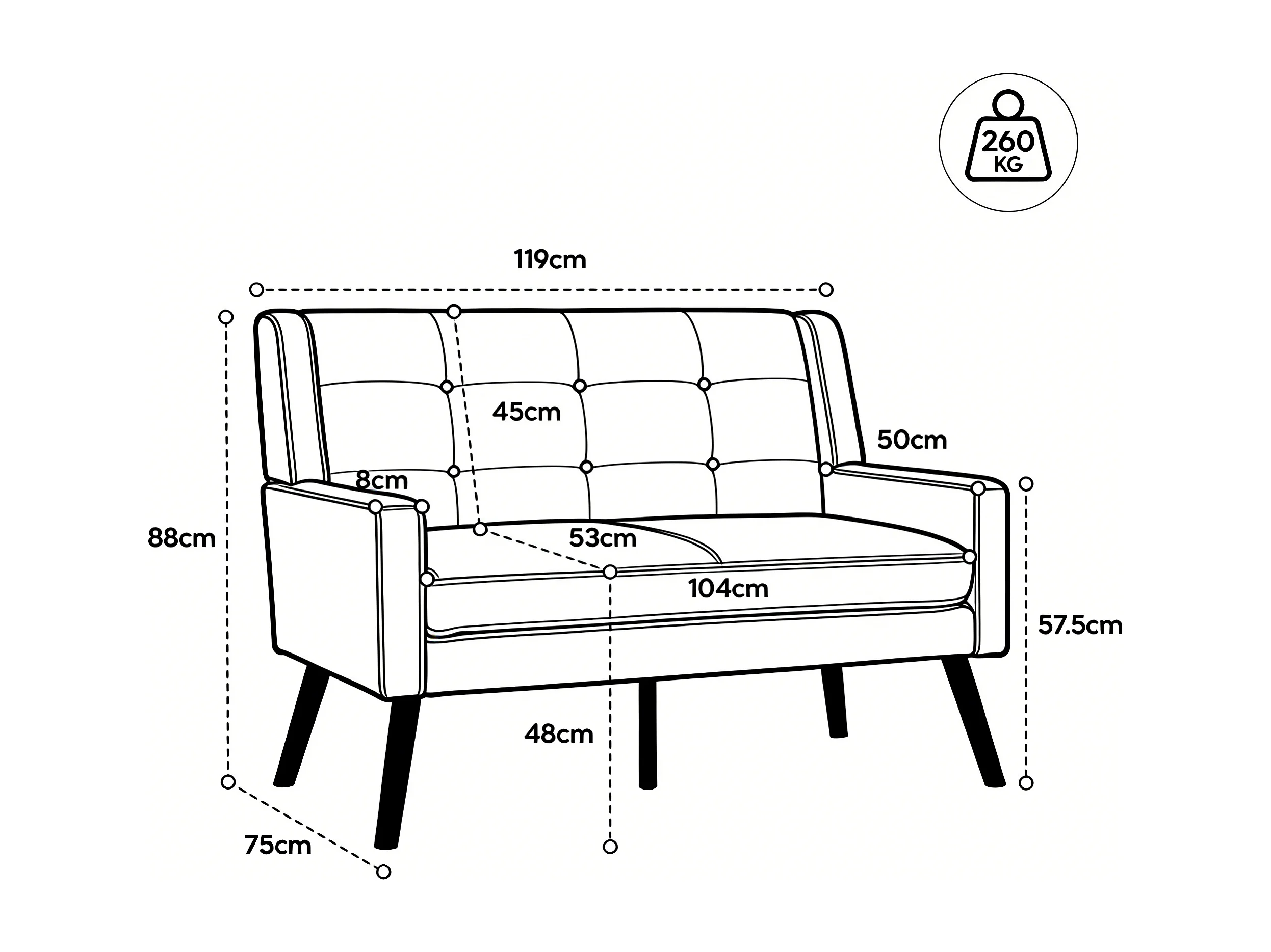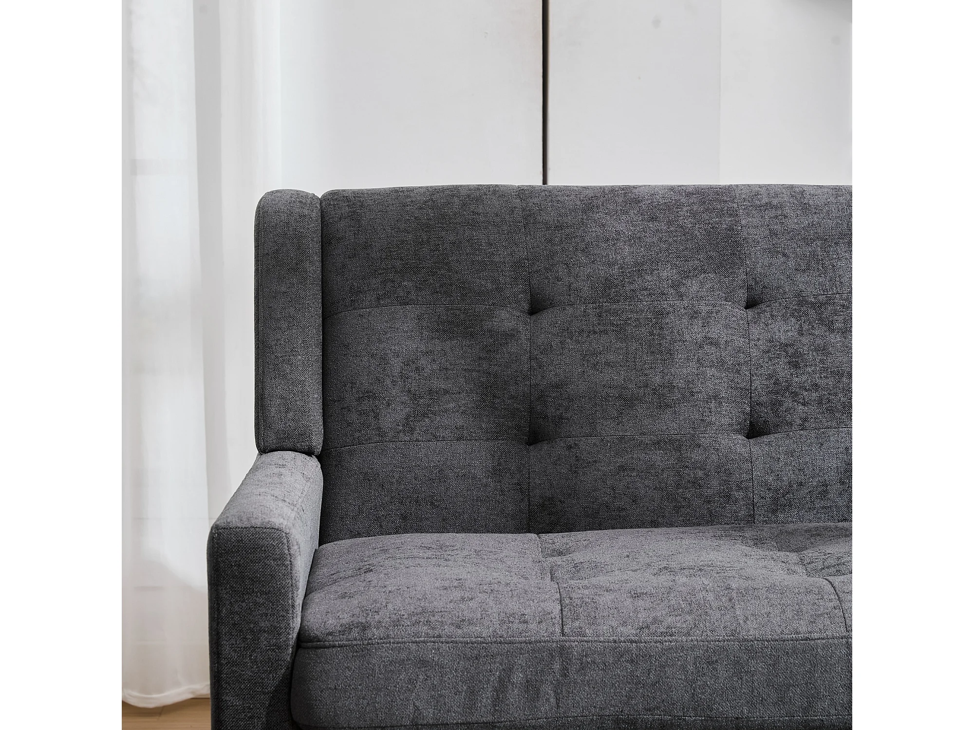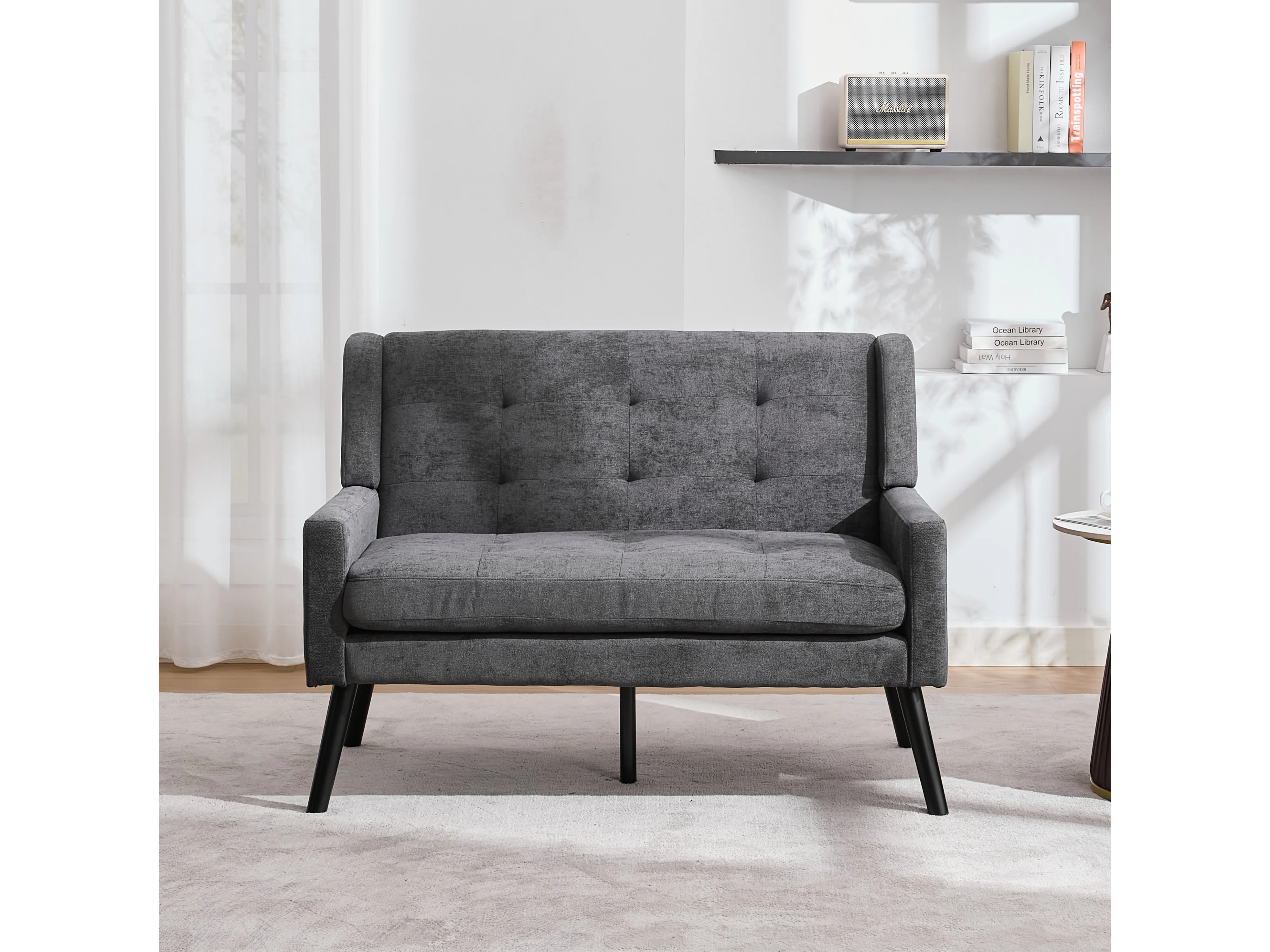 Canapé 2 places et fauteuils en tissu lin gris foncé - Ensemble de 2 avec pieds en bois