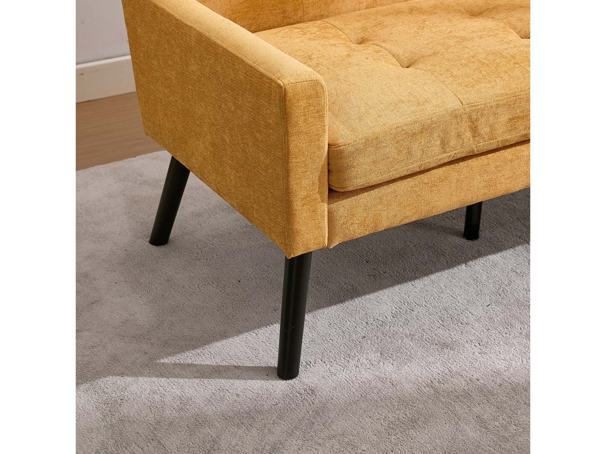 Canapé 2 places et fauteuils en tissu lin jaune - Ensemble de 2 avec pieds en bois