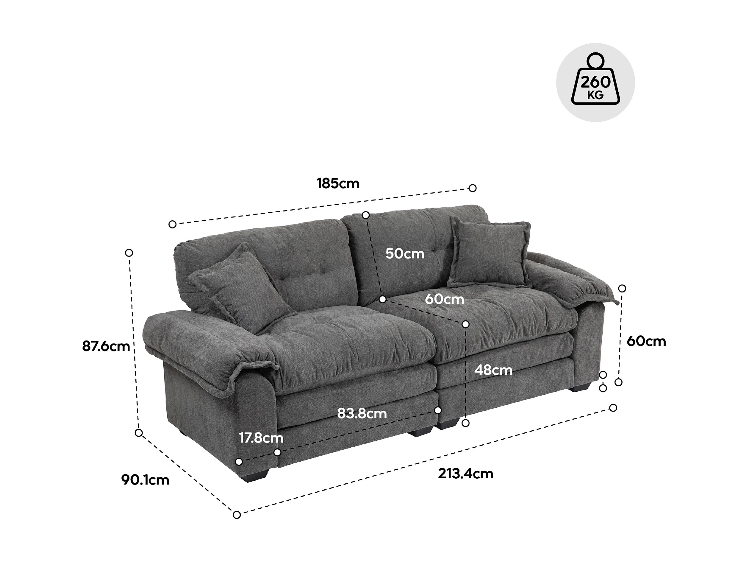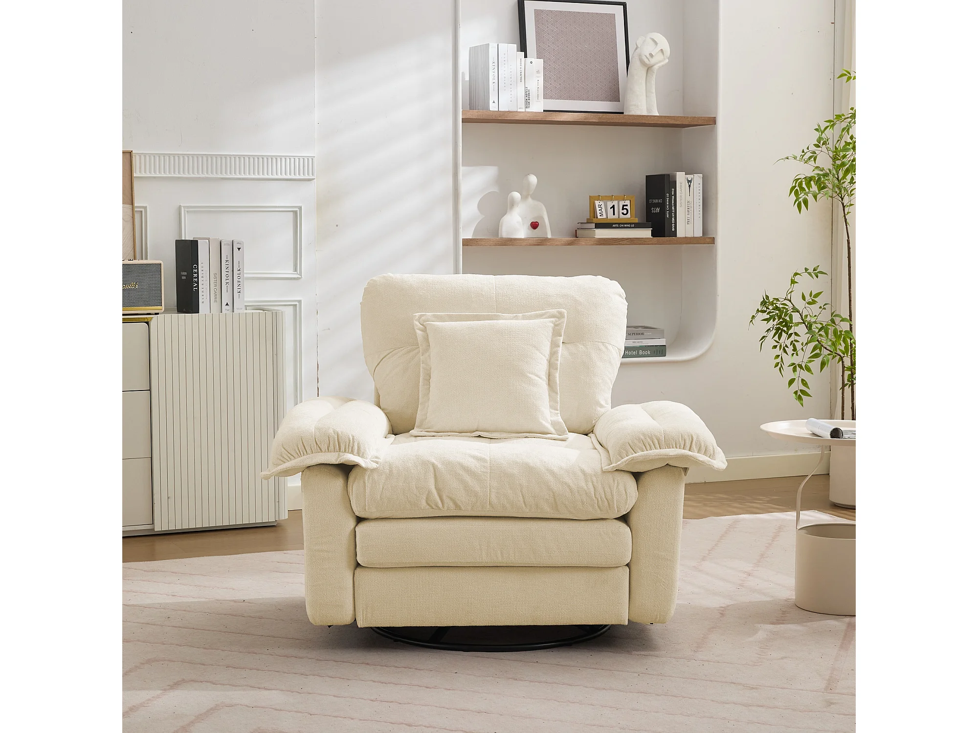 Canapé 2 places et fauteuils pivotant en tissu chenille beige - Avec coussins