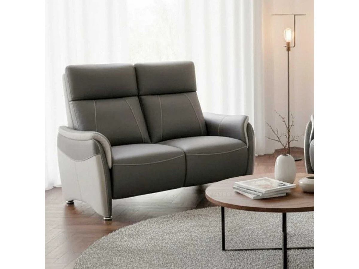 Canapé 2 places fixe tissu micro grain gris plomb et gris perle - SANGY