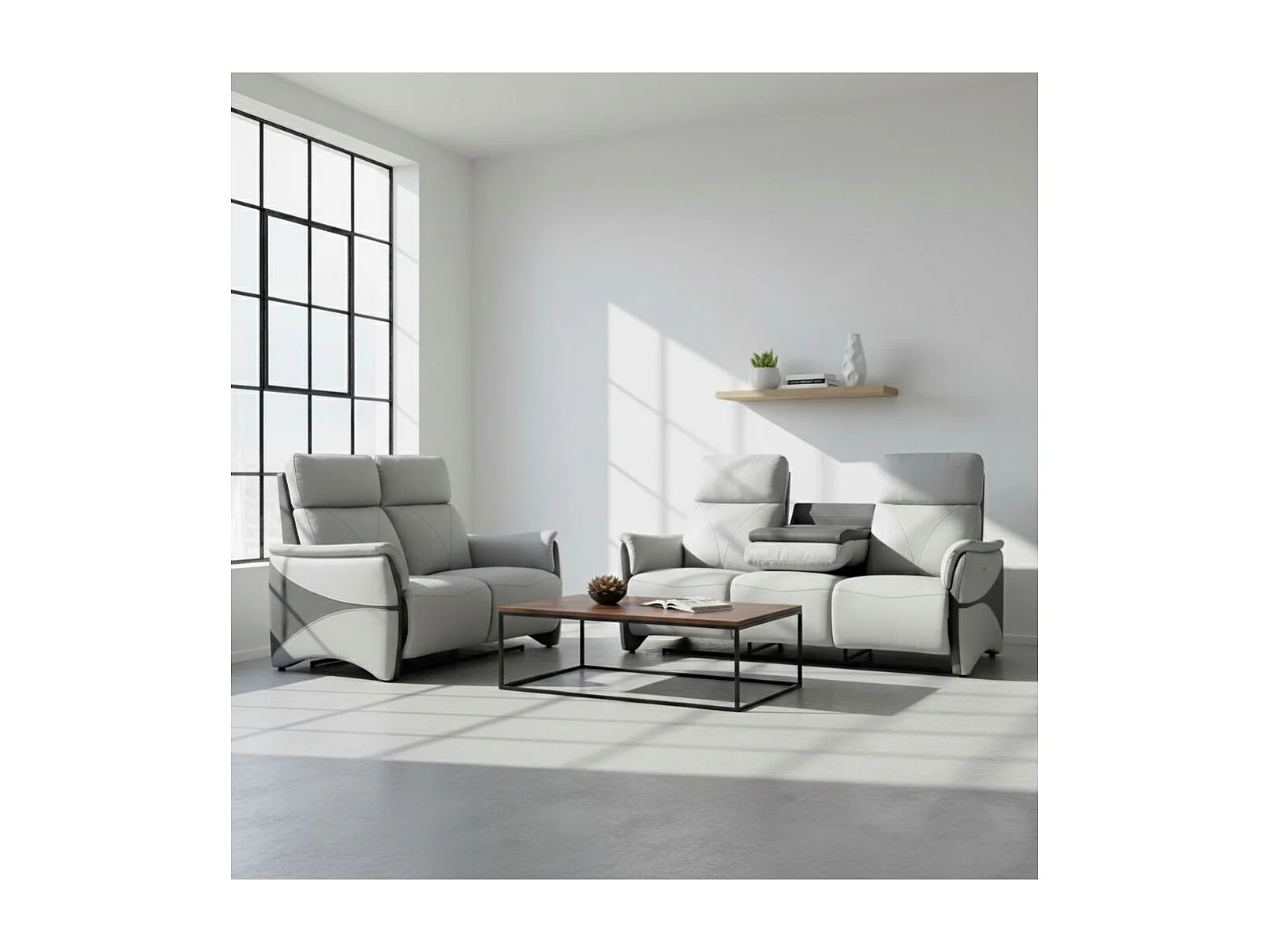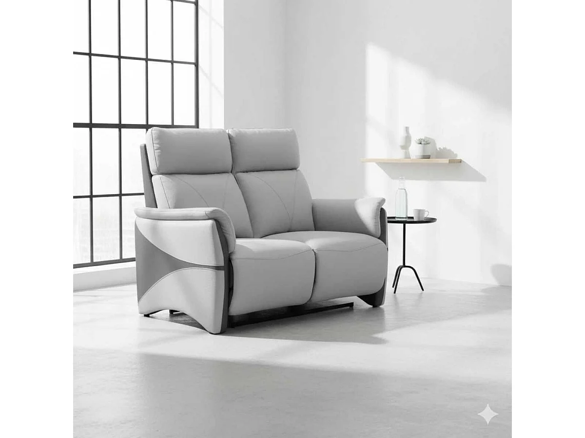 Canapé 2 places fixe tissu micro peau bicolore gris - SYMPHONY