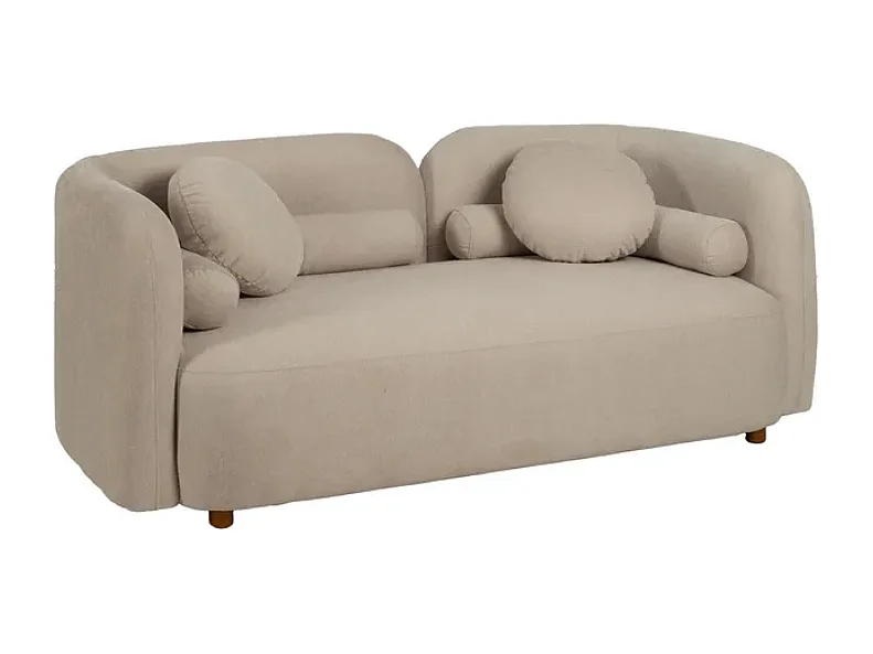 Canapé 2 places galbé en tissu beige avec coussins PERIALIS