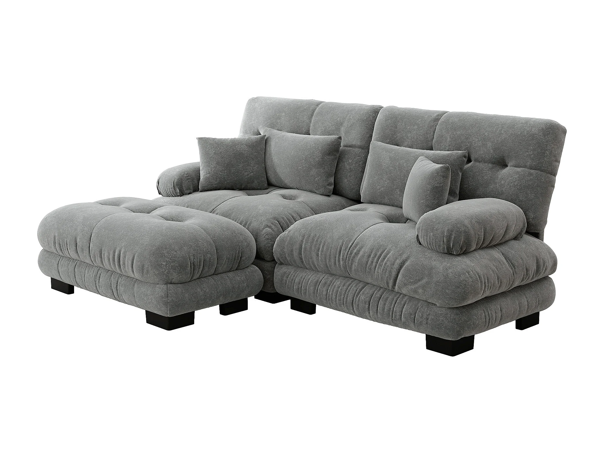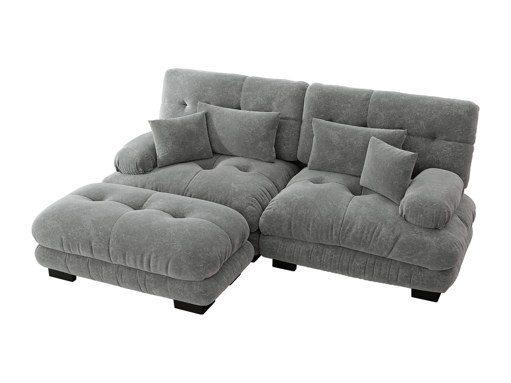 Canapé 2 places gris - Canapé d'angle avec 2 coussins cale-reins et 2 coussins décoratifs - accoudoirs et repose-pieds - chenille