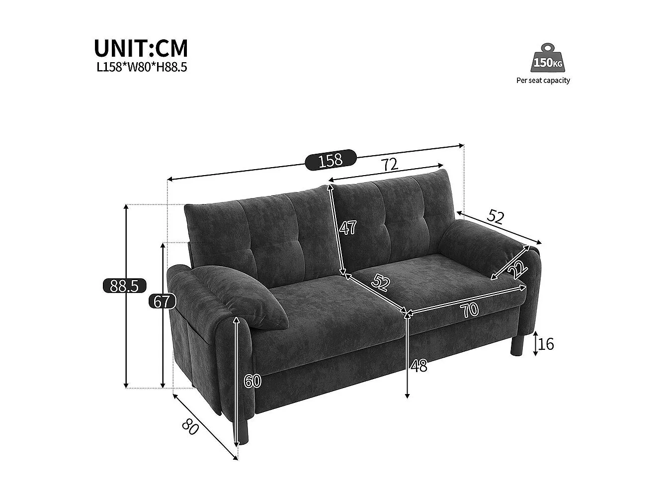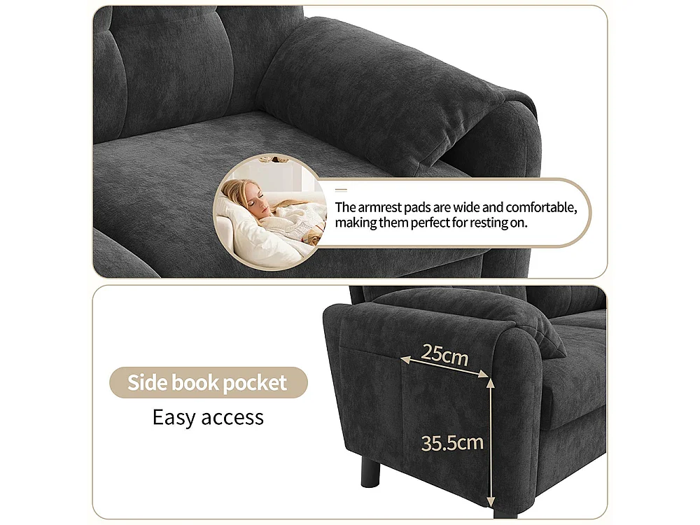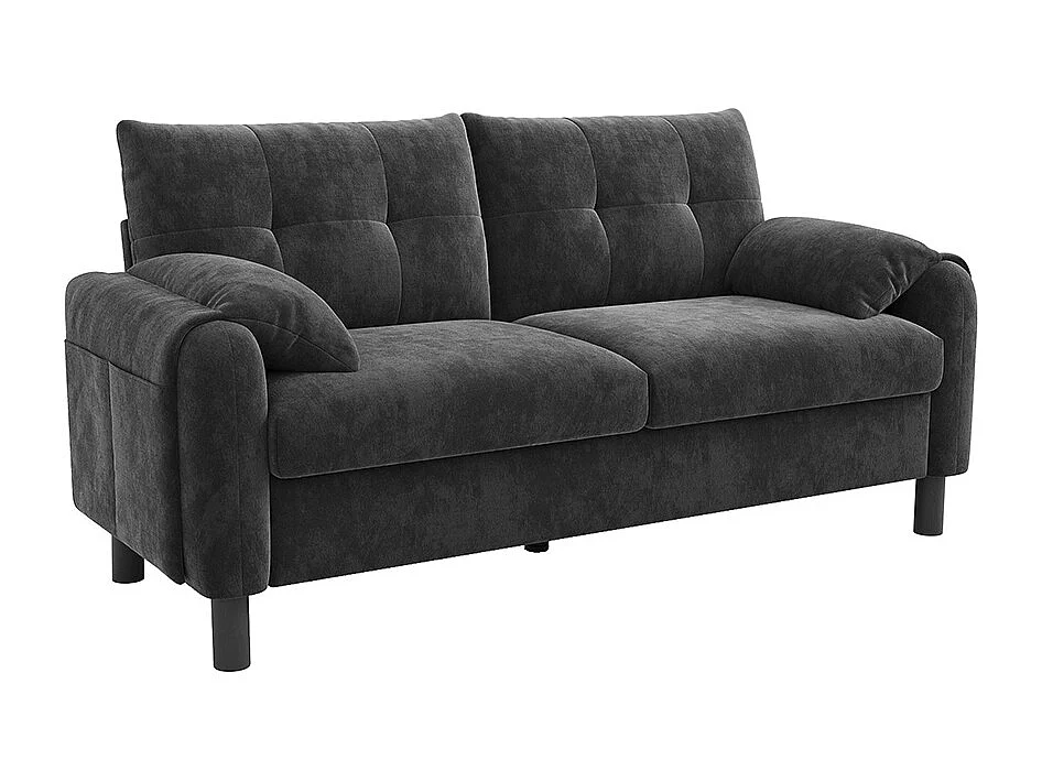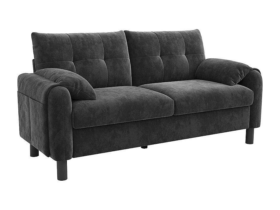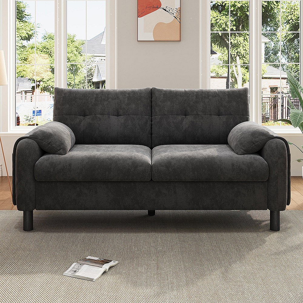 Canapé 2 places gris tissu chenille coussins épais rembourré confortable salon chambre appartement scandinave