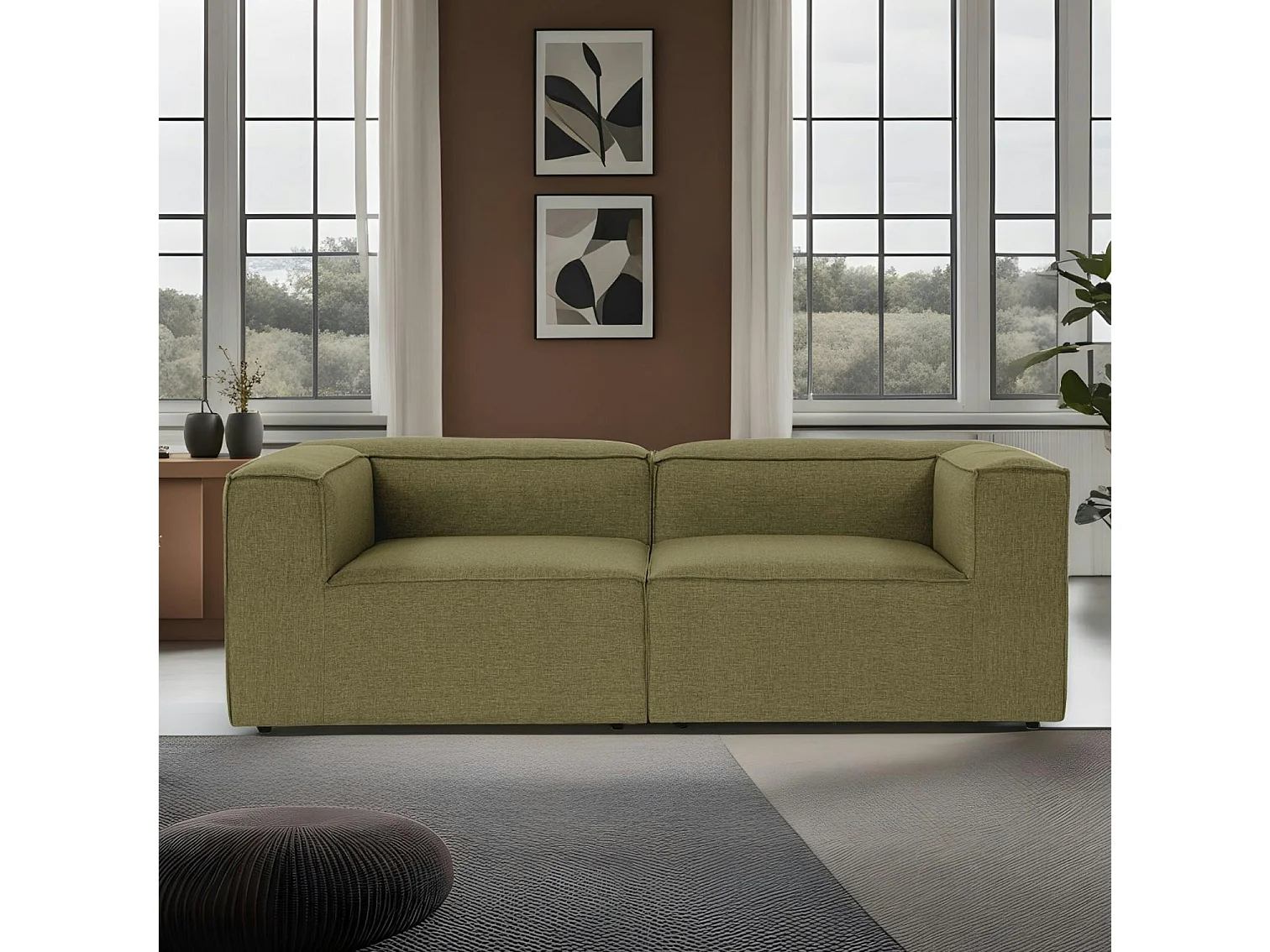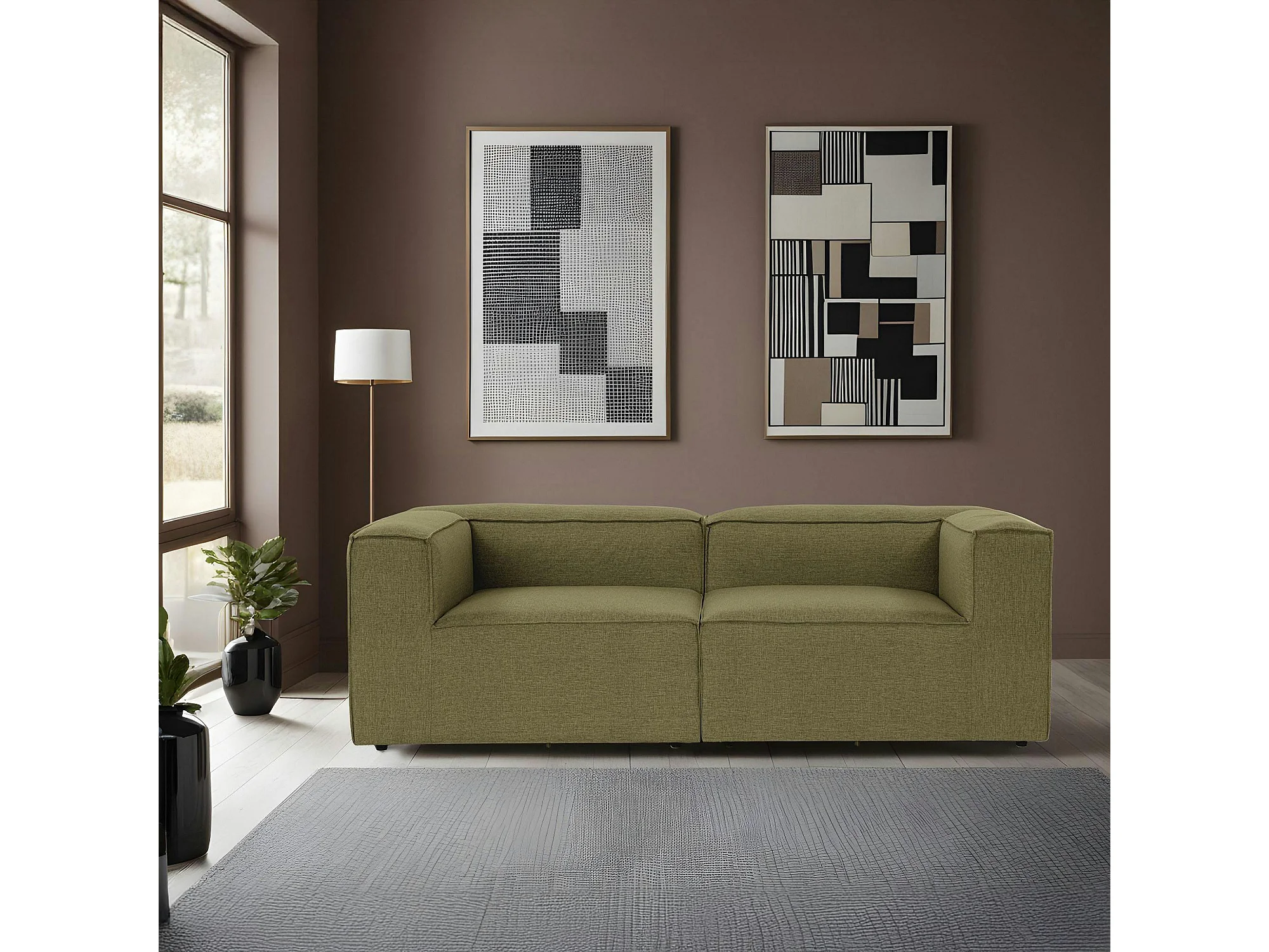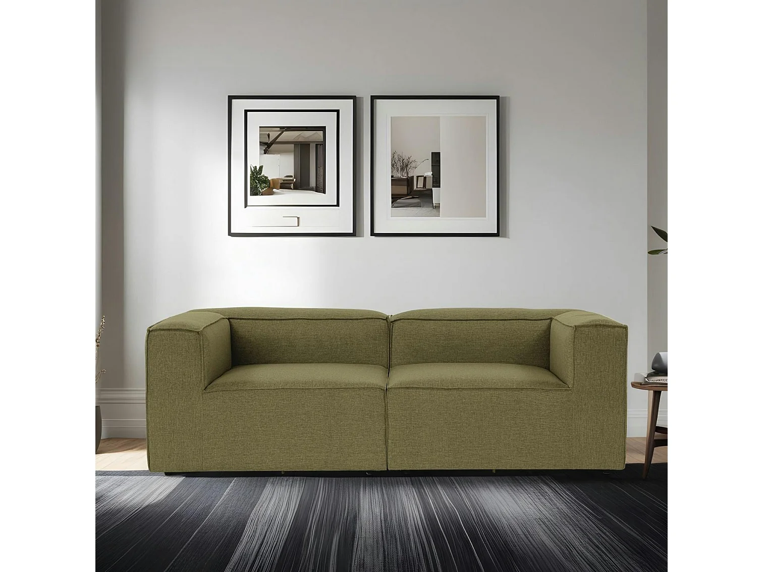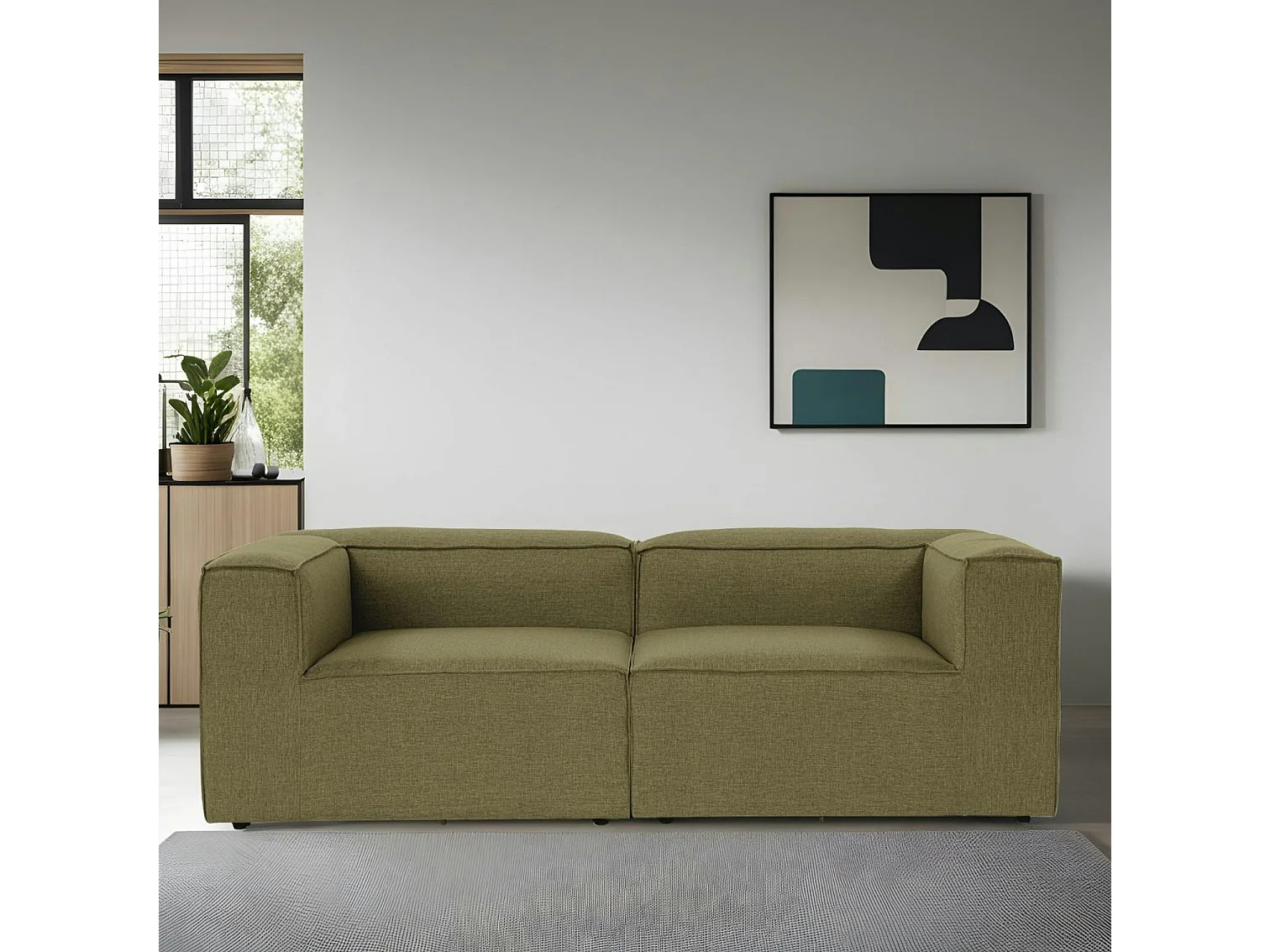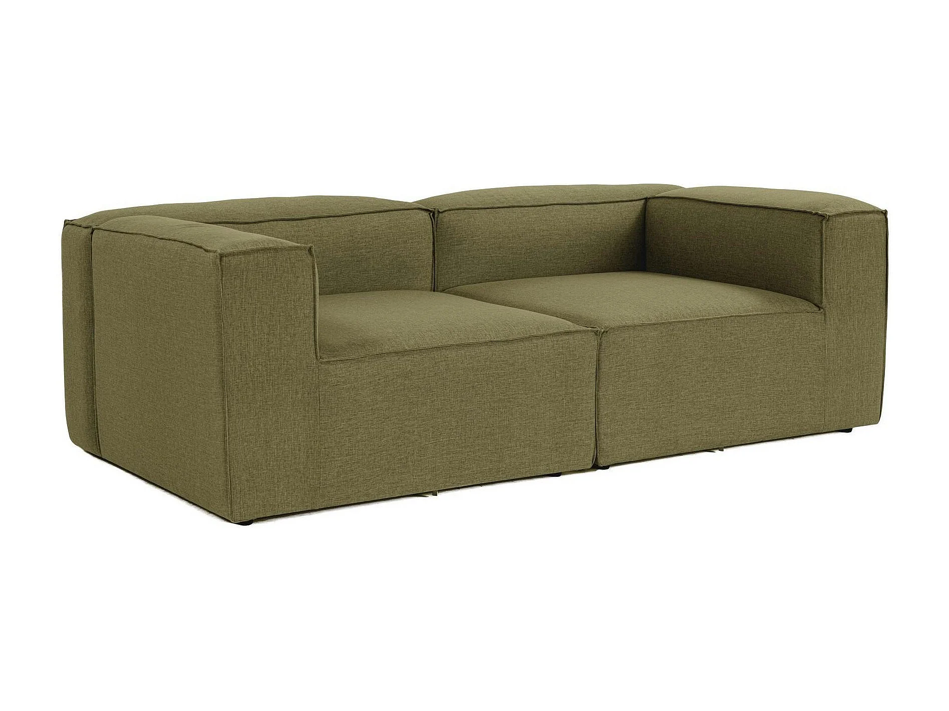 Canapé 2 places lin vert, accoudoirs carrés SPELLO