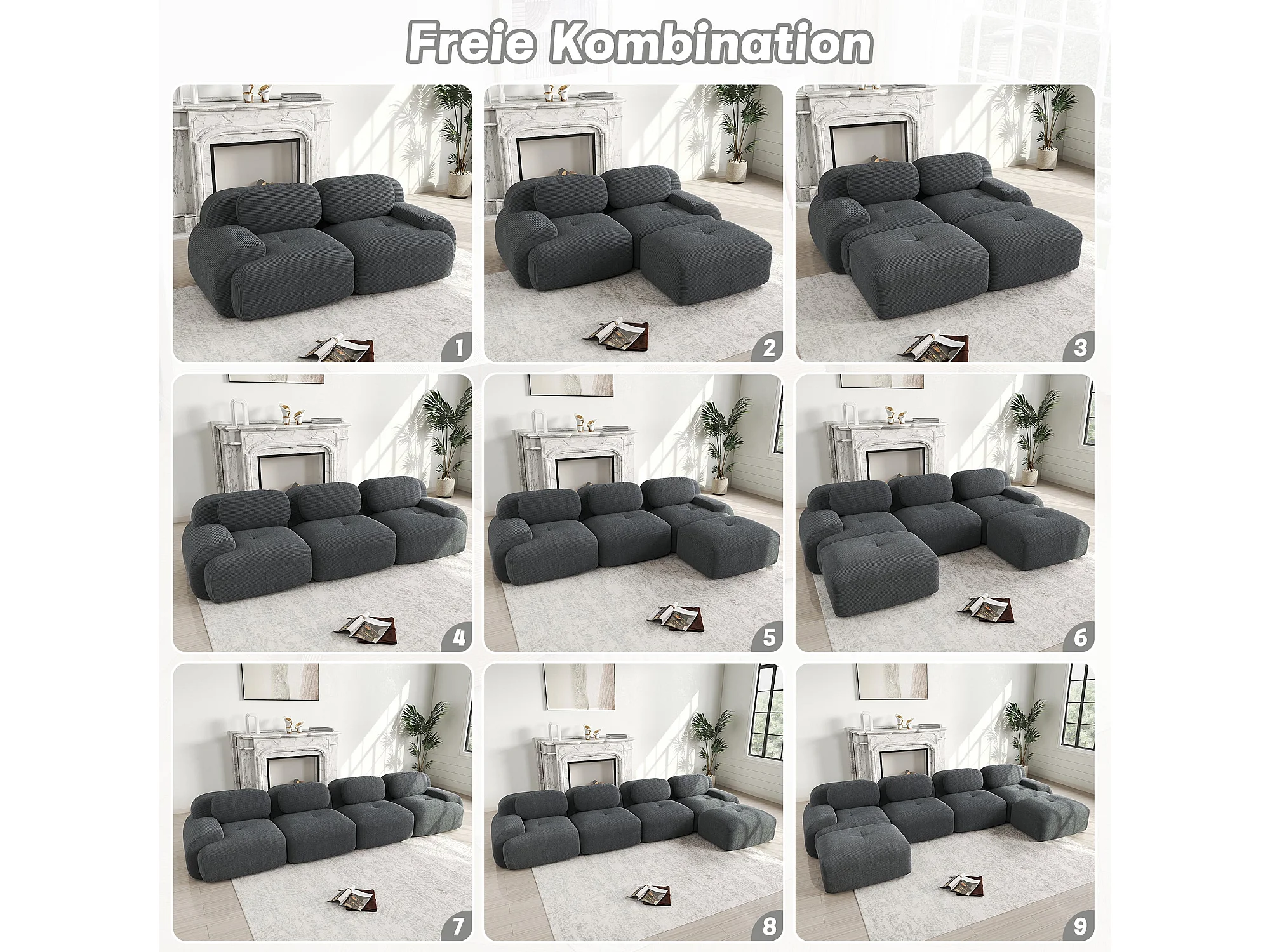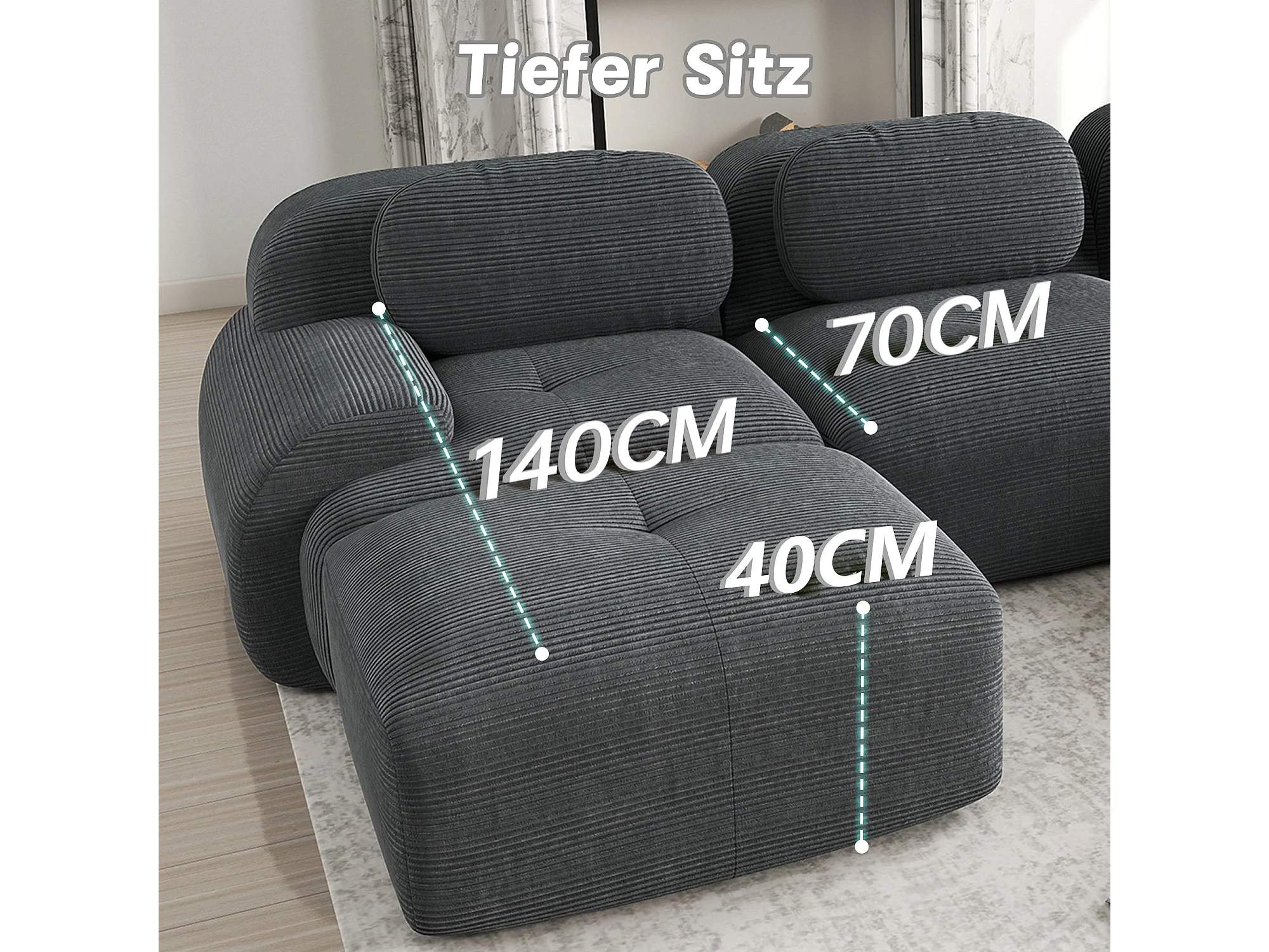 Canapé 2 places loveseat modulable en velours côtelé gris avec accoudoirs courbés, confort premium, sans montage