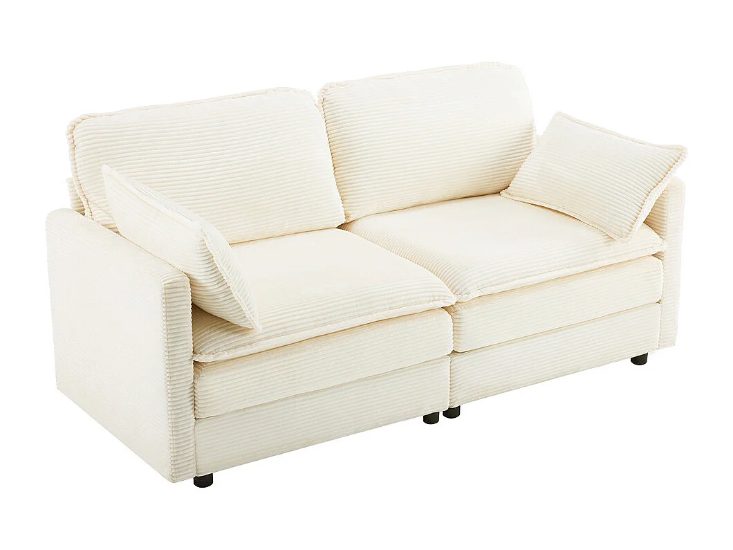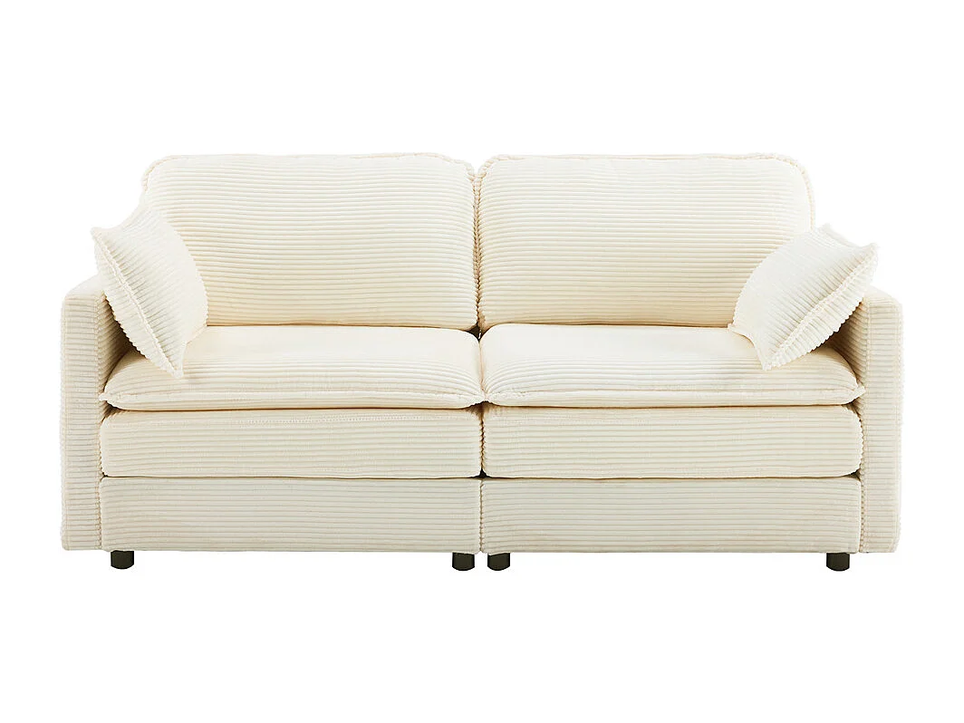 Canapé 2 places minimaliste et moderne, confortable et spacieux, idéal pour le salon ou la chambre, en bois et tissu, blanc