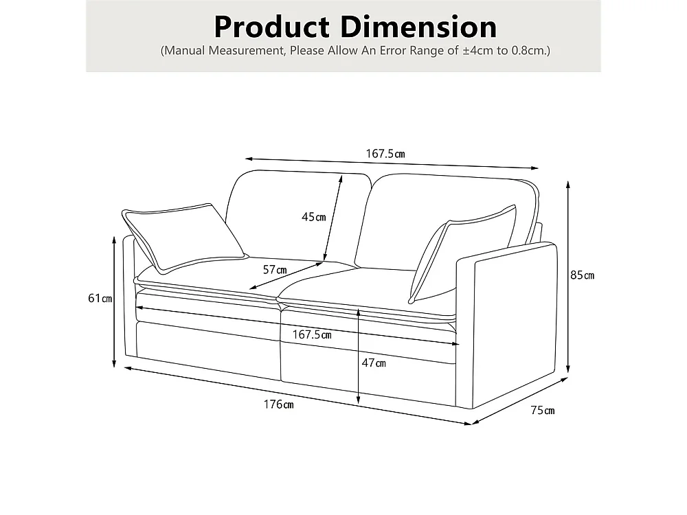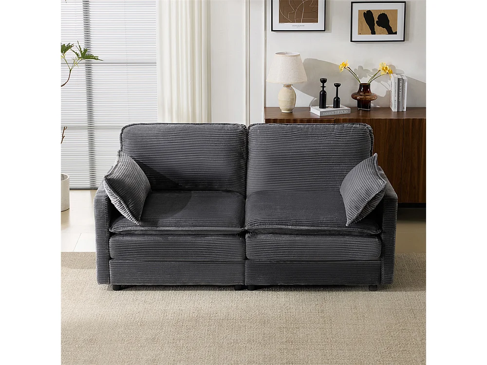 Canapé 2 places minimaliste et moderne, confortable et spacieux, idéal pour le salon ou la chambre, en bois et tissu, gris