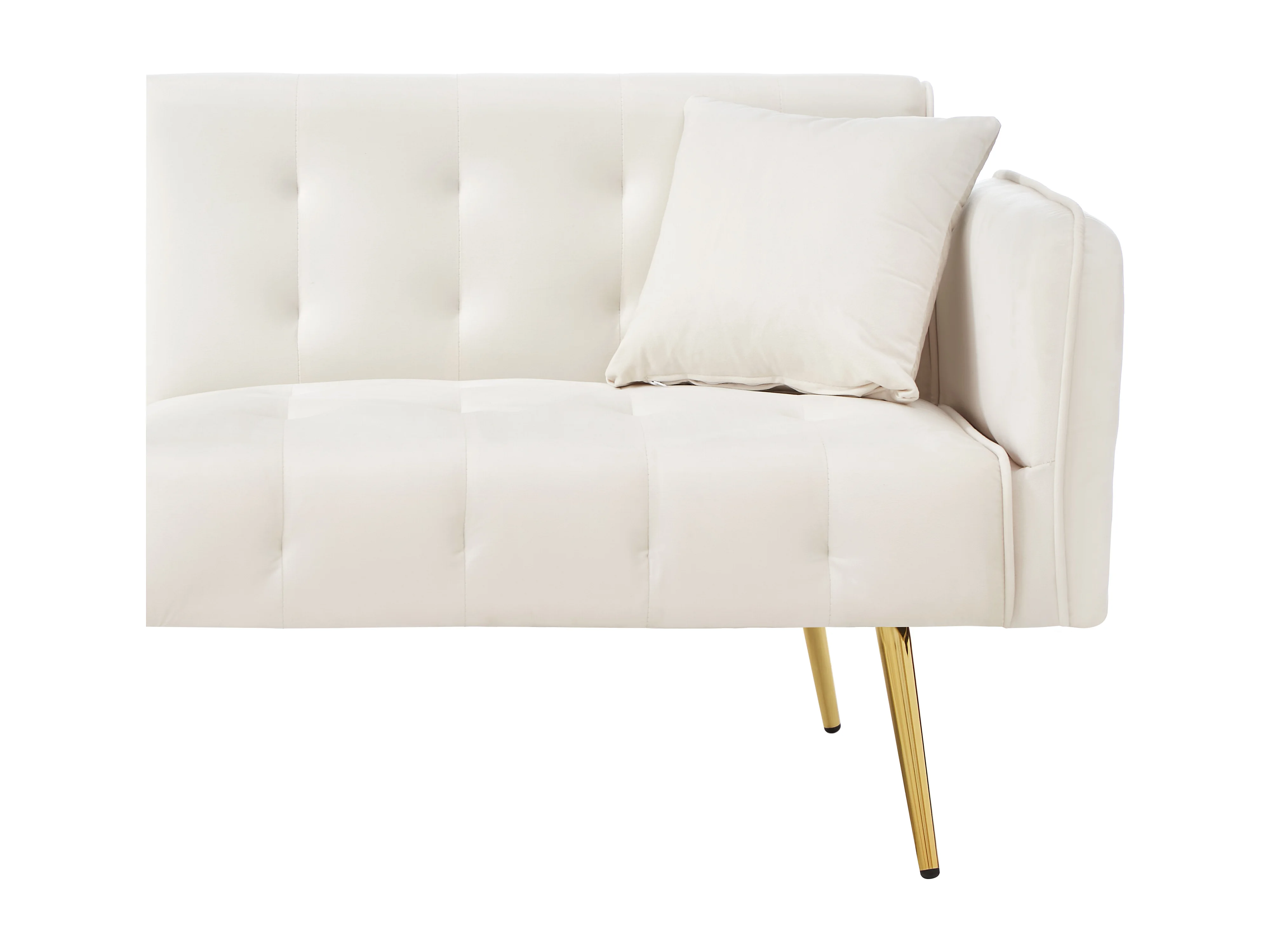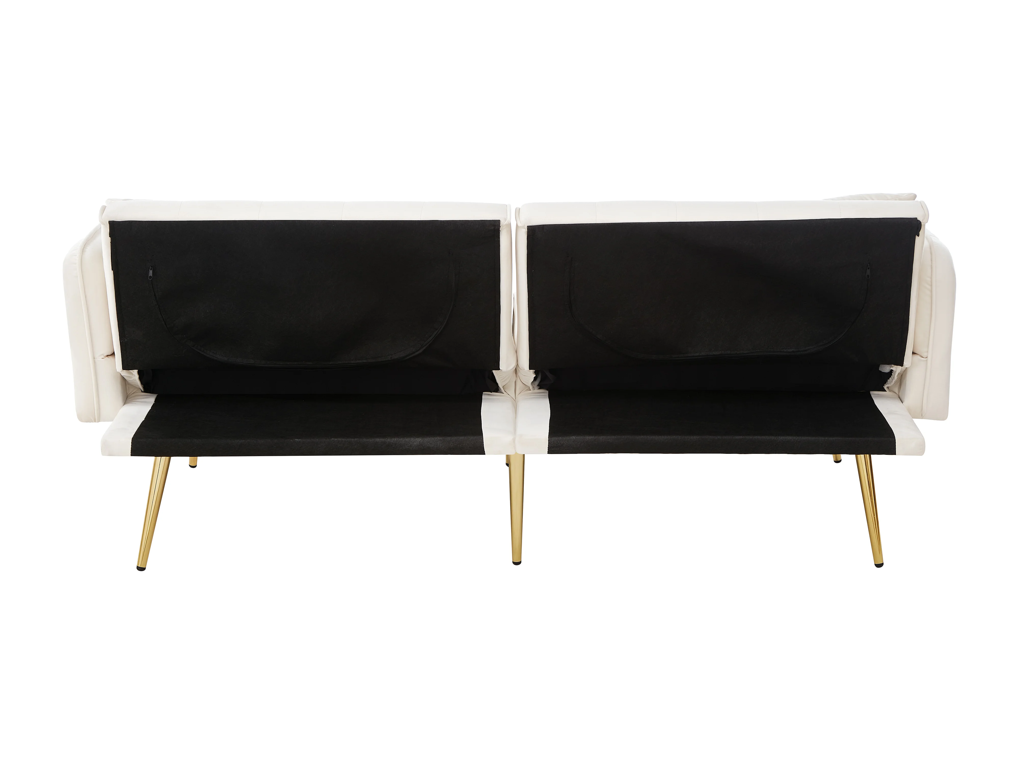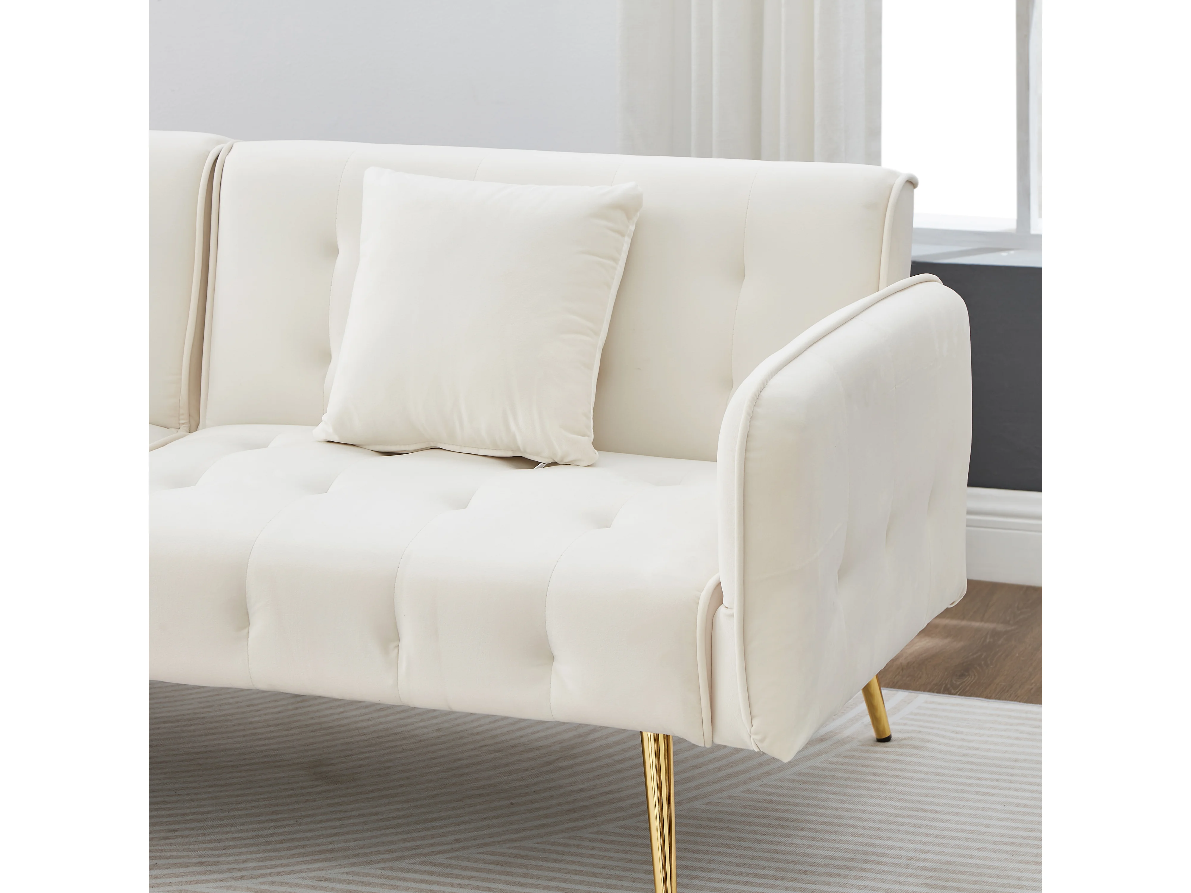 Canapé 2 places moderne, 178x82x70, clic clac, dossier et accoudoirs réglable, Velours Blanc ancien